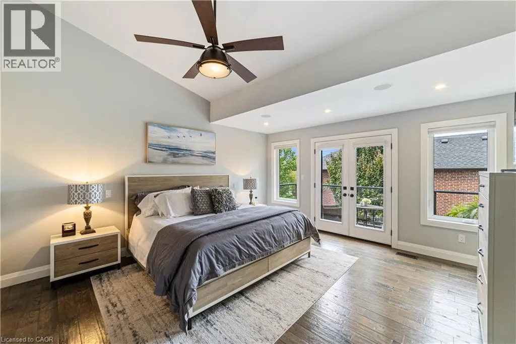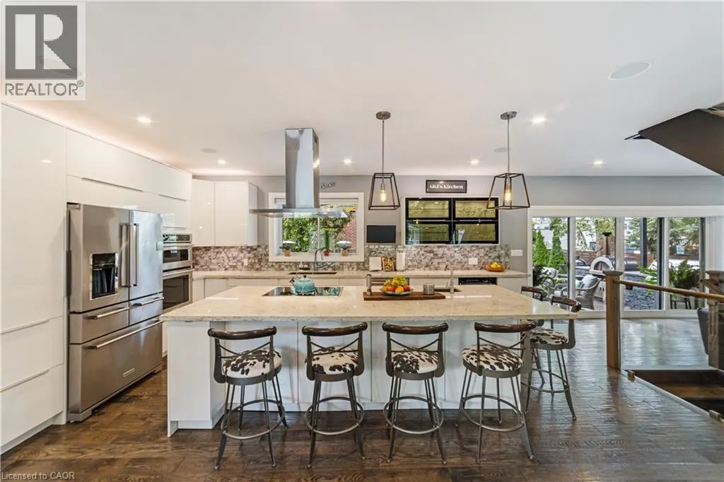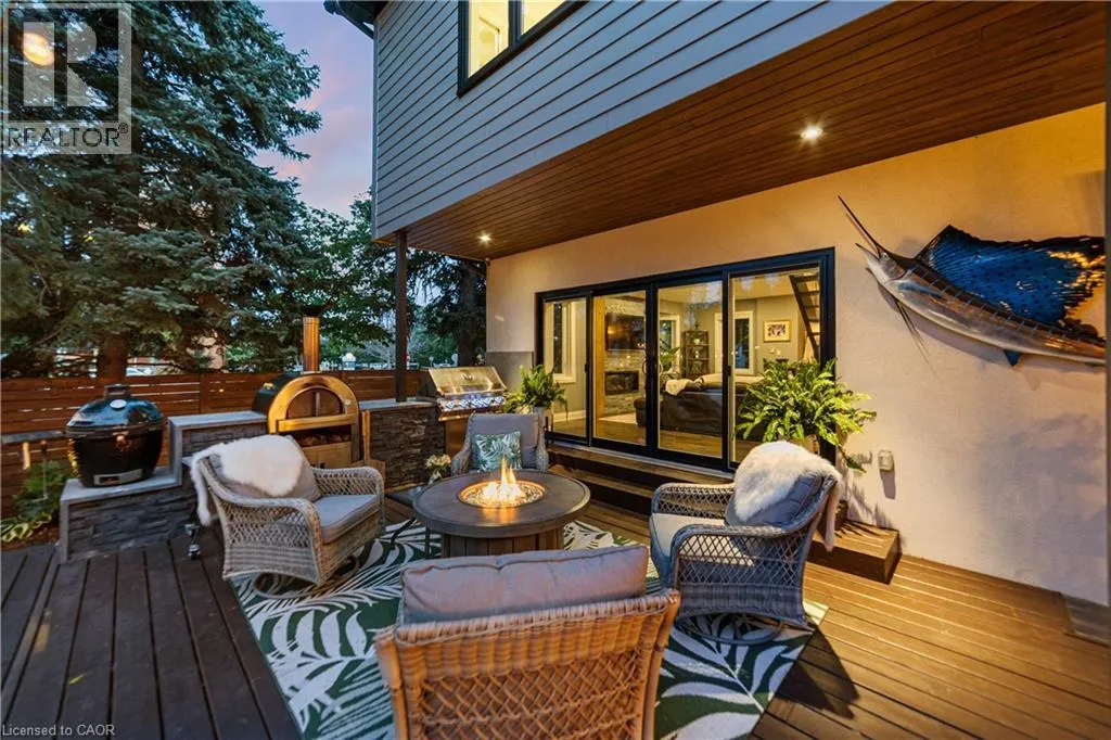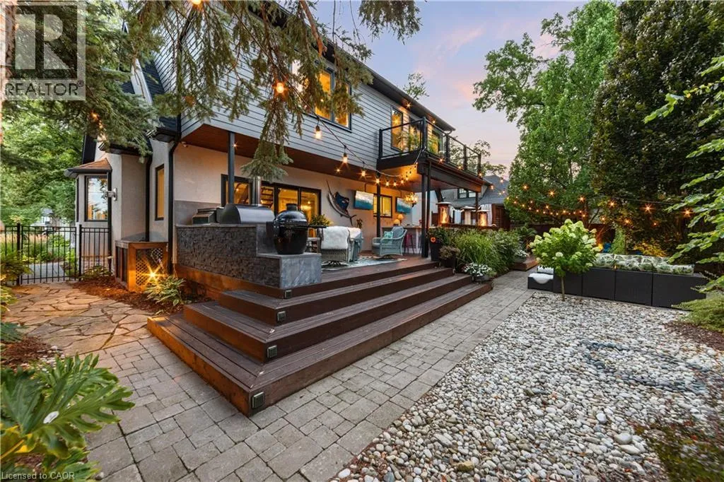 LAKESHORE TO LOCUST, 3 BLOCKS NORTH ON LOCUST Downtown is calling with this one of a kind opportunity in the Downtown Core. This home was redesigned/rebuilt in 2016 utilizing original foundation/footprint, expanding the foundation adding sq ft, ceiling height, and new garage w/ loft (potential future development) The stunning open concept main floor plan showcases a 4â wide open tred/glass rail staircase. The Kitchen is a chefâs dream with ++ counter space and drawer/cabinets/pull-outs, a 10.25âx4.25â island that seats 6, Kitchenaid induction cooktop, double wall oven, and fridge, BOSCH DW, and built-in 2 zone wine cooler and bar sink. There is hardwood floor throughout the home, new motorized blinds on main level, mud room has ++storage space, garage entry, heated floor, towel warming rack, with exit to backyard hot tub. Large primary suite with his and her walk in closet, ensuite with heated floor has water closet, double vanity, and large glass shower with double rainshower with bench. French doors (with Phantom screens) lead to a balcony that overlooks the backyard. 2nd bedroom has its own private ensuite. The Backyard oasis is a peaceful retreat with resort vibes & several separate entertaining spaces.The large outdoor bar has a bar fridge & Stainless storage cabinets. The master griller will be delighted with the custom grilling kitchen (2021) equipped with counter/storage space, Napoleon gas bbq, Kamado Joe, and a wood-fired pizza oven that will truly entertain your guests. The finished basement has a large rec room highlighted by large wine display nook and wet bar. Bar area has dual purpose - Office by day and Bar by night. The design has custom drawers and pullouts to slide computer and desk items out of sight. Live the âdowntown lifeâ being steps to restaurants, gyms, groceries, the lake, Spencer Smith Park, the Performing Arts Centre, parks and schools. Close by are GO transit, HWY access, Joe Brant Hospital, and Mapleview Shopping Mall. Get ready to entertain with this downtown gem (id:27476)
