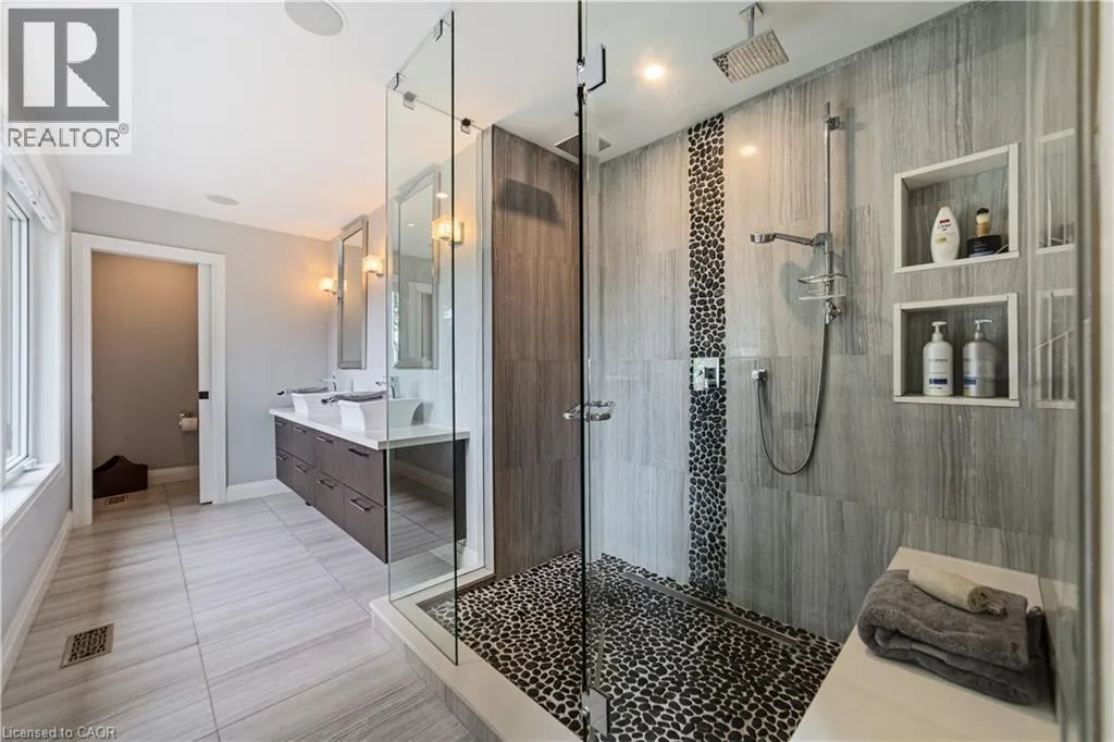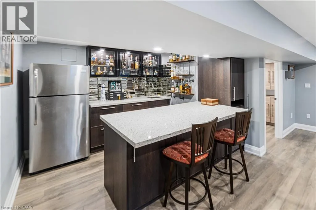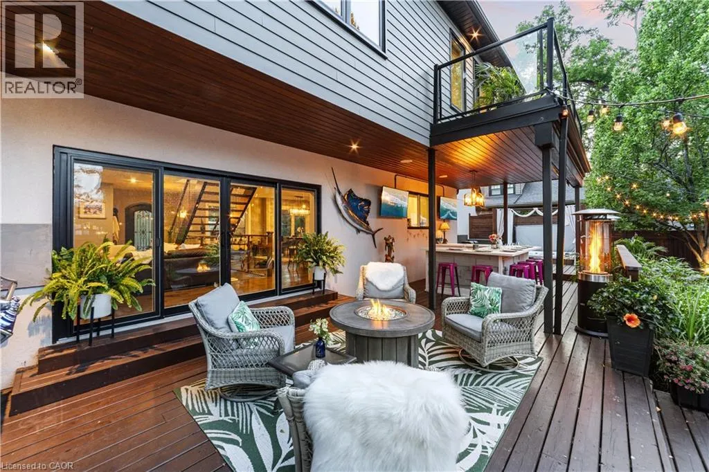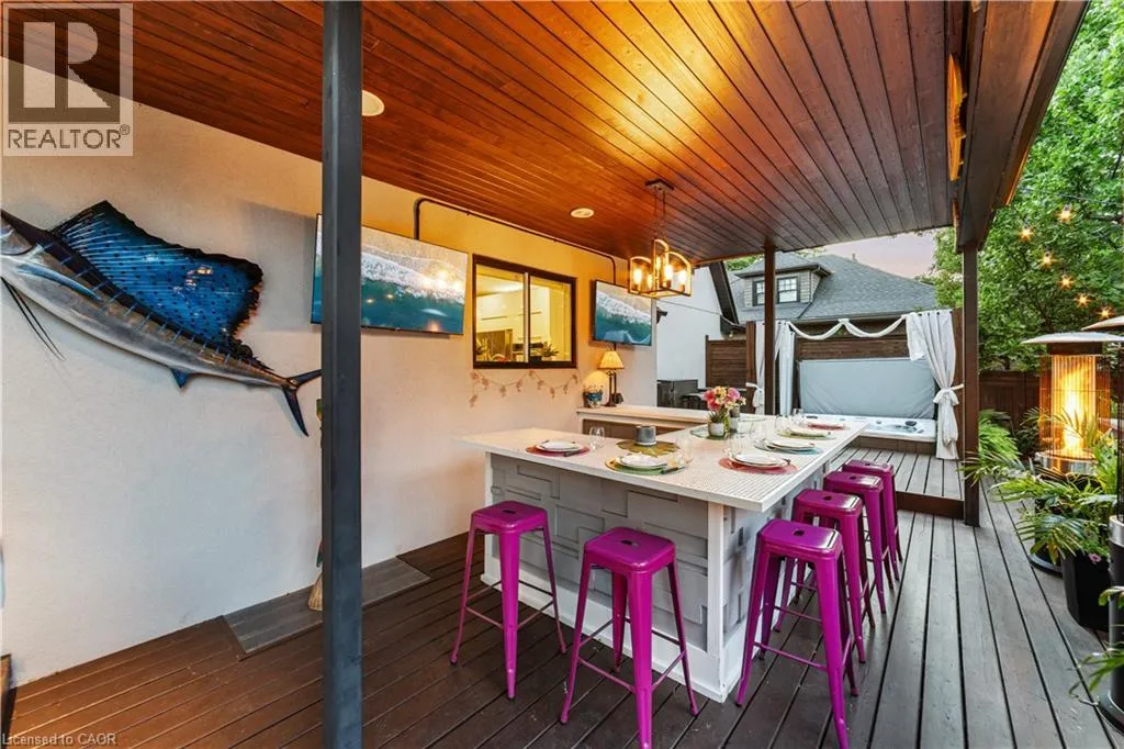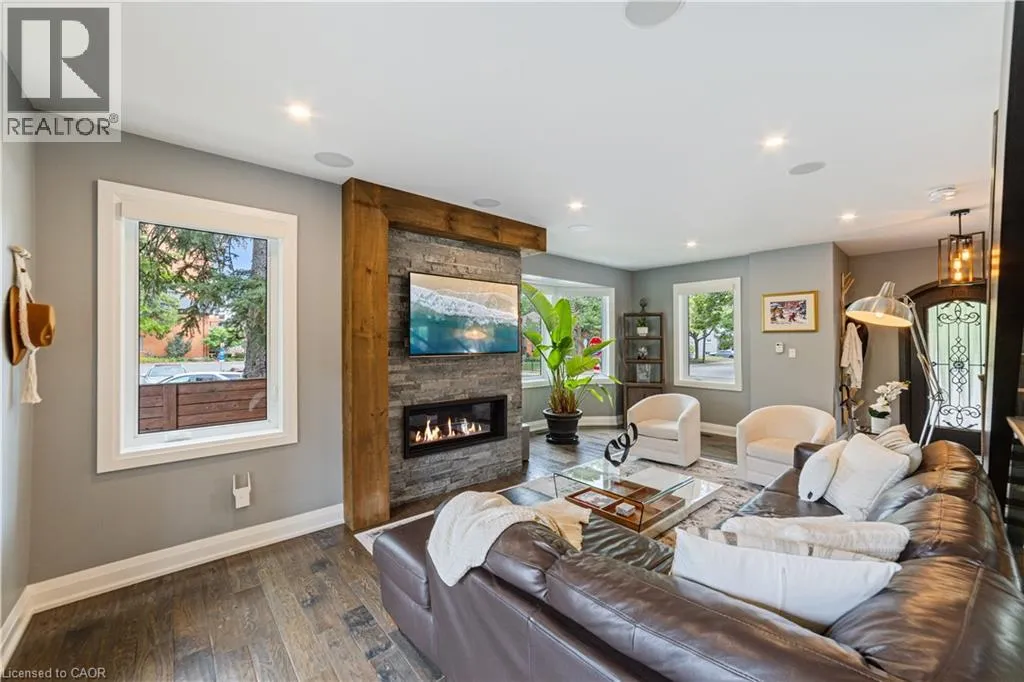 LAKESHORE TO LOCUST, 3 BLOCKS NORTH ON LOCUST Downtown is calling with this one of a kind opportunity in the Downtown Core. This home was redesigned/rebuilt in 2016 utilizing original foundation/footprint, expanding the foundation adding sq ft, ceiling height, and new garage w/ loft (potential future development) The stunning open concept main floor plan showcases a 4â wide open tred/glass rail staircase. The Kitchen is a chefâs dream with ++ counter space and drawer/cabinets/pull-outs, a 10.25âx4.25â island that seats 6, Kitchenaid induction cooktop, double wall oven, and fridge, BOSCH DW, and built-in 2 zone wine cooler and bar sink. There is hardwood floor throughout the home, new motorized blinds on main level, mud room has ++storage space, garage entry, heated floor, towel warming rack, with exit to backyard hot tub. Large primary suite with his and her walk in closet, ensuite with heated floor has water closet, double vanity, and large glass shower with double rainshower with bench. French doors (with Phantom screens) lead to a balcony that overlooks the backyard. 2nd bedroom has its own private ensuite. The Backyard oasis is a peaceful retreat with resort vibes & several separate entertaining spaces.The large outdoor bar has a bar fridge & Stainless storage cabinets. The master griller will be delighted with the custom grilling kitchen (2021) equipped with counter/storage space, Napoleon gas bbq, Kamado Joe, and a wood-fired pizza oven that will truly entertain your guests. The finished basement has a large rec room highlighted by large wine display nook and wet bar. Bar area has dual purpose - Office by day and Bar by night. The design has custom drawers and pullouts to slide computer and desk items out of sight. Live the âdowntown lifeâ being steps to restaurants, gyms, groceries, the lake, Spencer Smith Park, the Performing Arts Centre, parks and schools. Close by are GO transit, HWY access, Joe Brant Hospital, and Mapleview Shopping Mall. Get ready to entertain with this downtown gem (id:27476)
