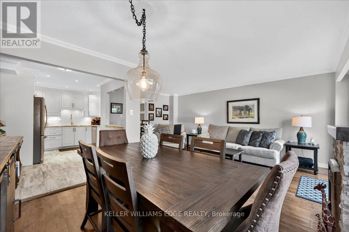 Cross Streets: New St & Longmoor. ** Directions: New St to Longmoor. Beautifully Updated Townhome in South Burlington's Longmoor area! Welcome to this meticulous 3+1 bedroom, 2.5 bath home offering a tone of natural light throughout, featuring an updated kitchen with granite countertops, crisp white shaker style cabinetry, and stainless steel appliances. Nicely decorated throughout with well thought out textures and styles. The main level living and dining rooms showcase hardwood flooring, nice accents, crown molding finishes, breakfast bar island off the kitchen and gas fireplace. This floor plan has a great flow that seamlessly transitions to a private outdoor sitting area, complete with mature trees and a spacious common area extension off the back yard. All bathrooms have been tastefully updated! Take a walk to the upper level and be greeted by a huge primary bedroom large enough for a king size bed, a rarity for these style of townhomes! The lower level offers a generous sized recreation room, an additional bedroom or home office space, and a 3-piece bath - the perfect lower level set up for guests, or growing families. Ideally located steps from Iroquois Park just across the street! Close to Nelson High School, shops, restaurants, the Centennial bike path, and Appleby GO station making this the ideal location for commuters! You won't be disappointed, this one truly shows at it's best! (id:27476)