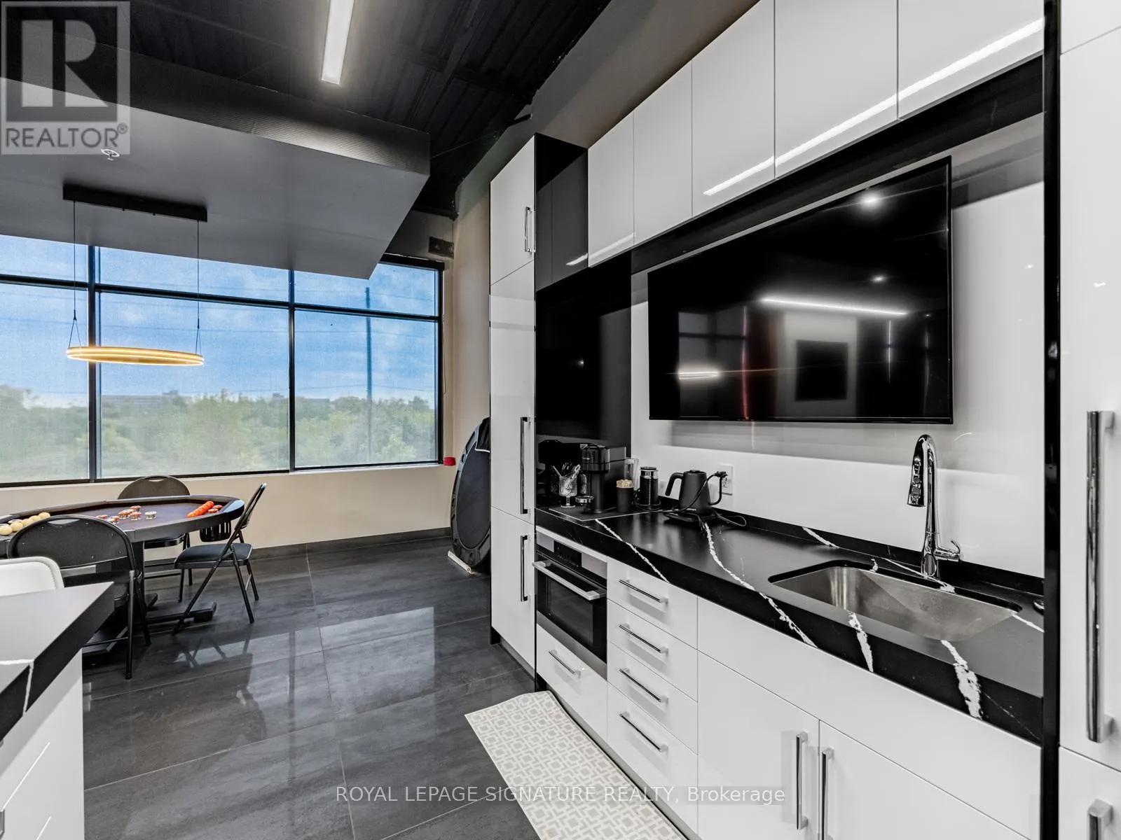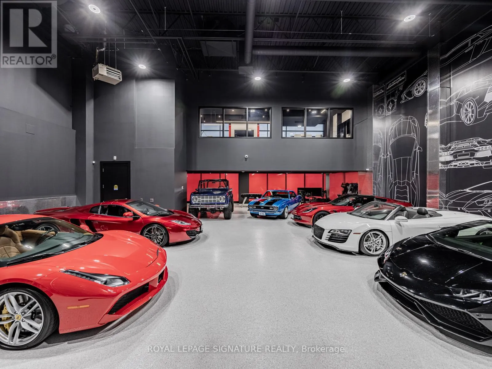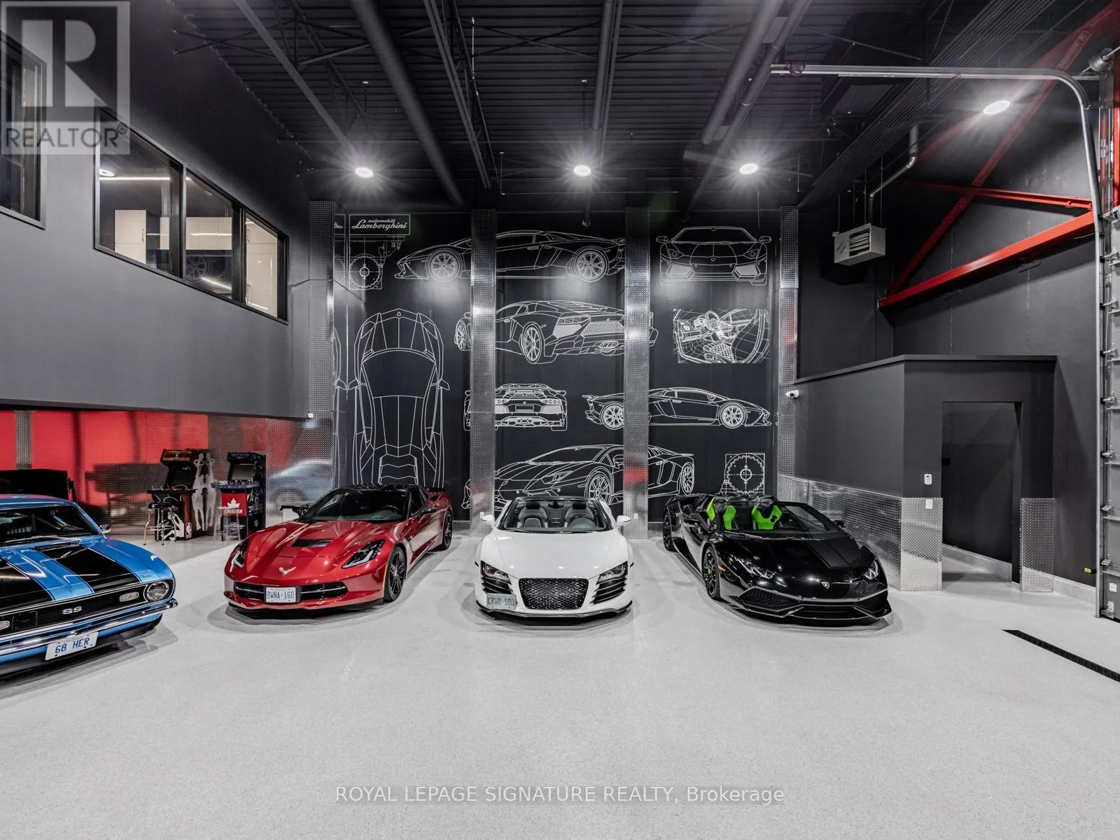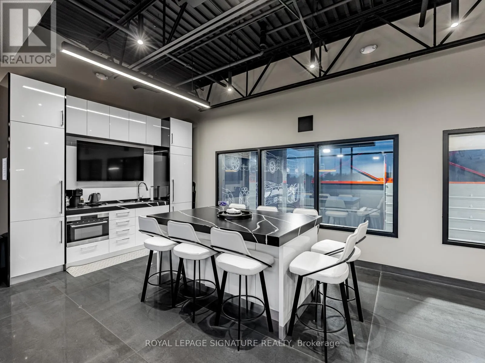 Guelph Line and Harvester Rd The Ultimate Man Cave: Designer 2-Storey Industrial Loft Space A Rare & Luxurious Industrial Condo Like No Other A Must-See! This two-storey, custom-renovated industrial loft is the ultimate lifestyle space perfect for car enthusiasts, entrepreneurs, creatives, or anyone seeking an elevated blend of design and function. Two units have been seamlessly combined into one expansive, open-concept environment with no structural columns,offering exceptional flexibility and flow.Boasting a total of 3,530 square feet 2,599 SF on the main floor and 931 SF on the second level this fully climate-controlled unit is professionally finished with high-end designer touches, including:Oversized 15 ft x 15 ft drive-in door Diamond-plated metal wall finishes Fully sealed epoxy floors State-of-the-art LED lighting system Handicap-accessible washroom on the main floor Additional 2-piece washroom on the second floor Private elevator access to both floors The chef-inspired kitchen is a showstopper featuring luxury tile finishes, a large centre island, full-size fridge and freezer, and a built-in pizza oven, ideal for entertaining or unwinding in your personal retreat.Security and convenience are top-tier with a 6-camera security system, open sightlines, and direct access to major highways and nearby amenities. All furnishings can remain if desired move in and enjoy the space from day one.This is more than a workspace its a lifestyle statement. (id:27476)