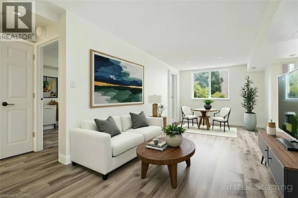 From Walkers Line turn West onto Upper Middle Rd ***NO CONDO FEES FOR SIX MONTHS...Vendor offering maintenance fees paid up front.*** Discover the perfect mix of comfort and convenience in this beautifully maintained 1-bedroom, 1-bath condo in the sought-after Walkerâs Square community. The open layout showcases a bright and spacious living area and a smartly designed eat-in kitchen with abundant white cabinetry and stainless-steel appliances. The generously sized primary bedroom pairs perfectly with the convenience of in-suite laundry and 4-piece bathroom. Step onto your private balcony to unwind amidst mature trees and meticulously landscaped groundsâa tranquil park-like backdrop that offers both privacy and natural beauty. The building is smoke-free and impeccably cared for, providing a peaceful, worry-free lifestyle. Enjoy an exclusive underground parking and the added bonus of a locker space conveniently located on the same level as the suite. Exceptional on-site amenities include a party room, fitness centre, car wash station, and a community patio with BBQ areaâideal for entertaining or relaxing with neighbours. All this just steps from shopping, transit and everyday essentials, with quick access to the 403, QEW and GO Station. Affordable, convenient living in a truly desirable locationâyour new home awaits! Some photos have been virtually staged. (id:27476)