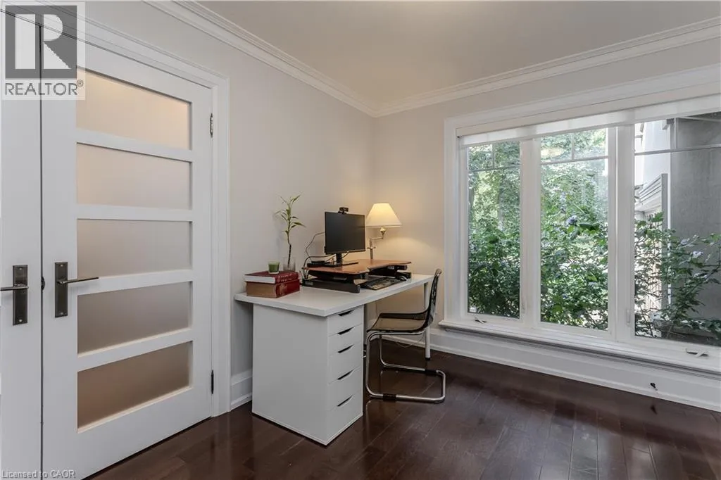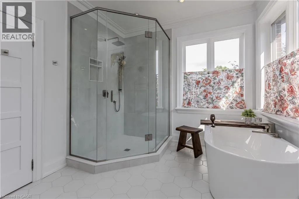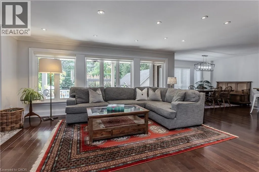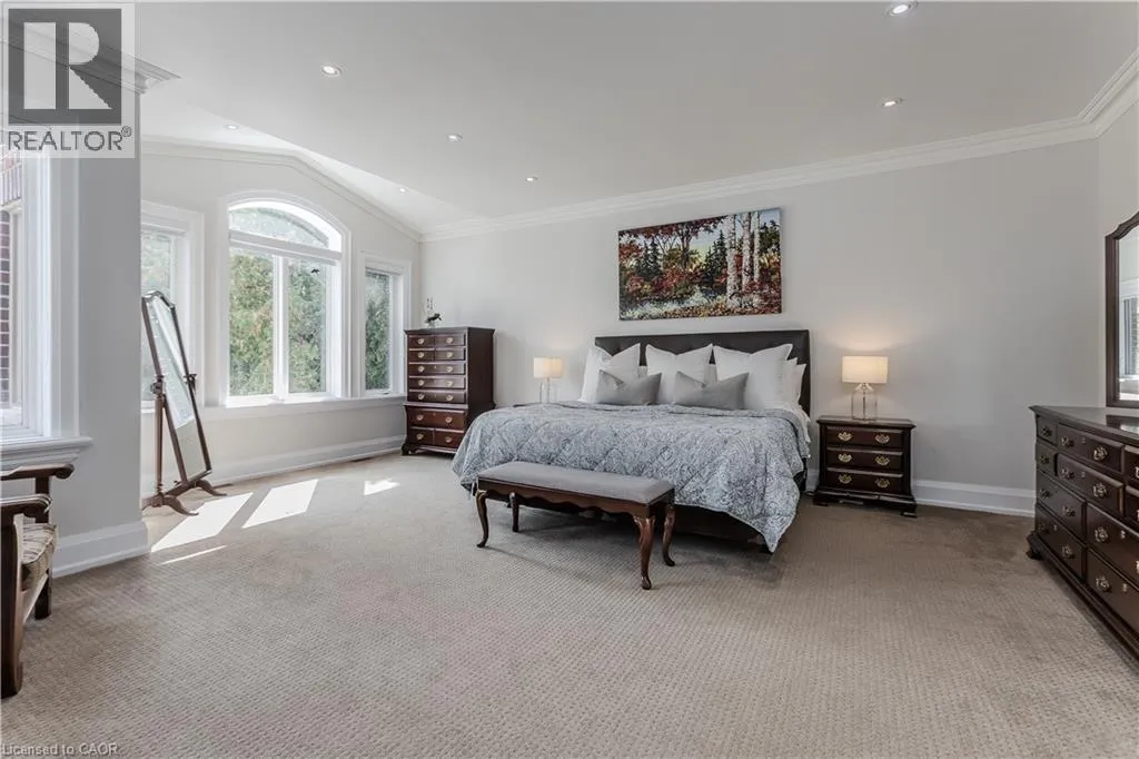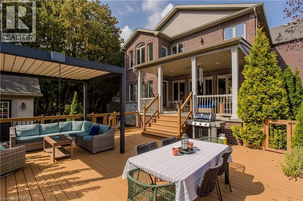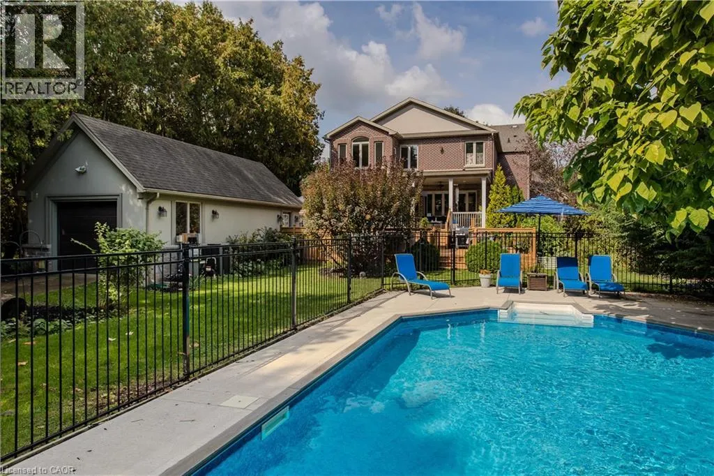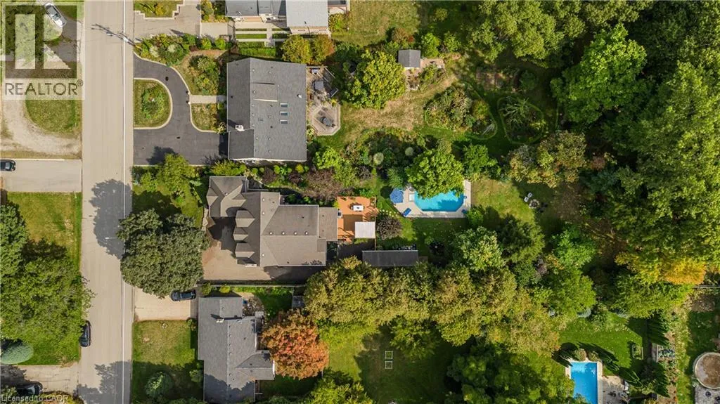 Francis to Cedar Welcome to 694 Cedar Ave, a rare half-acre oasis in Burlingtonâs coveted Aldershot neighbourhood, just five minutes from downtown and the lake. Custom built in 2009 with over 4,500 sq ft of finished living space (3,300 above grade) and soaring 9â ceilings, this residence combines timeless craftsmanship with modern updates. The park-like grounds feel more like a country retreat than a city lot. A shimmering saltwater pool with safety cover, tiered deck with custom louvered pergola, covered porch with pot lighting, fire pit, and curated landscaping with maples, poplars, redbuds, and evergreens create a setting that is truly exceptional. Inside, the custom Gravelle kitchen with butlerâs pantry, walk-in pantry, and wine fridge flows into a sun-filled great room with expansive windows overlooking the gardens and pool. Hardwood floors, an elegant dining room, and a versatile main-floor den complement the space, along with a stylish powder room with heated floor. Upstairs, the primary suite offers dual walk-in closets and a brand-new spa-inspired ensuite with freestanding tub, tiled glass shower, towel warmer, double vanity, and heated floor. Three additional bedrooms include one with its own ensuite, while the main bath also features heated floors. The finished lower level extends the living space with 8â ceilings, oversized windows, a cozy gas fireplace, recreation room, guest suite, full bath, and generous storage. Parking is abundant with a paved driveway for up to nine cars, plus both an attached garage and a detached tandem two-car garage with front and back auto doors. This is a rare opportunity: space, privacy, and natural beauty, all in an unbeatable location. (id:27476)