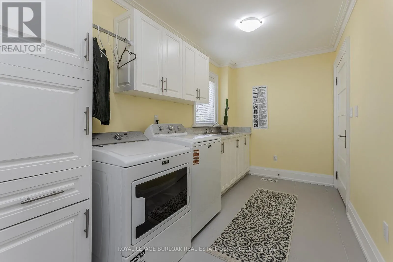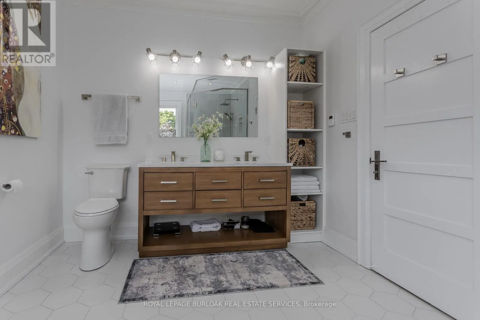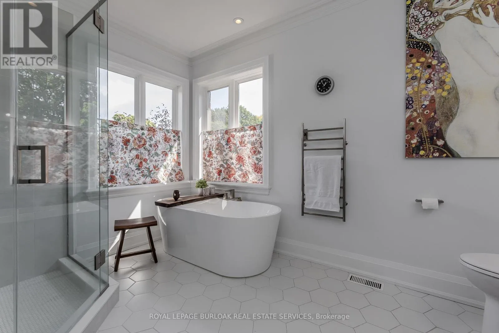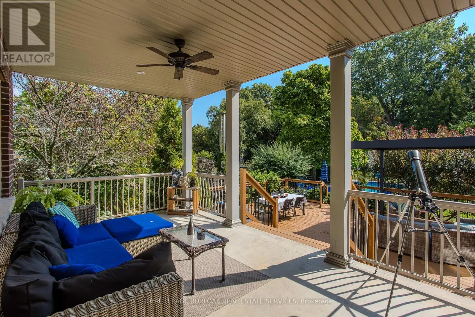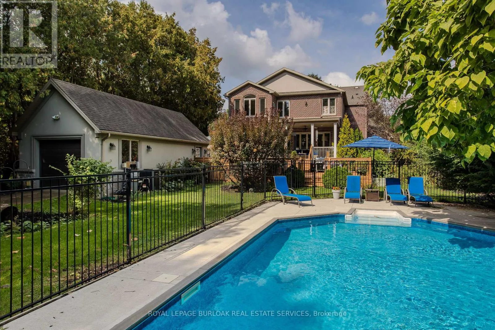 Cross Streets: Francis. ** Directions: Francis to Cedar. Welcome to 694 Cedar Ave, a rare half-acre oasis in Burlingtons coveted Aldershot neighbourhood, just five minutes from downtown and the lake. Custom built in 2009 with over 4,500 sq ft of finished living space (3,300 above grade) and soaring 9 ceilings, this residence combines timeless craftsmanship with modern updates. The park-like grounds feel more like a country retreat than a city lot. A shimmering saltwater pool with safety cover, tiered deck with custom louvered pergola, covered porch with pot lighting, fire pit, and curated landscaping with maples, poplars, redbuds, and evergreens create a setting that is truly exceptional. Inside, the custom Gravelle kitchen with butlers pantry, walk-in pantry, and wine fridge flows into a sun-filled great room with expansive windows overlooking the gardens and pool. Hardwood floors, an elegant dining room, and a versatile main-floor den complement the space, along with a stylish powder room with heated floor. Upstairs, the primary suite offers dual walk-in closets and a brand-new spa-inspired ensuite with freestanding tub, tiled glass shower, towel warmer, double vanity, and heated floor. Three additional bedrooms include one with its own ensuite, while the main bath also features heated floors. The finished lower level extends the living space with 8 ceilings, oversized windows, a cozy gas fireplace, recreation room, guest suite, full bath, and generous storage. Parking is abundant with a paved driveway for up to nine cars, plus both an attached garage and a detached tandem two-car garage with front and back auto doors. This is a rare opportunity: space, privacy, and natural beauty, all in an unbeatable location. (id:27476)