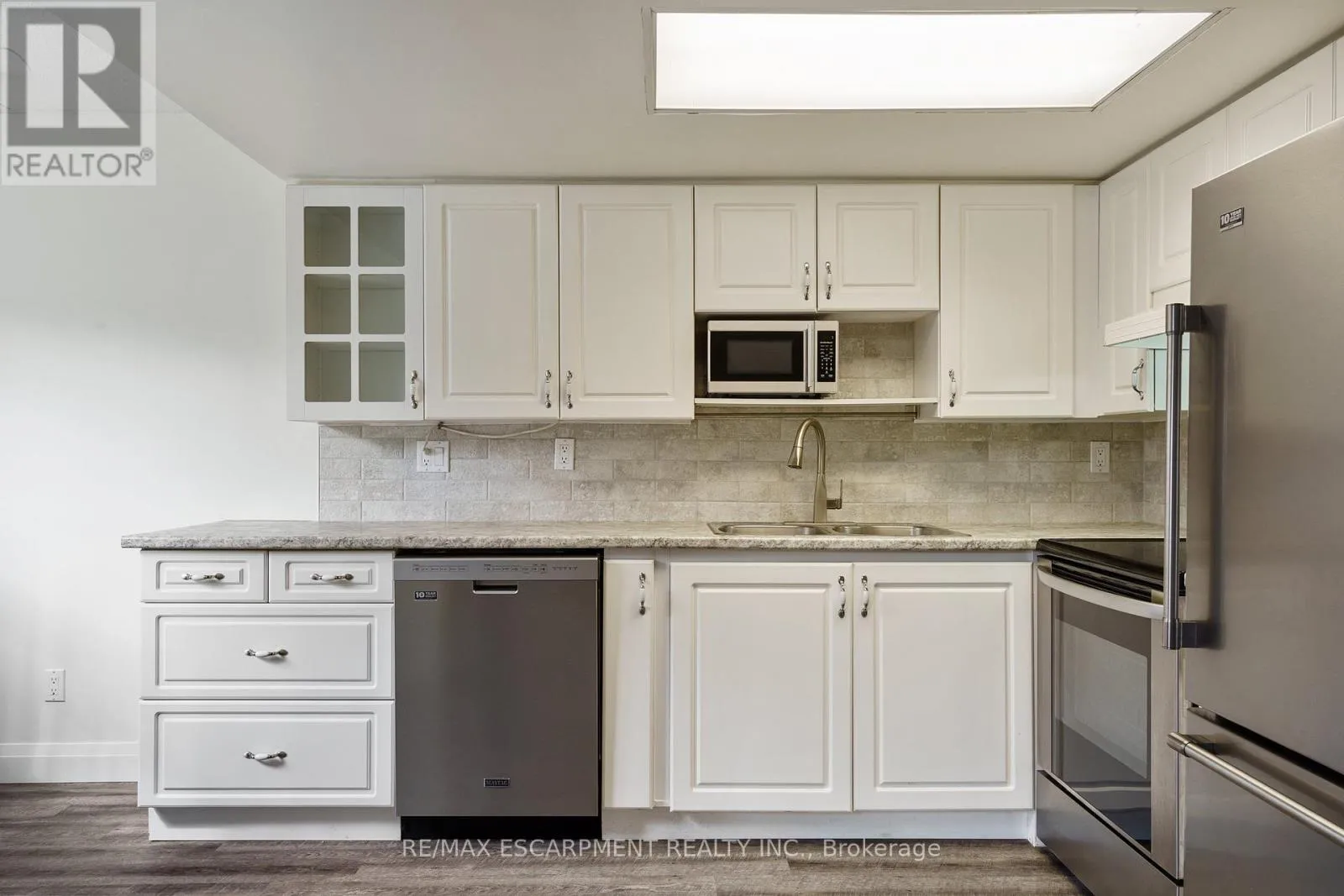 Cross Streets: Walkers Line. ** Directions: From Walkers Line turn West onto Upper Middle Rd. Discover the perfect mix of comfort and convenience in this beautifully maintained 1-bedroom, 1-bath condo in the sought-after Walkers Square community. The open layout showcases a bright and spacious living area and a smartly designed eat-in kitchen with abundant white cabinetry and stainless-steel appliances. The generously sized primary bedroom pairs perfectly with the convenience of in-suite laundry and 4-piece bathroom. Step onto your private balcony to unwind amidst mature trees and meticulously landscaped grounds - a tranquil park-like backdrop that offers both privacy and natural beauty. The building is smoke-free and impeccably cared for, providing a peaceful, worry-free lifestyle. Enjoy an exclusive underground parking and the added bonus of a locker space conveniently located on the same level as the suite. Exceptional on-site amenities include a party room, fitness centre, car wash station, and a community patio with BBQ area - ideal for entertaining or relaxing with neighbours. All this just steps from shopping, transit and everyday essentials, with quick access to the 403, QEW and GO Station. Affordable, convenient living in a truly desirable location - your new home awaits! (id:27476)
