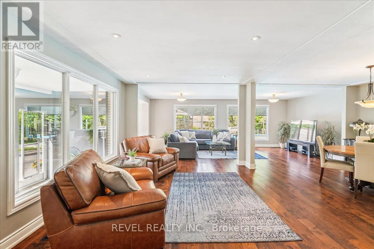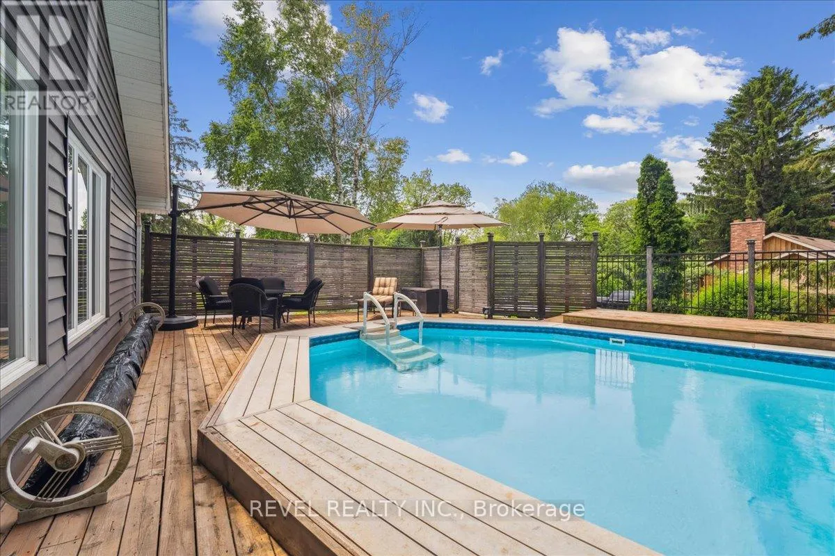 Cross Streets: Waterdown Road. ** Directions: Waterdown Road to Ireson Road. Country in the city! This custom ranch style bungalow sits on a beautiful .54 acre lot surrounded by nature & soaring trees. With only a few homes on this street, you can feel the exclusive lifestyle & privacy that is rarely offered in the city. Great curb appeal with manicured gardens, mature trees, wrought iron fencing & large driveway that fits 9 cars! Spacious layout offers 1,967 sq ft on the main floor with 3 bedrooms, 2 bathrooms, office, den & 1,013 sq ft in the lower level with extra bedroom. Foyer greets you with gleaming hardwood flooring, large open concept living, dining & family area where you have panoramic views of nature from every angle. The pool is off to the side and provides that resort style living with a calm and relaxing feel. Dining room is as if you are with nature itself and surrounded by lots of greenery. Updated kitchen offers a bright and elegant feel with large windows overlooking nature & custom cabinetry, quartz countertops, décor backsplash, smooth ceilings & breakfast bar. Ideal for entertaining with additional space to host, whether its summer time and open to the backyard or during the winter months by the updated cozy gas fireplace. Before heading outside, lets step into the spacious primary bedroom which offers a 5 pc ensuite with double sinks & walk in closet. Additionally, there are 2 bedooms, office & updated bathroom with glass shower. Finished basement offers a great amount of space as it includes a large rec room, bedroom, exercise/storage room, bonus room, laundry & large 22 x 12 storage area. The backyard oasis offers multiple areas to enjoy nature and entertaining! Whether you are on the West side on the pool wing sitting on the deck under shade from the trees or on the East side deck with a covered area BBQing, this is it! This deck is surrounded by lush views of the gardens, trees & nature. Bonus Well is great for gardening & filling the pool! Minutes to Downtown Waterdown, amenities and the Aldershot Go. (id:27476)