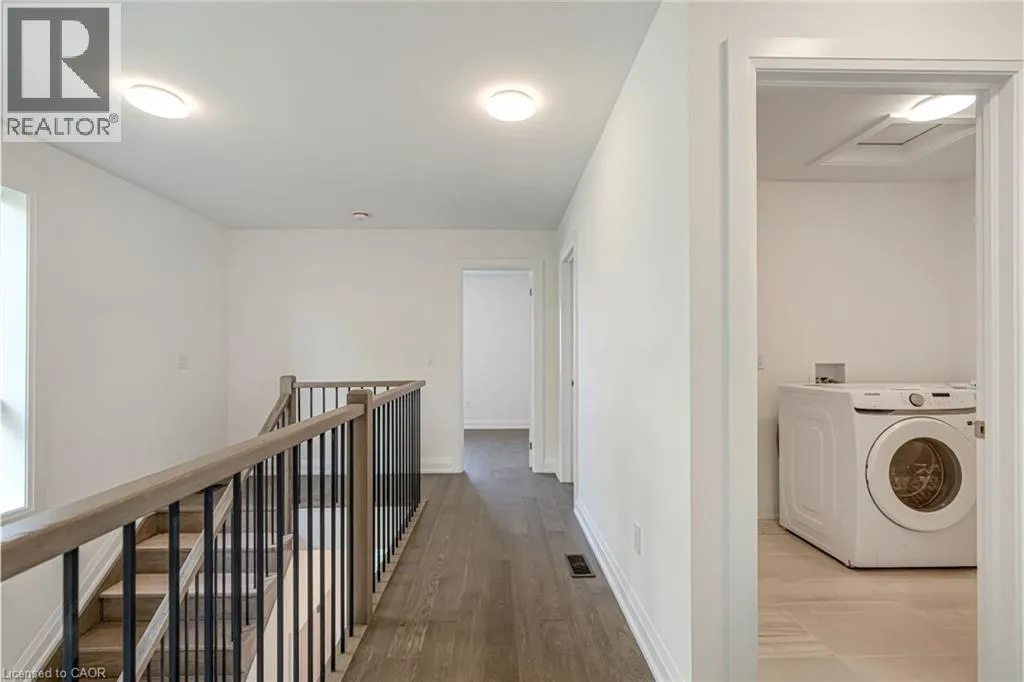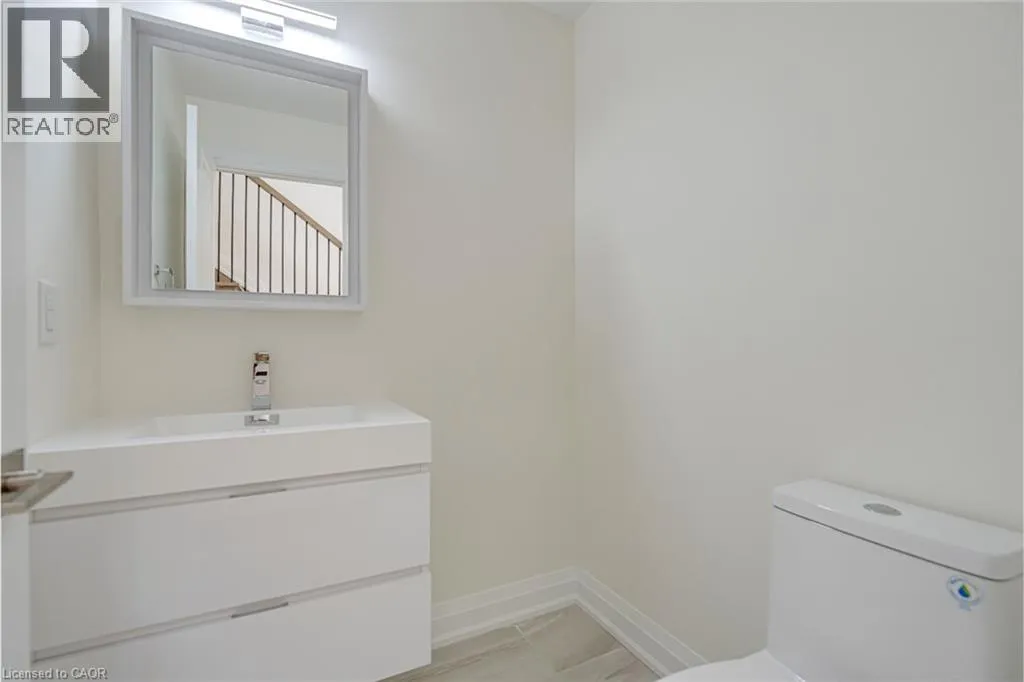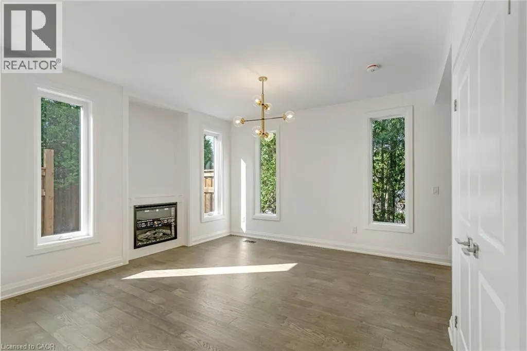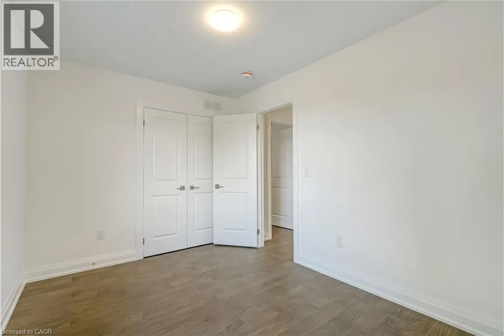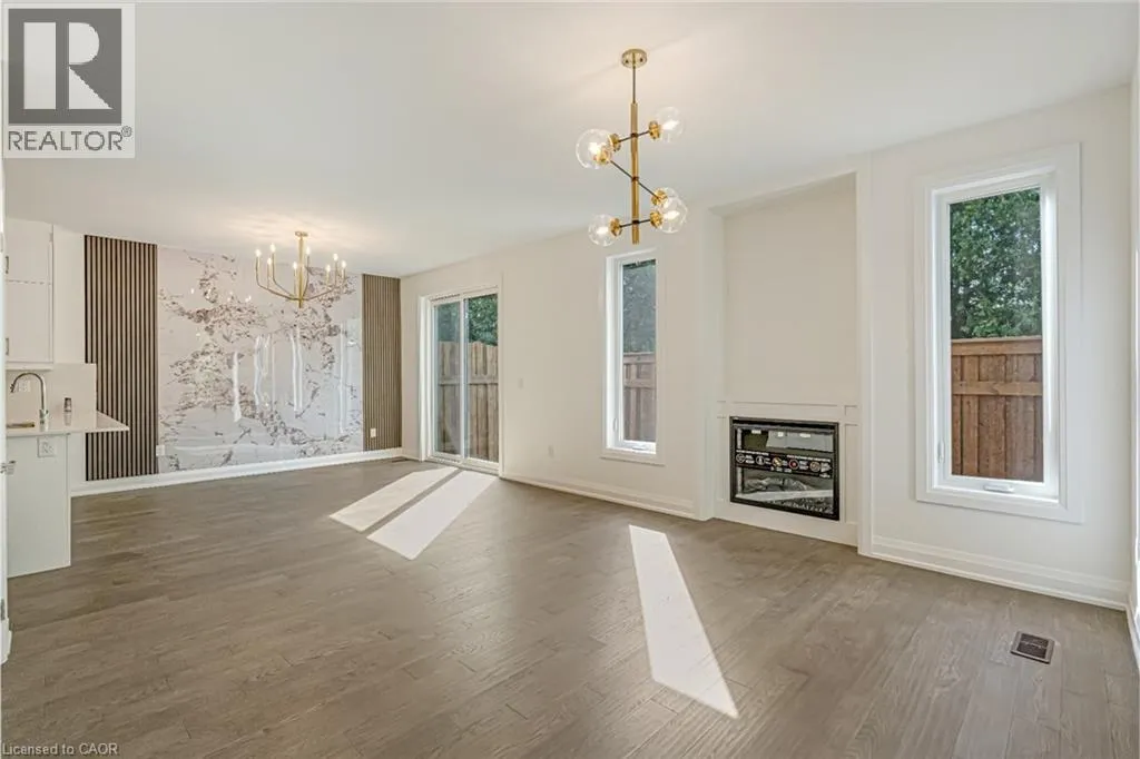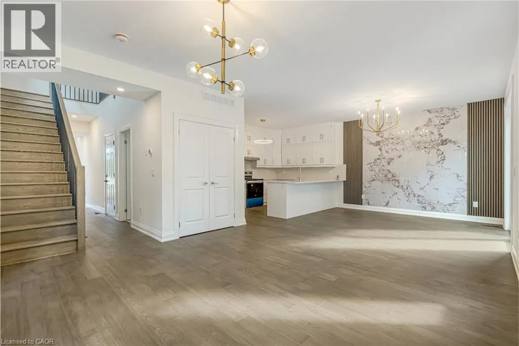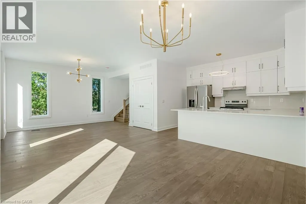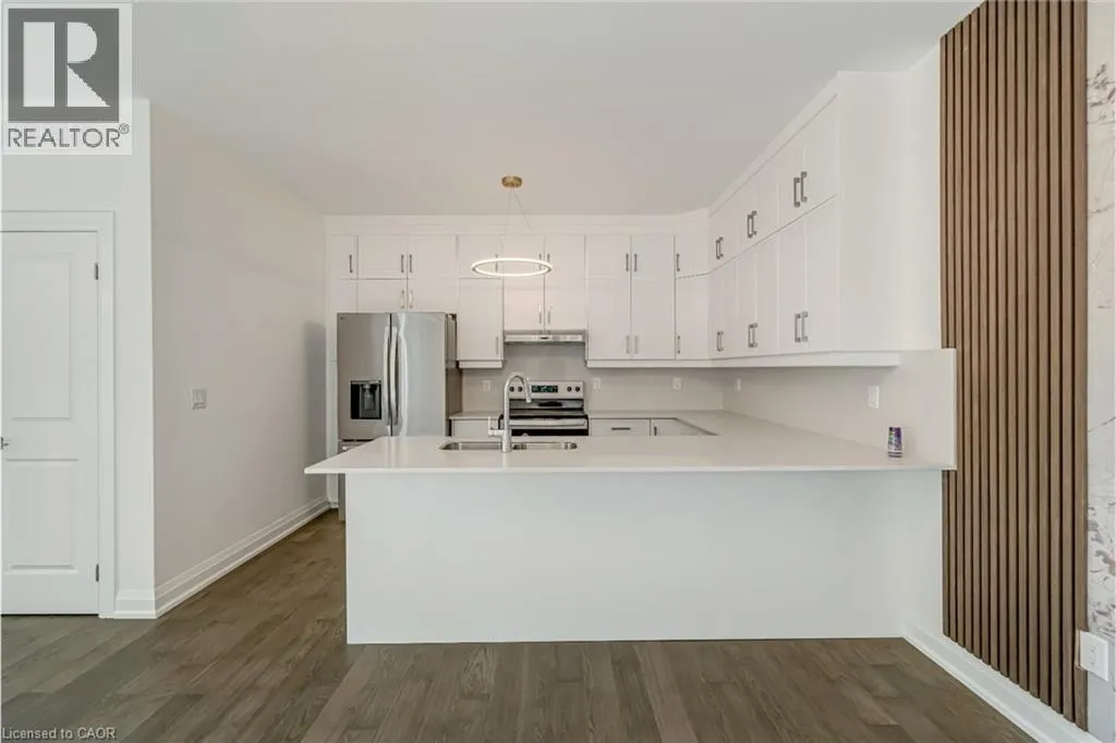 NORTH ON WALKERS LINE PAST UPPER MIDDLE ON THE WEST SIDE Brand-new executive town home never lived in! This stunning 1,799 sq. ft. home is situated in an exclusive enclave of just nine units, offering privacy and modern luxury. Its sleek West Coast-inspired exterior features a stylish blend of stone, brick, and aluminum faux wood. Enjoy the convenience of a double-car garage plus space for two additional vehicles in the driveway. Inside, 9-foot ceilings and engineered hardwood floors enhance the open-concept main floor, bathed in natural light from large windows and sliding glass doors leading to a private, fenced backyard perfect for entertaining. The designer kitchen is a chefs dream, boasting white shaker-style cabinets with extended uppers, quartz countertops, a stylish backsplash, stainless steel appliances, a large breakfast bar, and a separate pantry. Ideally located just minutes from the QEW, 407, and Burlington GO Station, with shopping, schools, parks, and golf courses nearby. A short drive to Lake Ontario adds to its appeal. Perfect for down sizers, busy executives, or families, this home offers low-maintenance living with a $349.83/month condo fee covering common area upkeep only, including grass cutting and street snow removal. Don't miss this rare opportunity schedule your viewing today! Tarion Warranty! (id:27476)