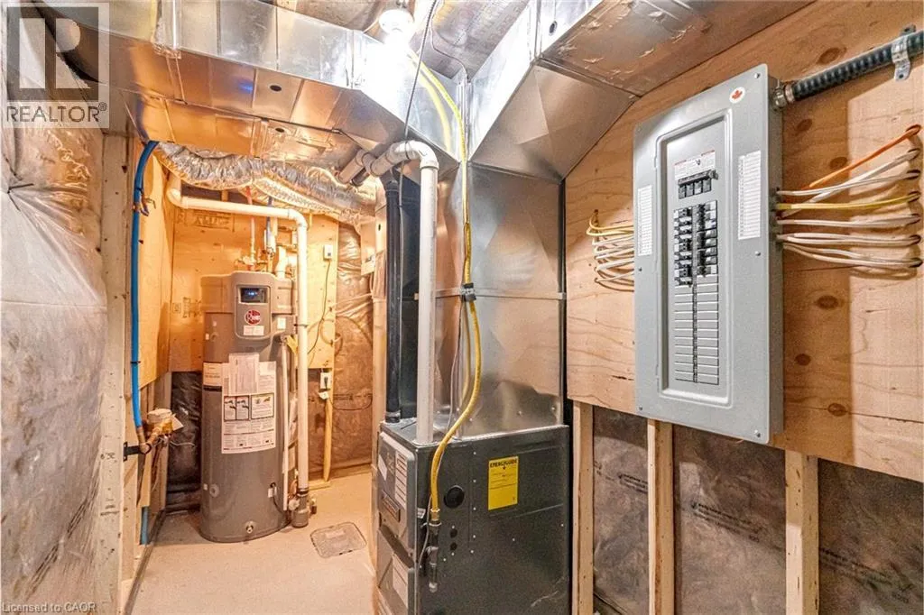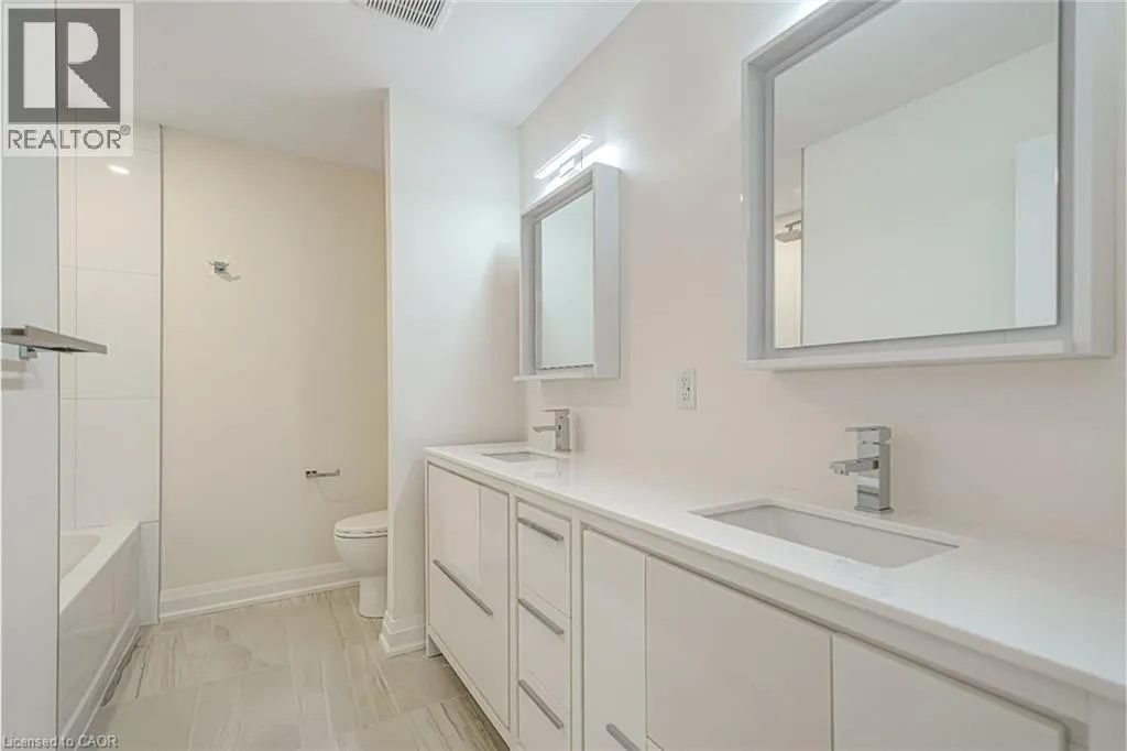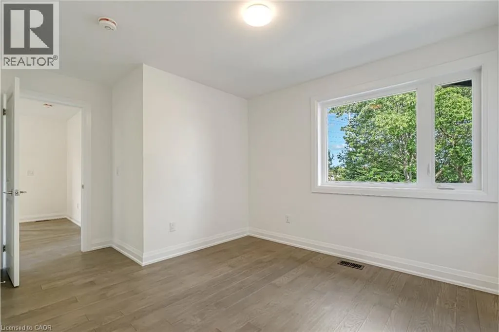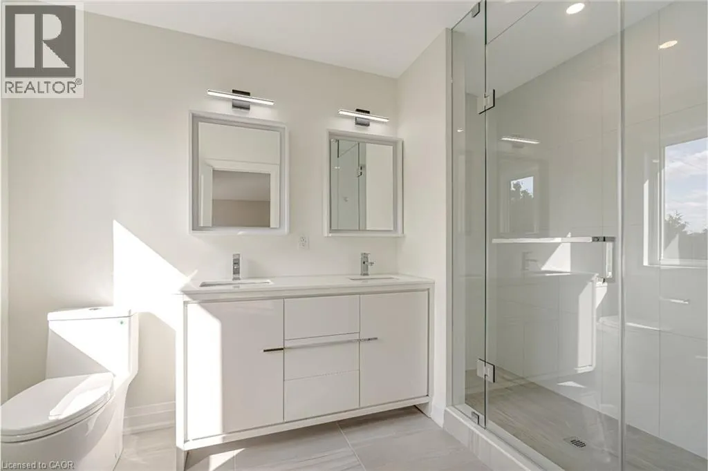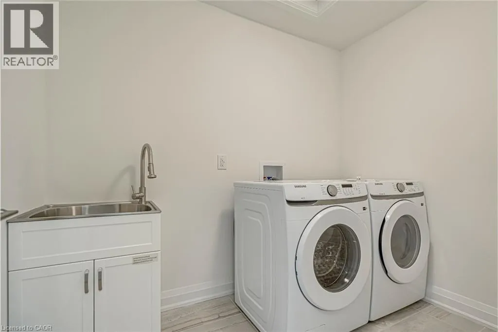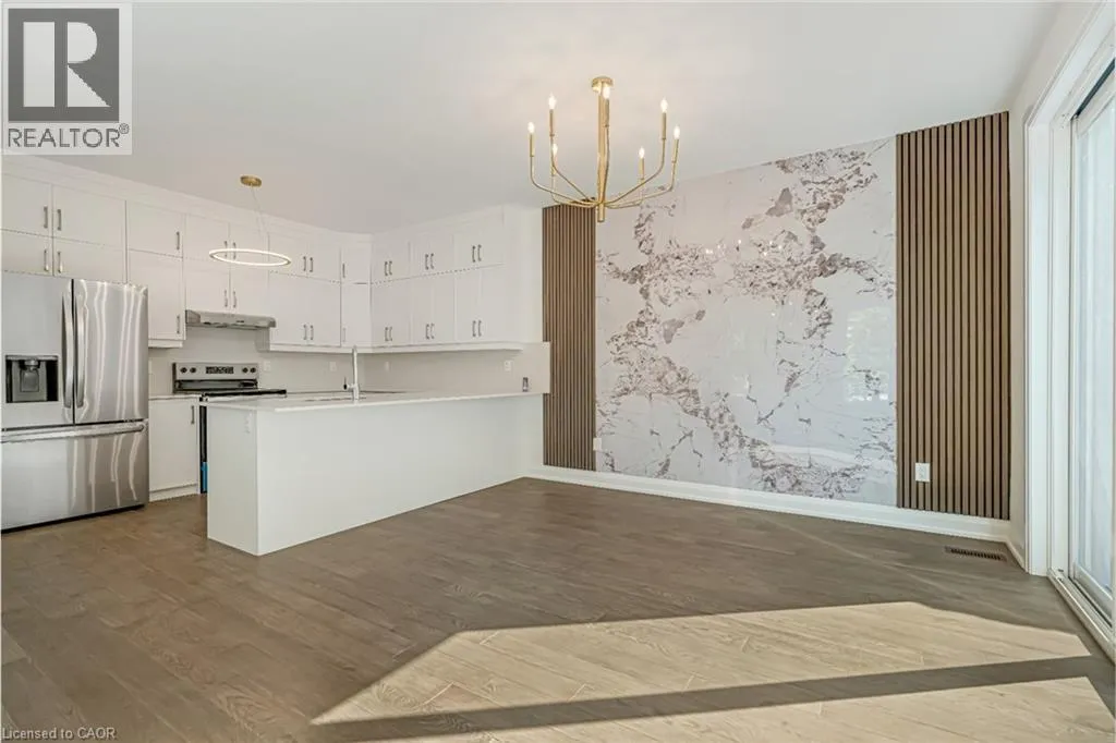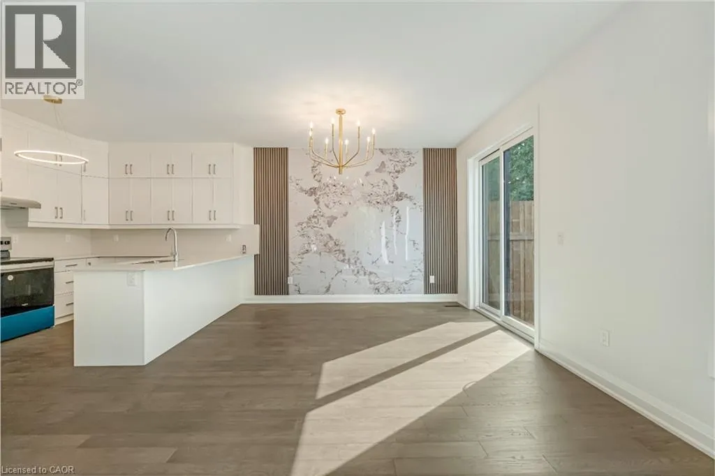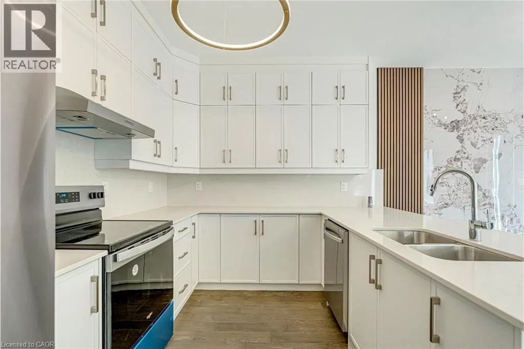 NORTH ON WALKERS LINE PAST UPPER MIDDLE ON THE WEST SIDE Brand-new executive town home never lived in! This stunning 1,799 sq. ft. home is situated in an exclusive enclave of just nine units, offering privacy and modern luxury. Its sleek West Coast-inspired exterior features a stylish blend of stone, brick, and aluminum faux wood. Enjoy the convenience of a double-car garage plus space for two additional vehicles in the driveway. Inside, 9-foot ceilings and engineered hardwood floors enhance the open-concept main floor, bathed in natural light from large windows and sliding glass doors leading to a private, fenced backyard perfect for entertaining. The designer kitchen is a chefs dream, boasting white shaker-style cabinets with extended uppers, quartz countertops, a stylish backsplash, stainless steel appliances, a large breakfast bar, and a separate pantry. Ideally located just minutes from the QEW, 407, and Burlington GO Station, with shopping, schools, parks, and golf courses nearby. A short drive to Lake Ontario adds to its appeal. Perfect for down sizers, busy executives, or families, this home offers low-maintenance living with a $349.83/month condo fee covering common area upkeep only, including grass cutting and street snow removal. Don't miss this rare opportunity schedule your viewing today! Tarion Warranty! (id:27476)