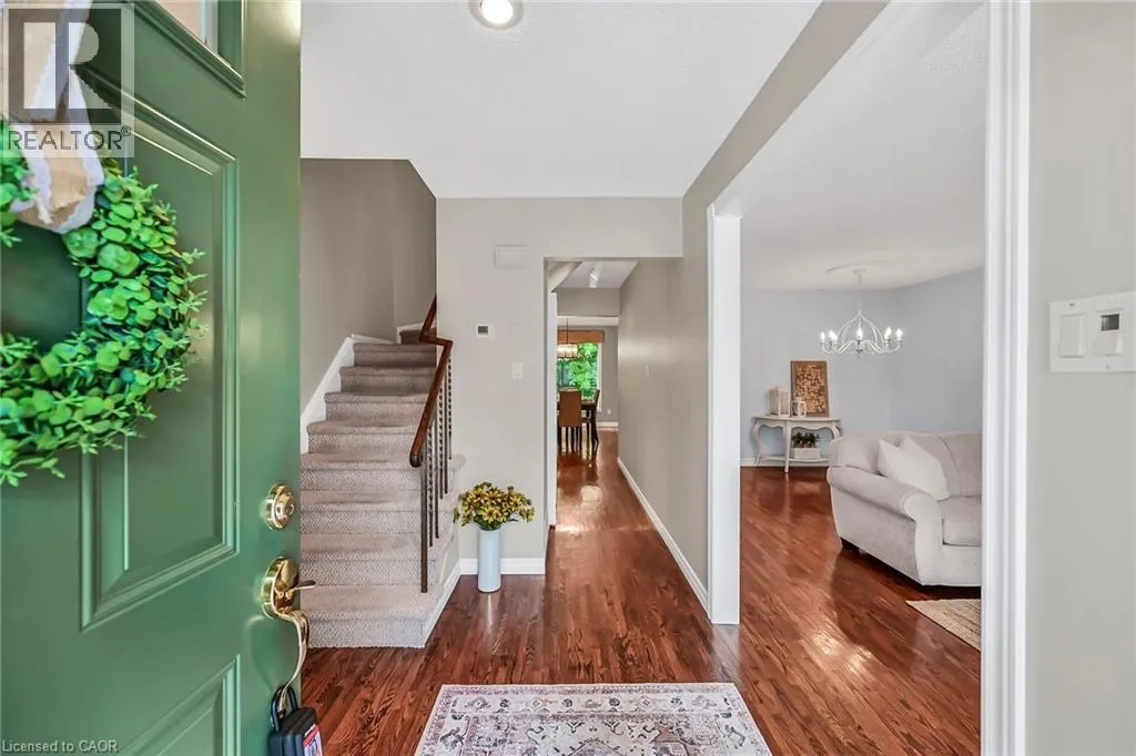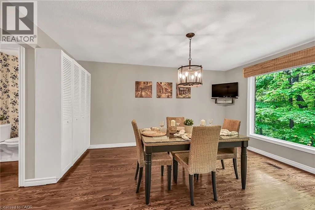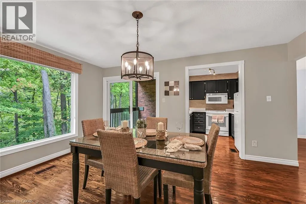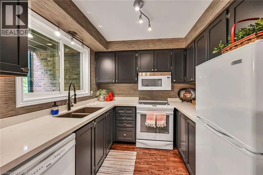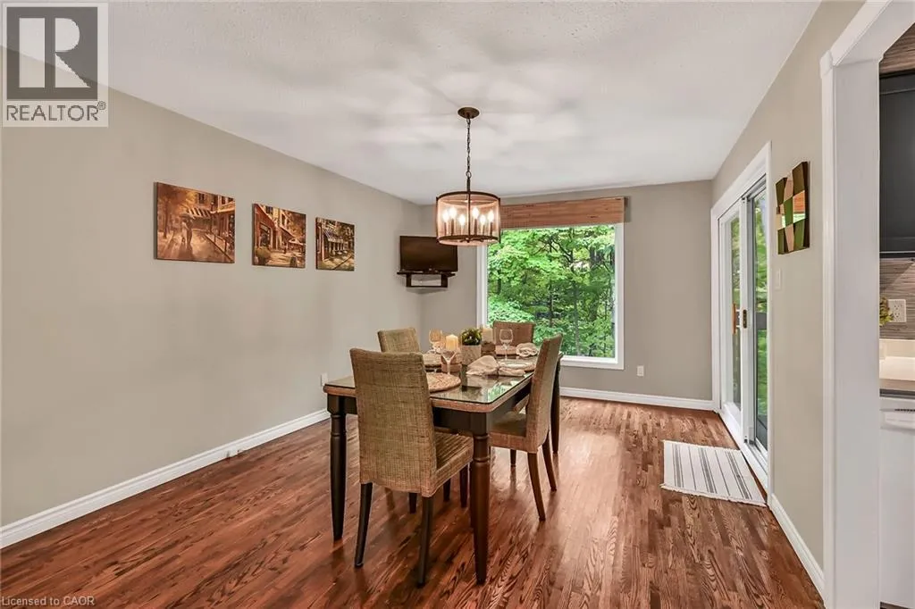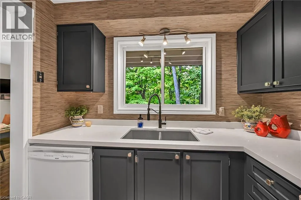 Brant St to North Service Rd Right on Kerns Rd This beautiful 3-bedroom townhome is located in a desirable Burlington location backing onto a forested ravine. Enjoy stress-free days bird watching from the privacy of two balconies or soak in the peaceful, forest views from your large, private deck. The family room off the kitchen is a sunlit retreat, with huge windows framing those gorgeous ravine views. Upstairs, the home has 3 spacious bedrooms. The primary suite boasts a balcony and private ensuite with walk in shower and large closet giving you plenty of room to unwind. The lower level is very comfortable and specious with a gas fireplace and a walk-out to a large deck, plus laundry and storage. Youâll also enjoy a double-wide driveway with 2 car private garage. Close to shopping, and access to QEW, 403 and 407. (id:27476)