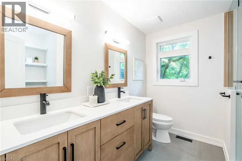 Kilbride to Carriage Trail Welcome to your dream country estate, perfectly set on 3.5 picturesque acres in the highly sought-after community of Kilbride. From the moment you step through the front door, this impeccably renovated home will captivate you with its seamless blend of modern elegance and timeless country farmhouse charm. This exceptional property features 4 bedrooms, plus an upper-level primary suite complete with a cozy fireplace, a luxurious ensuite, and a conveniently located laundry room nearby. The thoughtfully designed main floor offers an ideal layout for a growing family, centered around a chef-inspired kitchen with two oversized islands, a spacious dining area enveloped by windows, and an open-concept great room perfect for gathering. Need a bit of quiet? Retreat to the separate living room/office, where you can relax by the inviting gas fireplace. Additional main floor highlights include a large mudroom with exterior access and a vaulted secondary primary retreat offering its own serene ensuite and private walkout to an outdoor living space. The surprises continue in the fully finished lower level, where you'll discover a wet bar, recreation area, and a convenient walk-up to your sprawling backyard oasis. Why head to a resort when this property has it all? Enjoy an inviting inground pool, multiple outdoor seating areas, a volleyball court, and a cozy fire pitâall designed for ultimate outdoor living. As a bonus, this home features a legal accessory dwelling complete with a kitchenette, full bath, and fireplace, providing the perfect solution for multi-generational living. Located in one of North Burlingtonâs most coveted villages, this magnificent estate offers a rare opportunity for discerning buyers seeking the perfect blend of luxury, functionality, and family-friendly charm. Letâs get you home! Luxury Certified (id:27476)