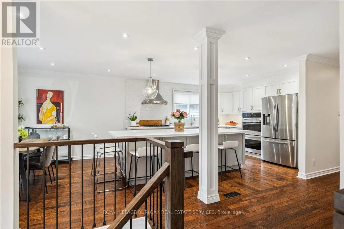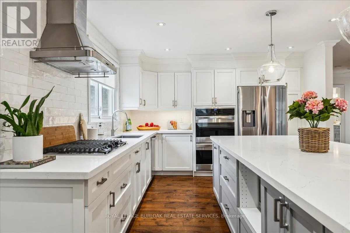Cross Streets: Longmoor Dr. ** Directions: Longmoor Dr to Catalina Cres. Stylish, spacious & move-in ready welcome to 692 Catalina Cres in Burlington's desirable Longmoor neighbourhood. This fully renovated 3+1 bed, 2 bath raised ranch features an open-concept main floor with a chefs kitchen, a large island & stainless appliances, flowing into a bright dining & family room with a gas fireplace. Crown moulding, pot lights, California shutters & fresh paint add modern flair, while the spa-like main bath offers everyday luxury. The lower level boasts a sunlit rec room with wood-burning fireplace, a stunning bath with soaker tub & a walk-up to a landscaped yard with tiered deck & inground pool. Set on a quiet, tree-lined crescent near top-rated Nelson High School, parks, shops, The Go Train &easy access to the QEW perfect for families craving comfort & convenience. (id:27476)