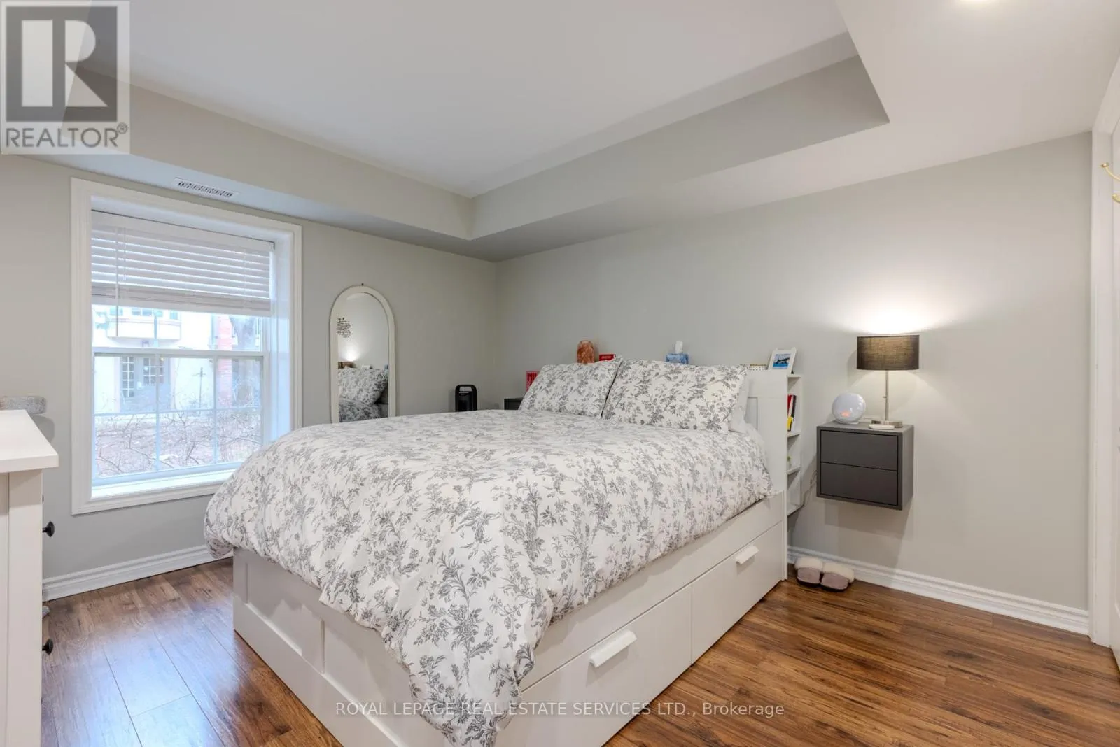 Walkers Line/Upper Middle Ground-floor gem with vaulted ceilings and private patio! This rarely available 2-bedroom, 1-bath unit offers over 870 sqft of updated living space. Open-concept layout and a walkout to a private patio surrounded by trees. Modern kitchen with granite counters, tile backsplash, and breakfast bar. Primary bedroom with ample closet space plus a second bedroom/home office with large walk-in closet. Freshly painted with smooth ceilings, updated lighting, and complete with in-suite laundry, storage locker, underground parking, new furnace, A/C, and hot water tank. BBQs permitted. Ideally located near transit, parks, trails, shopping, and Appleby GO. Move-in ready! (id:27476)