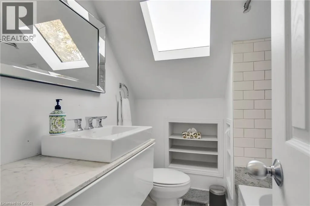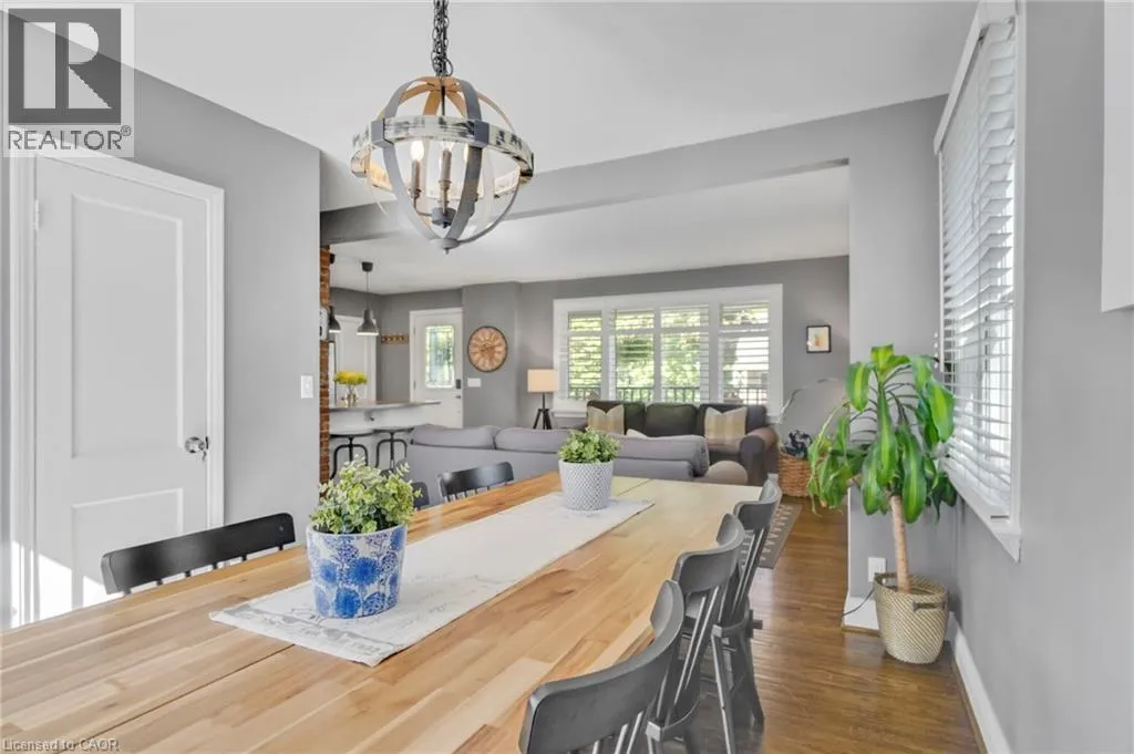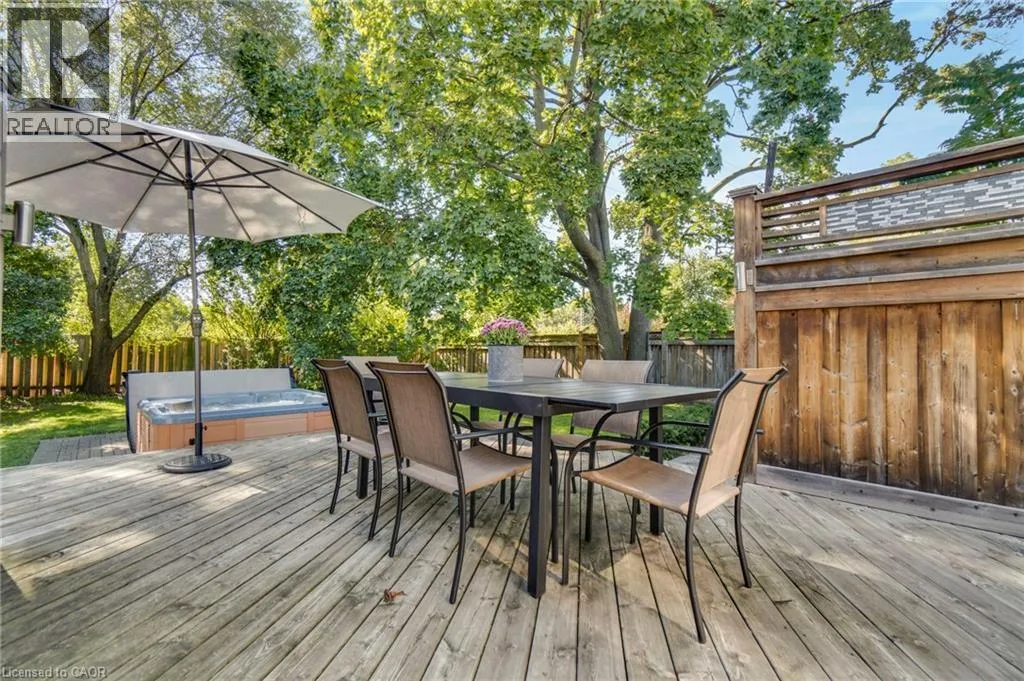 Brant to Olga to Hager; or Maple to Richmond to Hager Welcome to this beautifully maintained 3-bedroom, 2.5-bath carpet-free home ideally located in one of Burlingtonâs most desirable downtown neighbourhoods. Just steps from the lake, Spencer Smith Park, and a vibrant array of restaurants, cafes, and shops, this property offers the perfect blend of charm, character, and convenience. Step onto the spacious covered front porch and into a warm, open-concept main floor thatâs ideal for both relaxing and entertaining. The updated kitchen features stainless steel appliances, a gas stove, and a large peninsula with seating. The exposed brick chimney, original hardwood floors, California shutters, and gas fireplace in the living room create a cozy yet stylish atmosphere. The generous dining area comfortably fits a large table and opens via double doors to the backyard deckâperfect for indoor/outdoor living. Upstairs, youâll find two bright bedrooms with built-in cabinets and a renovated 4-piece bath. The finished basement includes a spacious primary bedroom, a comfortable rec room/living area, and a bathroom with a walk-in shower âideal for guests or as a private retreat. The private backyard is your personal oasis, complete with mature trees, a wooden deck, a hot tub, and a new shed for extra storage. Recent upgrades include: Furnace (Dec 2020); A/C (2021); Exterior paint (2021); Dishwasher (2022); Powder room renovation (2023); Shed (2023); Hot tub cover (2025). Donât miss this rare opportunity to live in a charming, character-filled home in downtown Burlingtonâwhere youâre never far from the lake, green space, and city amenities. Book your private showing today! (id:27476)