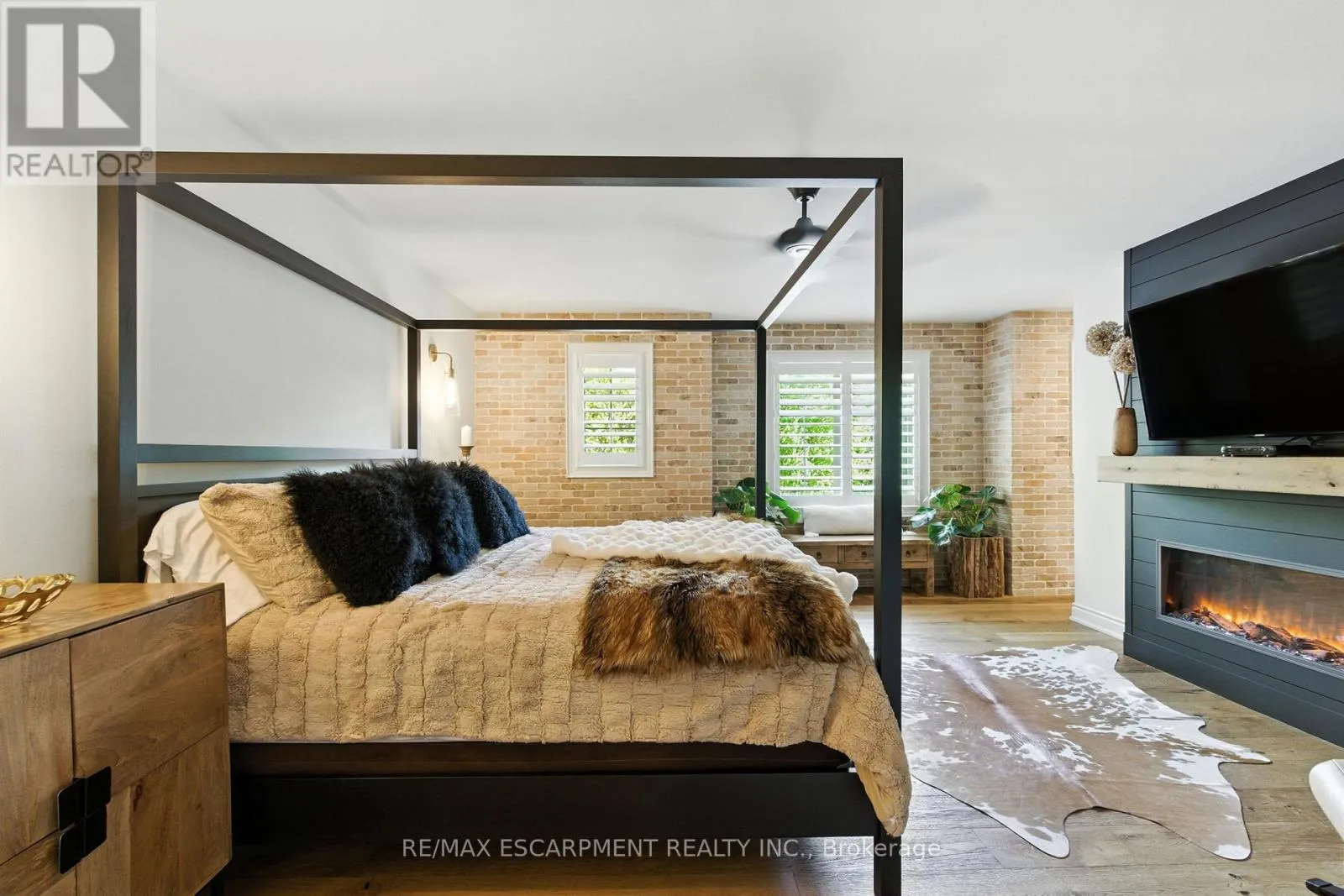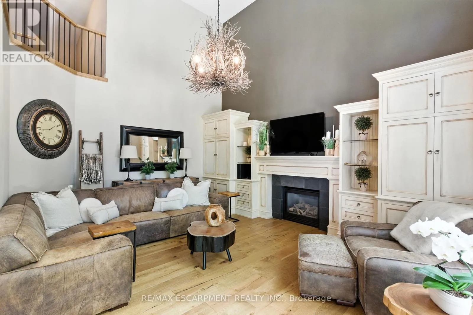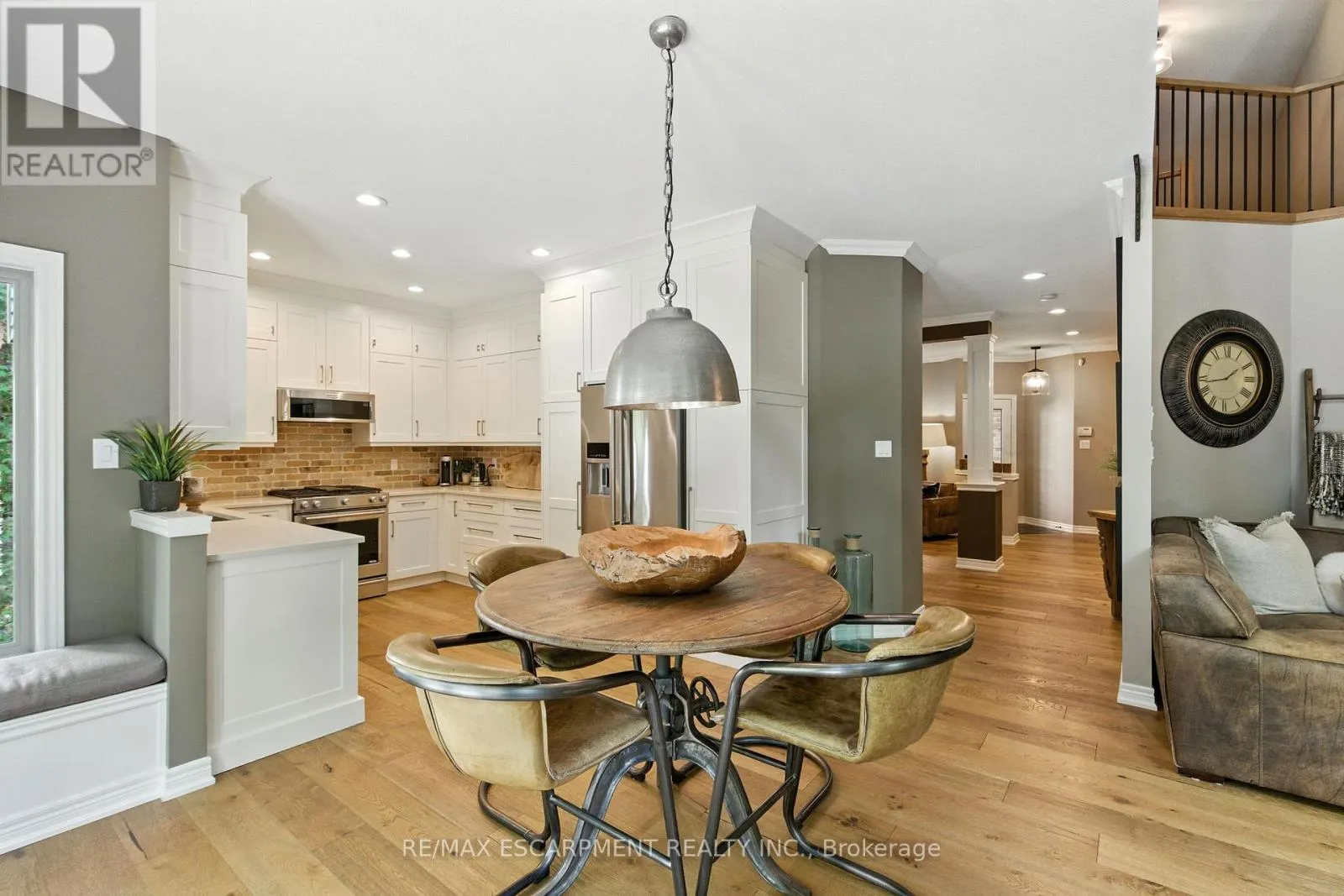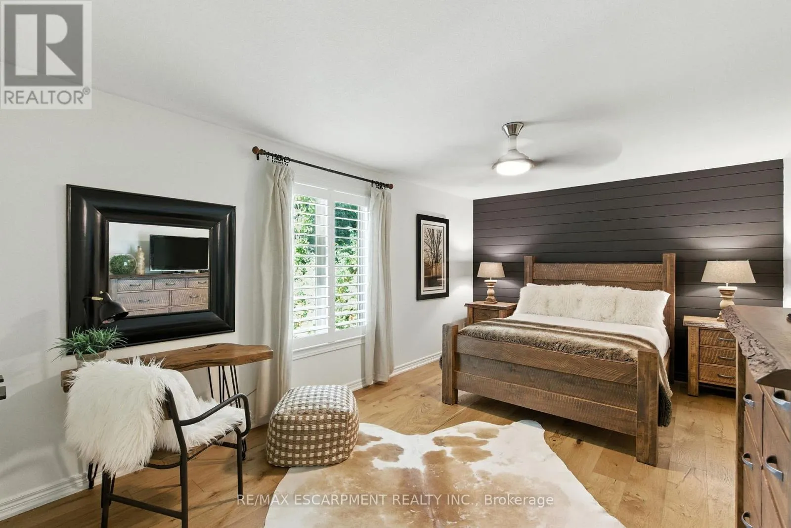 Cross Streets: -. ** Directions: PLAINS RD W TO UNSWORTH AVE TO SANDCHERRY DR. A rarity on Sandcherry! Tucked away in a desirable, tranquil subdivision, 587 Sandcherry Drive leaves a lasting impression from the very first glance. With beautiful gardens and mature trees and a quiet elegance, this home has a presence that feels both welcoming and peaceful. Step inside to find a residence that impresses across the nearly 2,900 square feet of above grade living. Engineered oak floors stretch across the main level, guiding you from one generous space to the next. The formal dining and living area offer grandeur, while the two-storey family room - anchored by a gas fireplace - feels like the perfect perch for gathering. And then there's the kitchen. Here, you'll find a kitchen that anticipates every want, with gorgeous white cabinetry, stainless steel appliances, casual dining area and a walk out to the backyard. Upstairs, the primary suite leans into quiet luxury with a soft brick feature wall, a fireplace for moody evenings, and a walk-in closet that feels more like a boutique than storage. The ensuite, flooded with natural light, offers a shower for two and an extended vanity - equal parts indulgent and practical. Two more bedrooms complete this level, one with direct access to the main bath. An additional 1,000 square feet of living space is found in the fully finished basement, where a quiet space has been designed for an at-home office, plus a family room and a powder room. But the real secret is the backyard. Private, enveloped by greenery and designed for lingering. One side offers a hot tub for restorative nights under the stars, while the other hosts a deck for long summer dinners. And beyond the fence? Direct access to the Royal Botanical Gardens nature, quite literally, in your own backyard. A home that balances elegance and ease. A retreat that feels both grounded and elevated. And yes, a rarity that wont be waiting long. RSA. (id:27476)