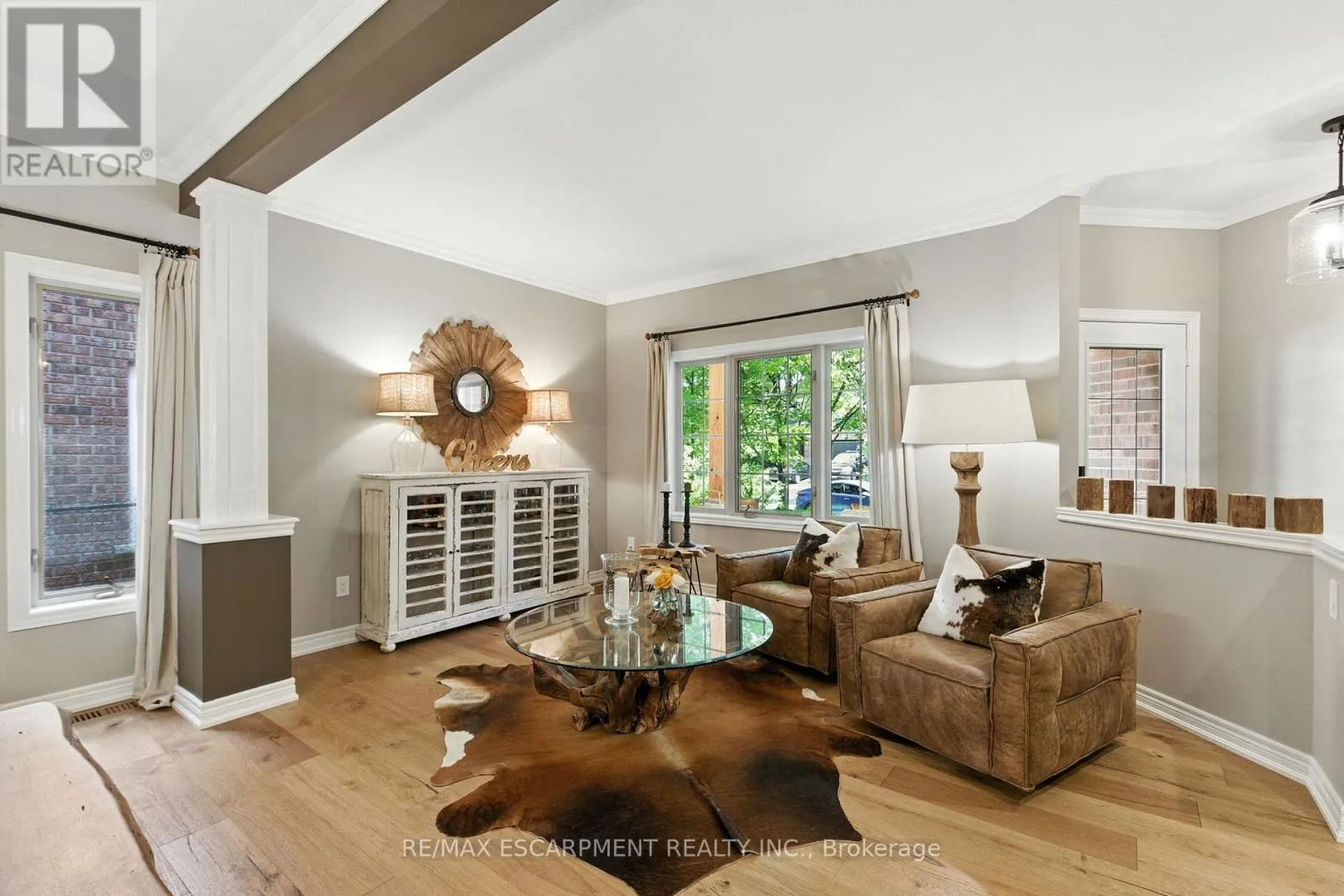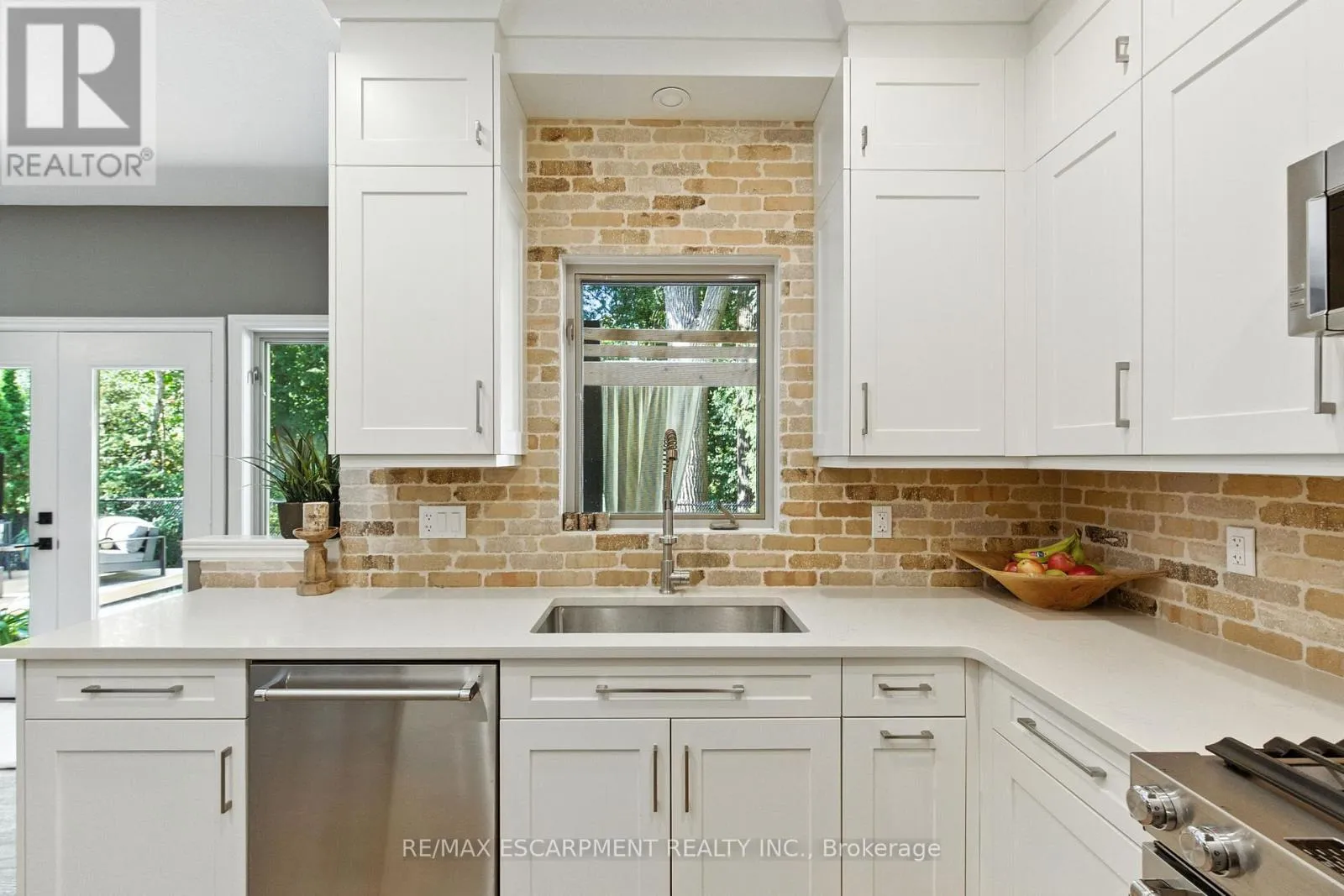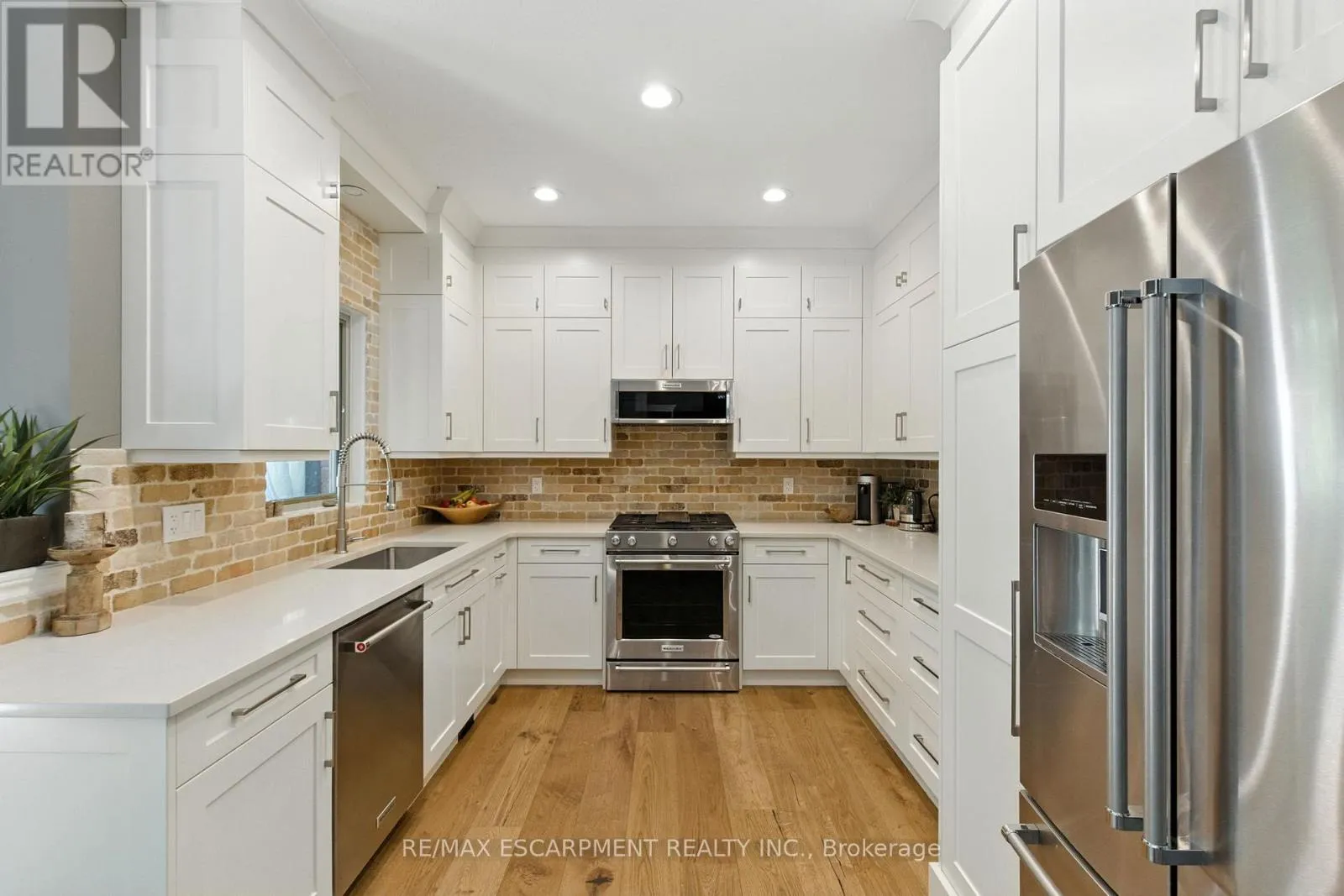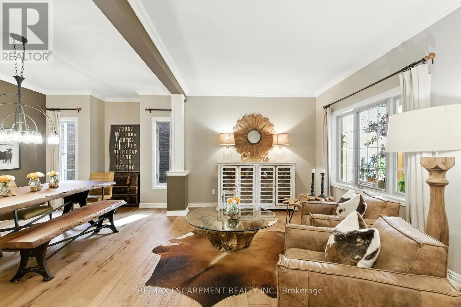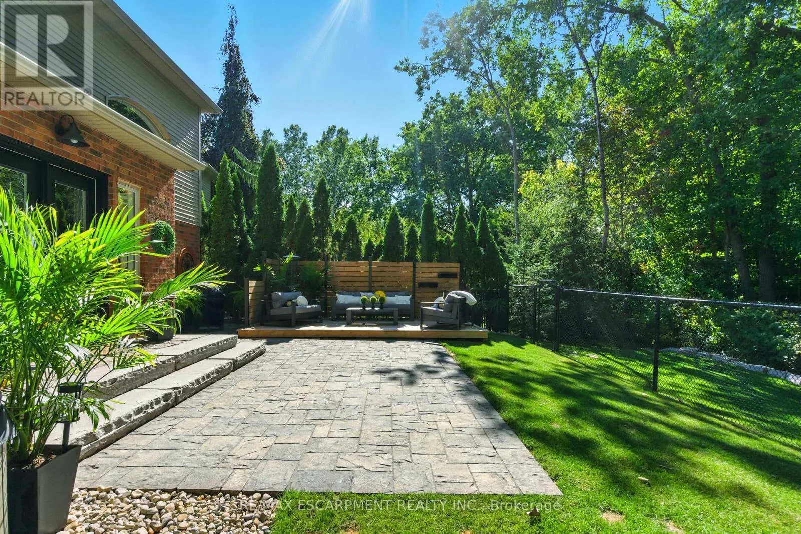 Cross Streets: -. ** Directions: PLAINS RD W TO UNSWORTH AVE TO SANDCHERRY DR. A rarity on Sandcherry! Tucked away in a desirable, tranquil subdivision, 587 Sandcherry Drive leaves a lasting impression from the very first glance. With beautiful gardens and mature trees and a quiet elegance, this home has a presence that feels both welcoming and peaceful. Step inside to find a residence that impresses across the nearly 2,900 square feet of above grade living. Engineered oak floors stretch across the main level, guiding you from one generous space to the next. The formal dining and living area offer grandeur, while the two-storey family room - anchored by a gas fireplace - feels like the perfect perch for gathering. And then there's the kitchen. Here, you'll find a kitchen that anticipates every want, with gorgeous white cabinetry, stainless steel appliances, casual dining area and a walk out to the backyard. Upstairs, the primary suite leans into quiet luxury with a soft brick feature wall, a fireplace for moody evenings, and a walk-in closet that feels more like a boutique than storage. The ensuite, flooded with natural light, offers a shower for two and an extended vanity - equal parts indulgent and practical. Two more bedrooms complete this level, one with direct access to the main bath. An additional 1,000 square feet of living space is found in the fully finished basement, where a quiet space has been designed for an at-home office, plus a family room and a powder room. But the real secret is the backyard. Private, enveloped by greenery and designed for lingering. One side offers a hot tub for restorative nights under the stars, while the other hosts a deck for long summer dinners. And beyond the fence? Direct access to the Royal Botanical Gardens nature, quite literally, in your own backyard. A home that balances elegance and ease. A retreat that feels both grounded and elevated. And yes, a rarity that wont be waiting long. RSA. (id:27476)