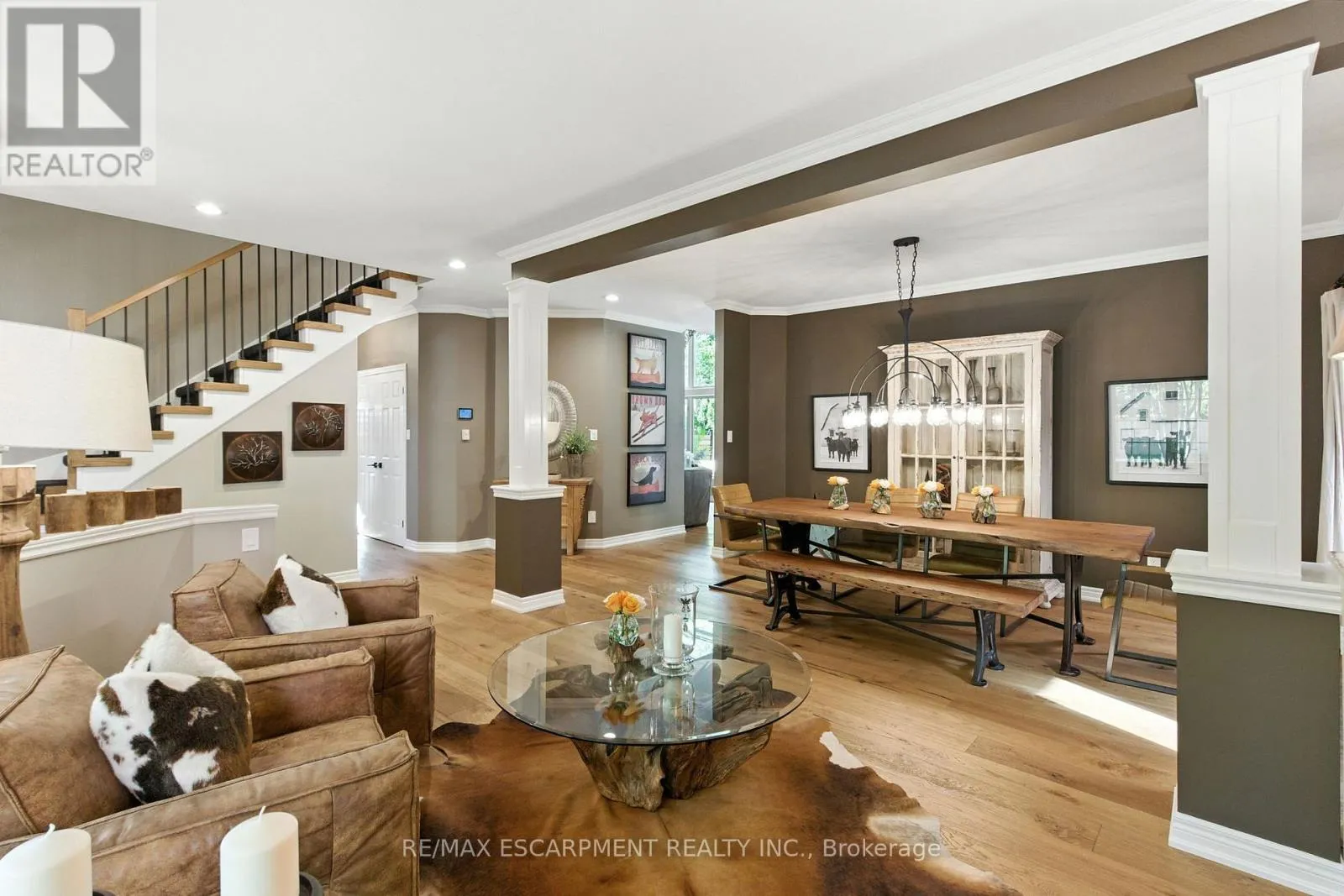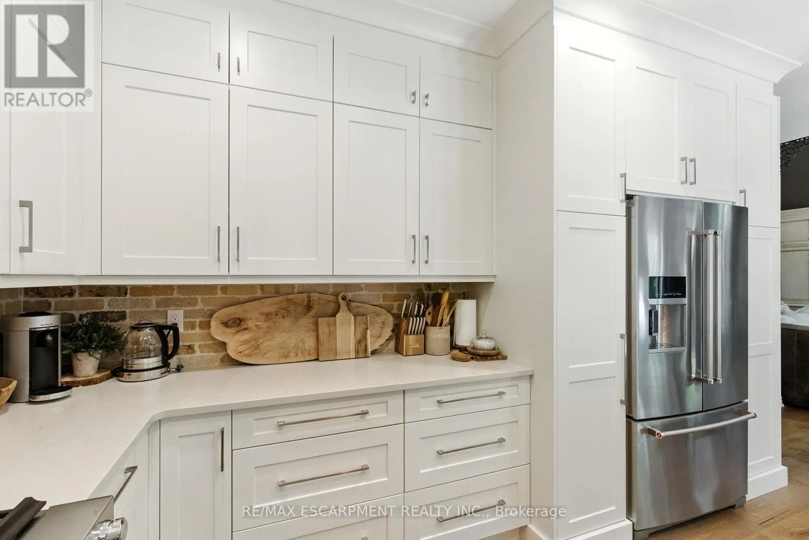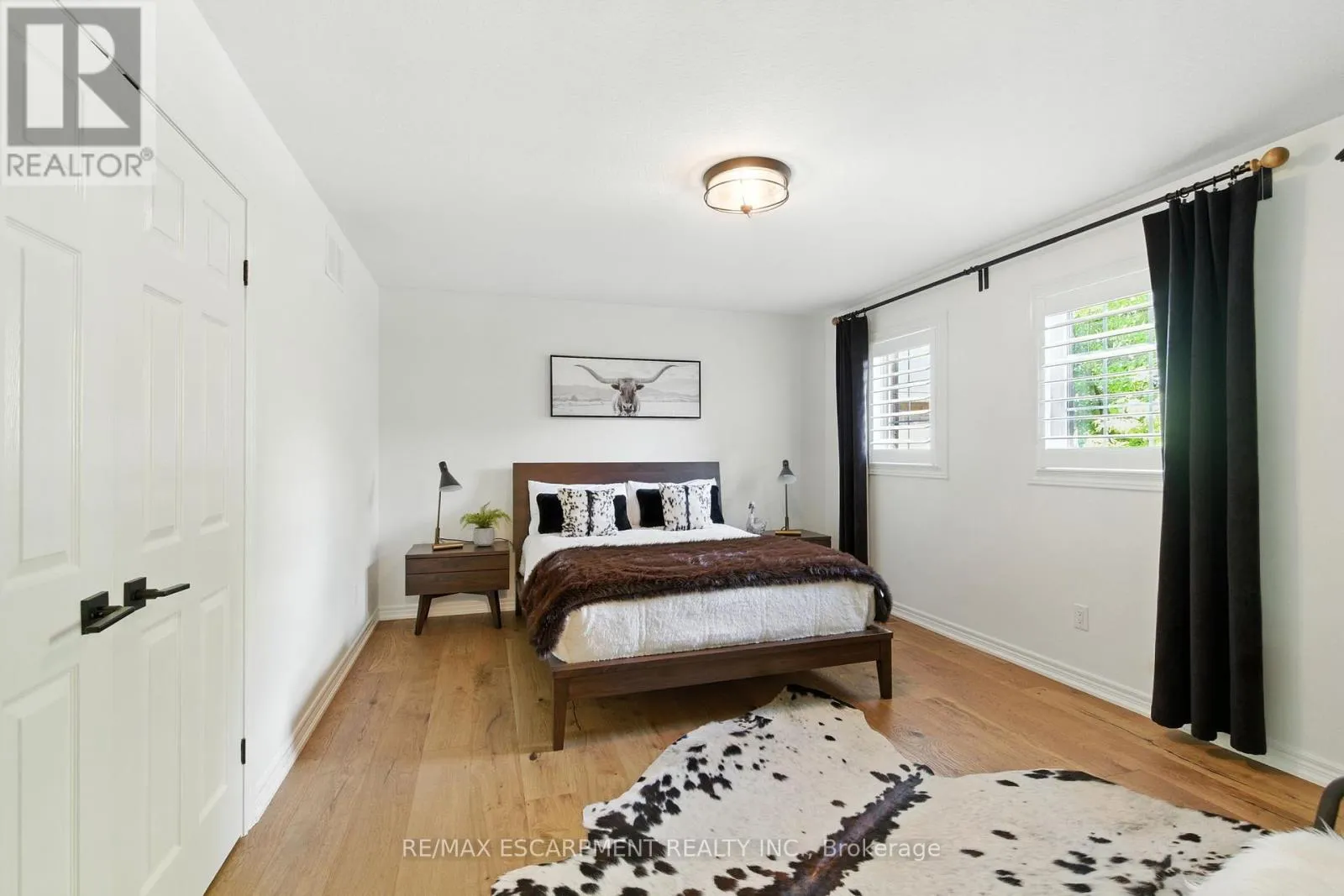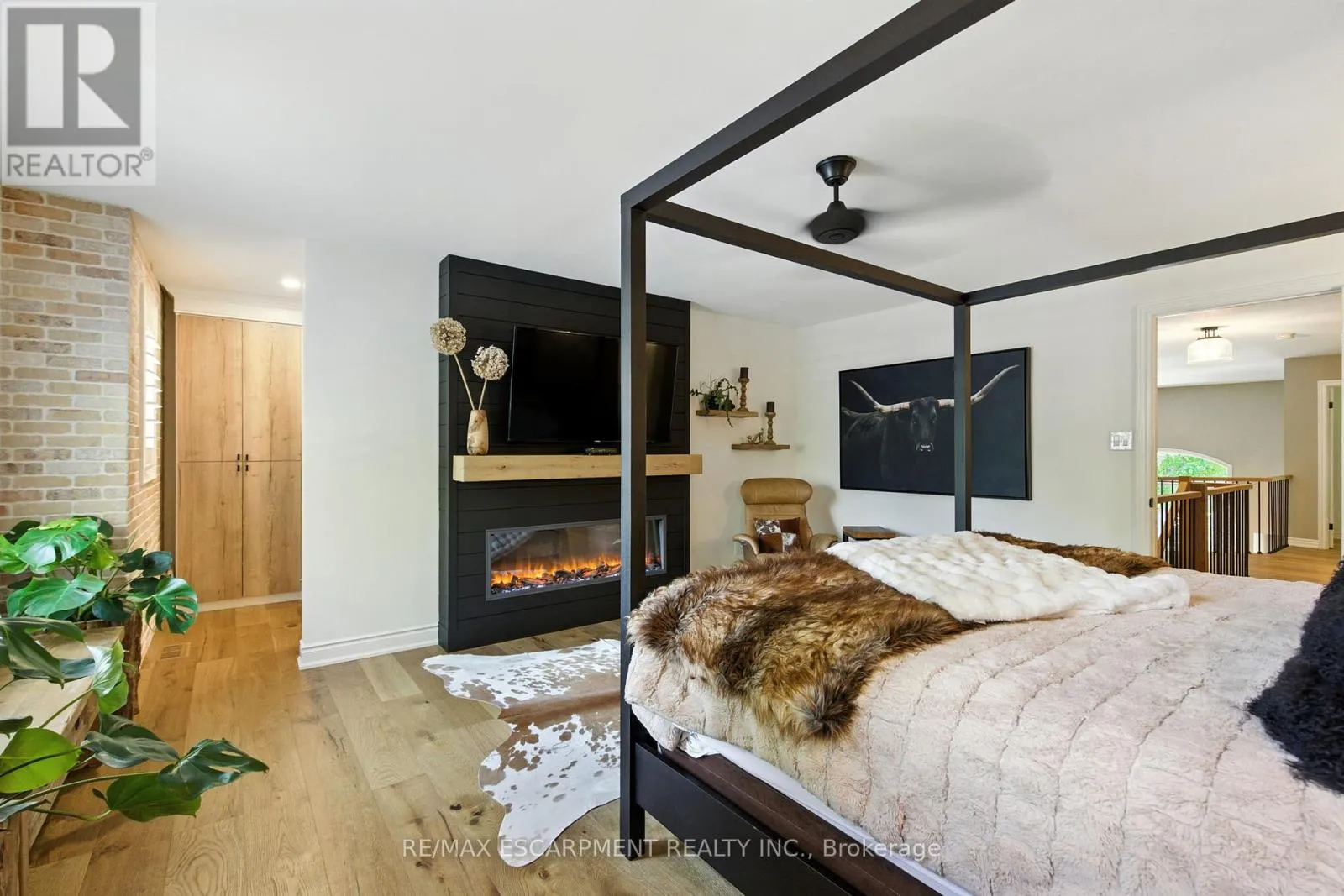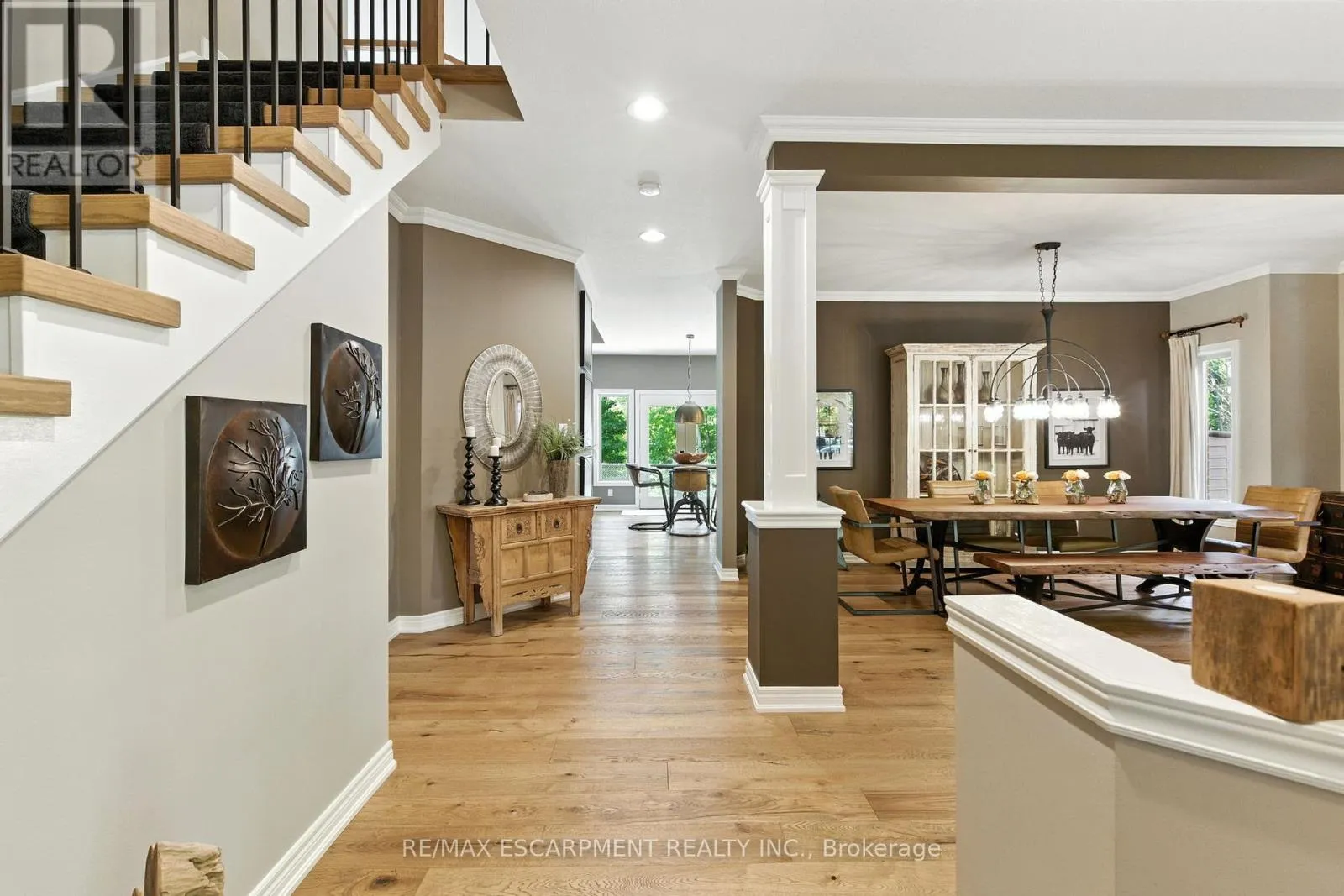 Cross Streets: -. ** Directions: PLAINS RD W TO UNSWORTH AVE TO SANDCHERRY DR. A rarity on Sandcherry! Tucked away in a desirable, tranquil subdivision, 587 Sandcherry Drive leaves a lasting impression from the very first glance. With beautiful gardens and mature trees and a quiet elegance, this home has a presence that feels both welcoming and peaceful. Step inside to find a residence that impresses across the nearly 2,900 square feet of above grade living. Engineered oak floors stretch across the main level, guiding you from one generous space to the next. The formal dining and living area offer grandeur, while the two-storey family room - anchored by a gas fireplace - feels like the perfect perch for gathering. And then there's the kitchen. Here, you'll find a kitchen that anticipates every want, with gorgeous white cabinetry, stainless steel appliances, casual dining area and a walk out to the backyard. Upstairs, the primary suite leans into quiet luxury with a soft brick feature wall, a fireplace for moody evenings, and a walk-in closet that feels more like a boutique than storage. The ensuite, flooded with natural light, offers a shower for two and an extended vanity - equal parts indulgent and practical. Two more bedrooms complete this level, one with direct access to the main bath. An additional 1,000 square feet of living space is found in the fully finished basement, where a quiet space has been designed for an at-home office, plus a family room and a powder room. But the real secret is the backyard. Private, enveloped by greenery and designed for lingering. One side offers a hot tub for restorative nights under the stars, while the other hosts a deck for long summer dinners. And beyond the fence? Direct access to the Royal Botanical Gardens nature, quite literally, in your own backyard. A home that balances elegance and ease. A retreat that feels both grounded and elevated. And yes, a rarity that wont be waiting long. RSA. (id:27476)
