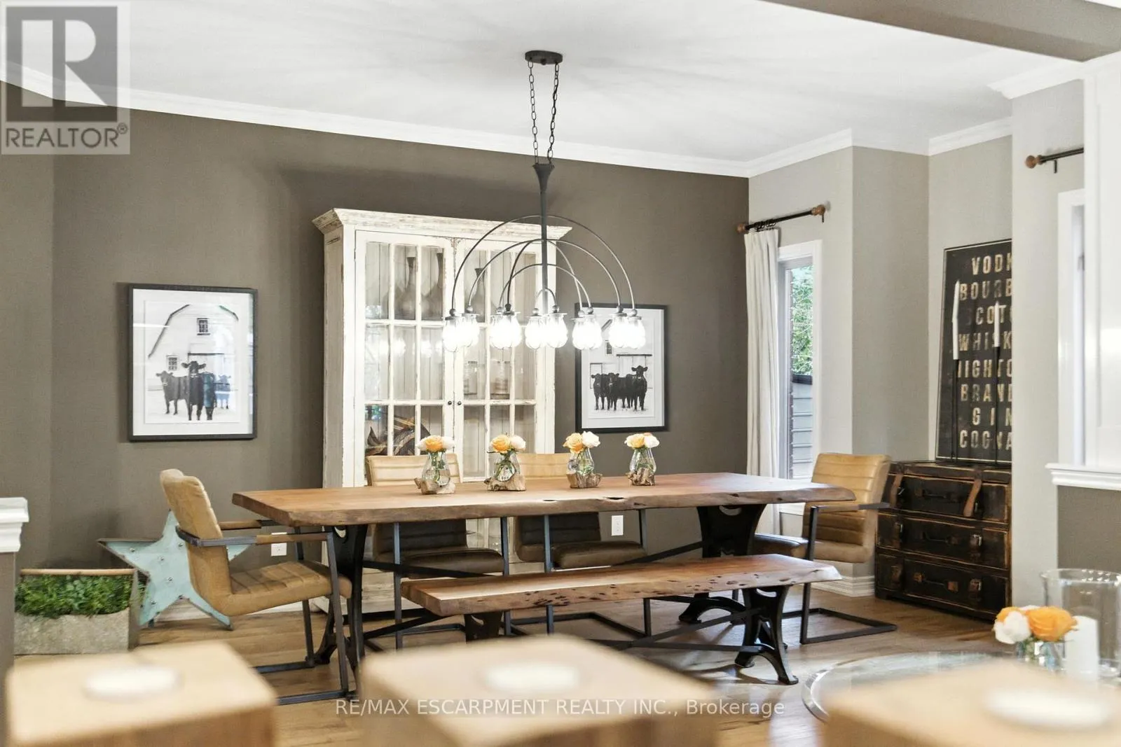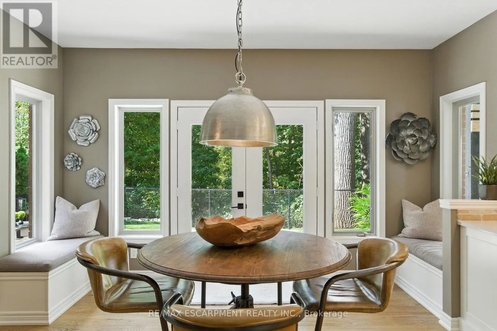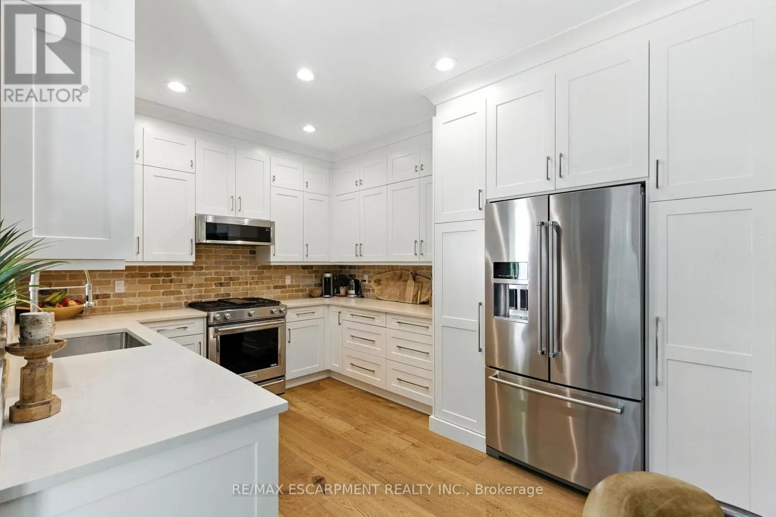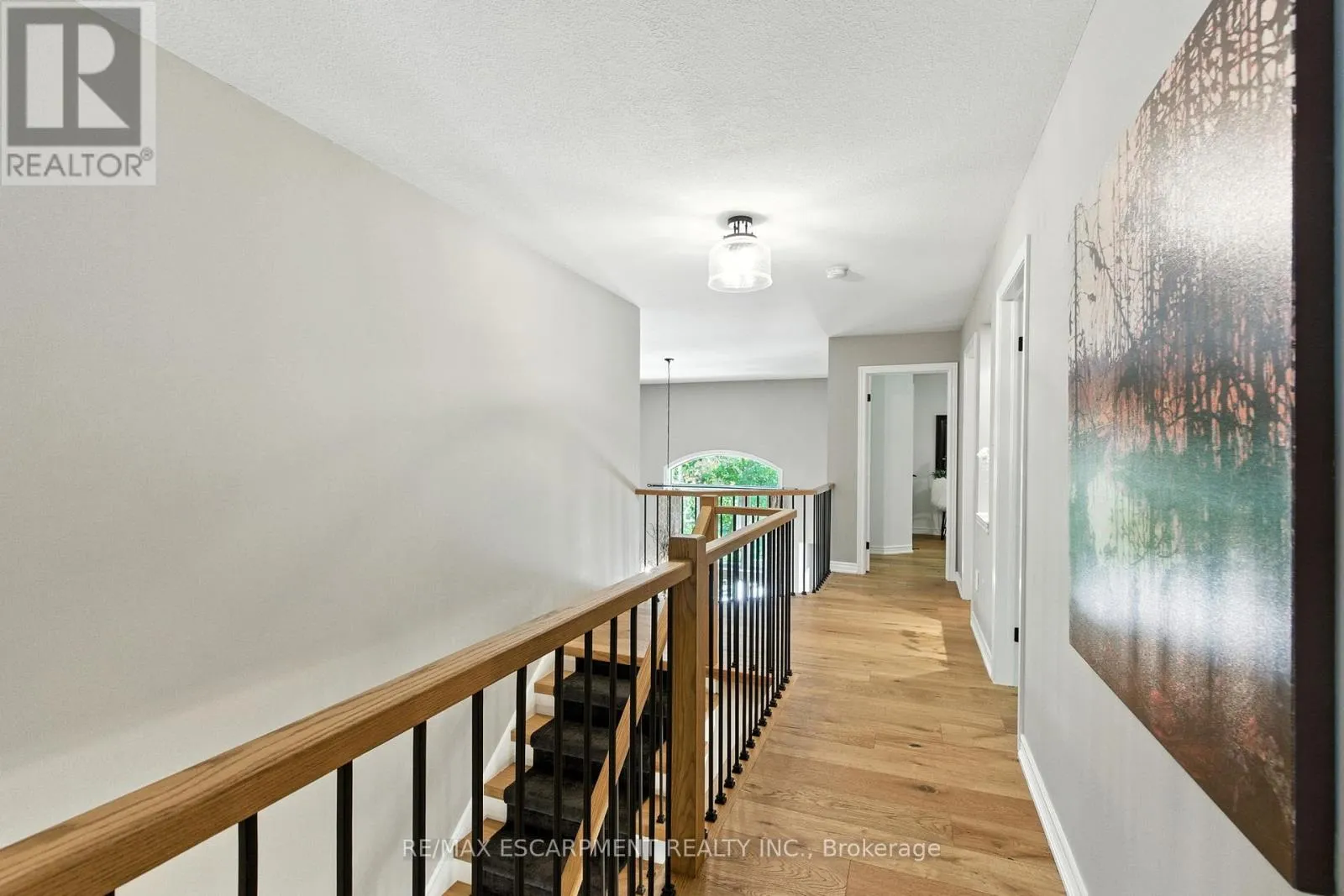 Cross Streets: -. ** Directions: PLAINS RD W TO UNSWORTH AVE TO SANDCHERRY DR. A rarity on Sandcherry! Tucked away in a desirable, tranquil subdivision, 587 Sandcherry Drive leaves a lasting impression from the very first glance. With beautiful gardens and mature trees and a quiet elegance, this home has a presence that feels both welcoming and peaceful. Step inside to find a residence that impresses across the nearly 2,900 square feet of above grade living. Engineered oak floors stretch across the main level, guiding you from one generous space to the next. The formal dining and living area offer grandeur, while the two-storey family room - anchored by a gas fireplace - feels like the perfect perch for gathering. And then there's the kitchen. Here, you'll find a kitchen that anticipates every want, with gorgeous white cabinetry, stainless steel appliances, casual dining area and a walk out to the backyard. Upstairs, the primary suite leans into quiet luxury with a soft brick feature wall, a fireplace for moody evenings, and a walk-in closet that feels more like a boutique than storage. The ensuite, flooded with natural light, offers a shower for two and an extended vanity - equal parts indulgent and practical. Two more bedrooms complete this level, one with direct access to the main bath. An additional 1,000 square feet of living space is found in the fully finished basement, where a quiet space has been designed for an at-home office, plus a family room and a powder room. But the real secret is the backyard. Private, enveloped by greenery and designed for lingering. One side offers a hot tub for restorative nights under the stars, while the other hosts a deck for long summer dinners. And beyond the fence? Direct access to the Royal Botanical Gardens nature, quite literally, in your own backyard. A home that balances elegance and ease. A retreat that feels both grounded and elevated. And yes, a rarity that wont be waiting long. RSA. (id:27476)