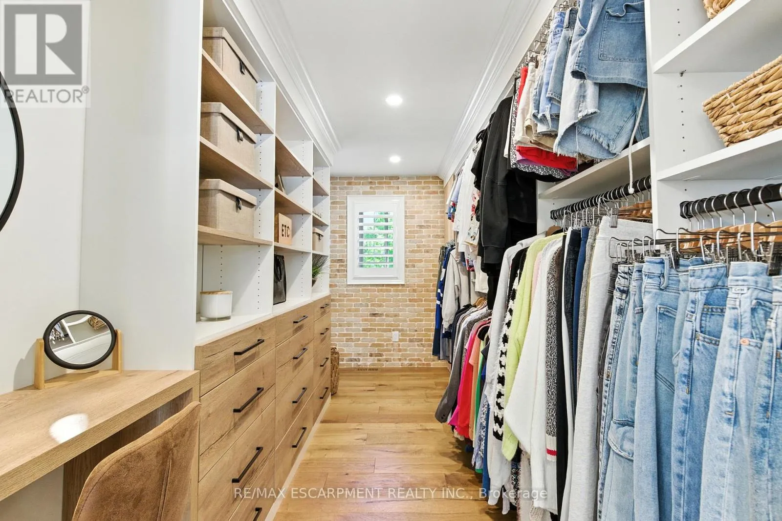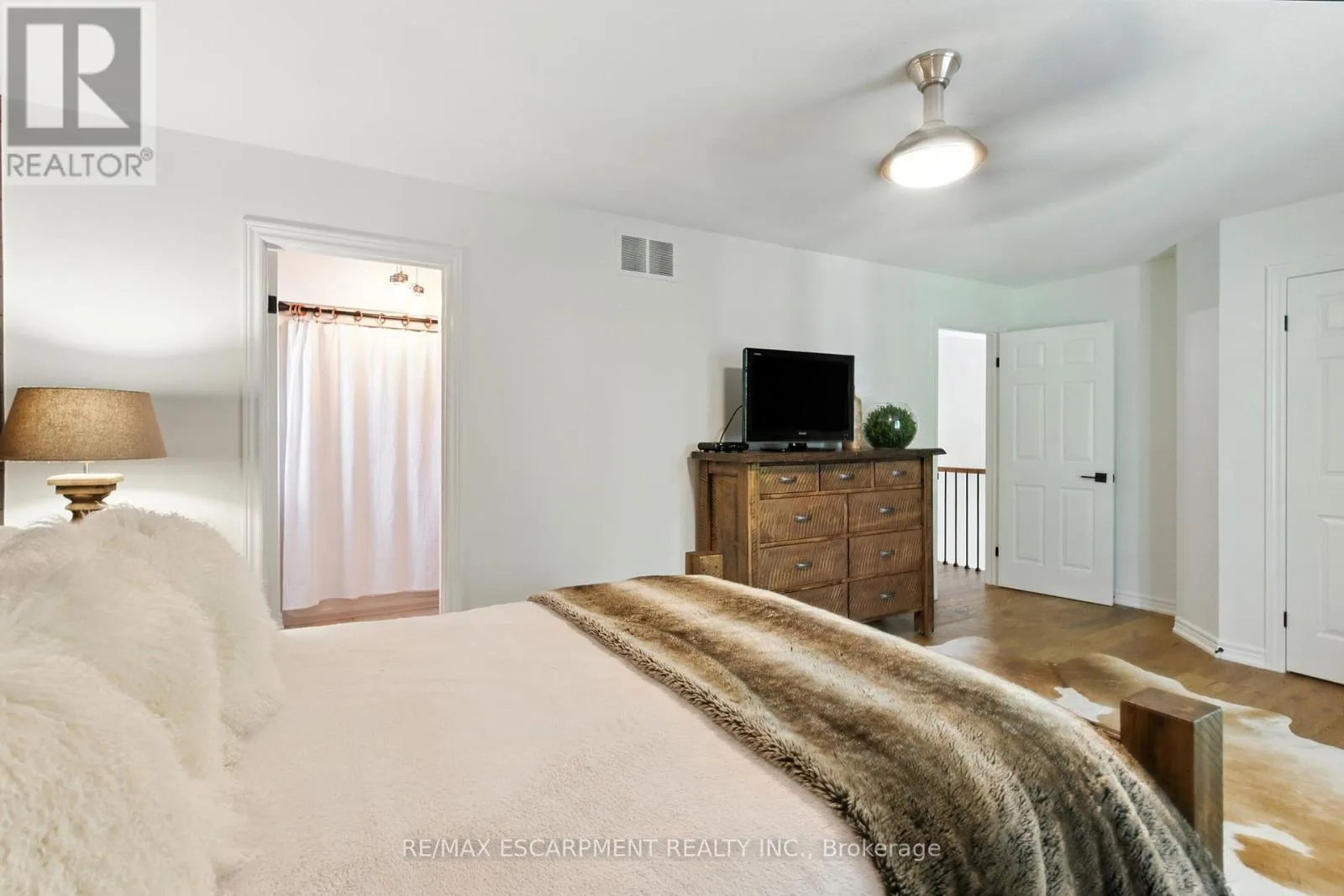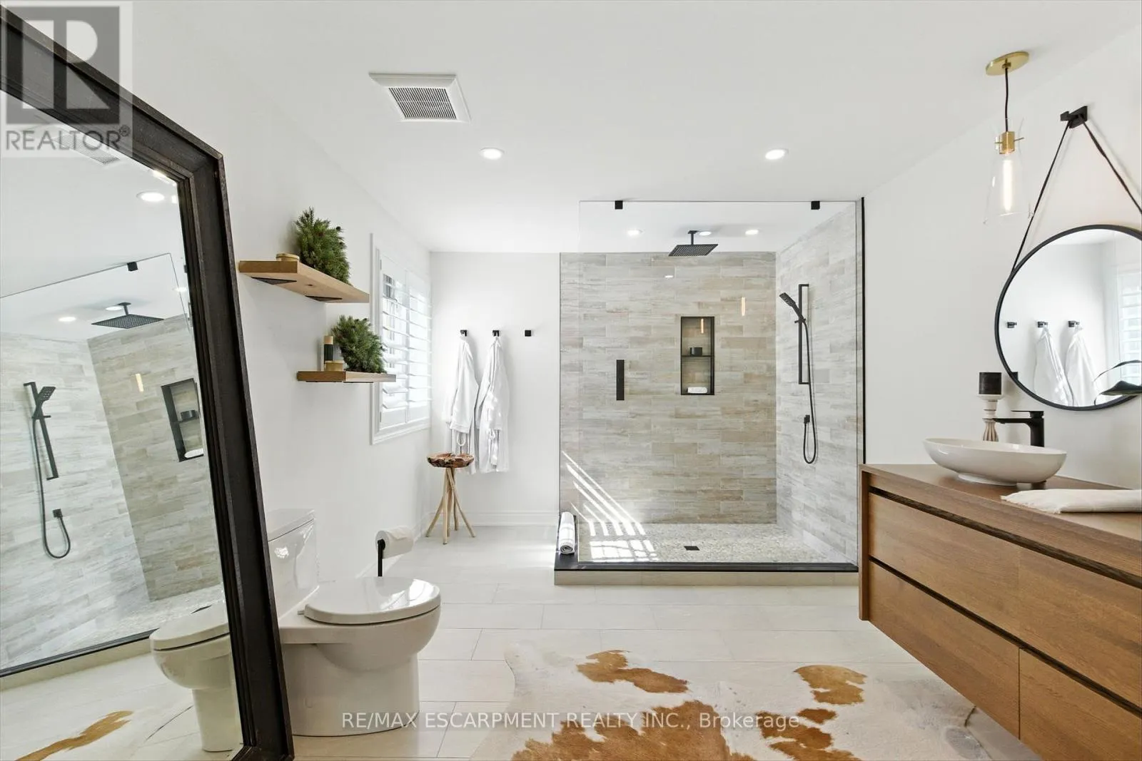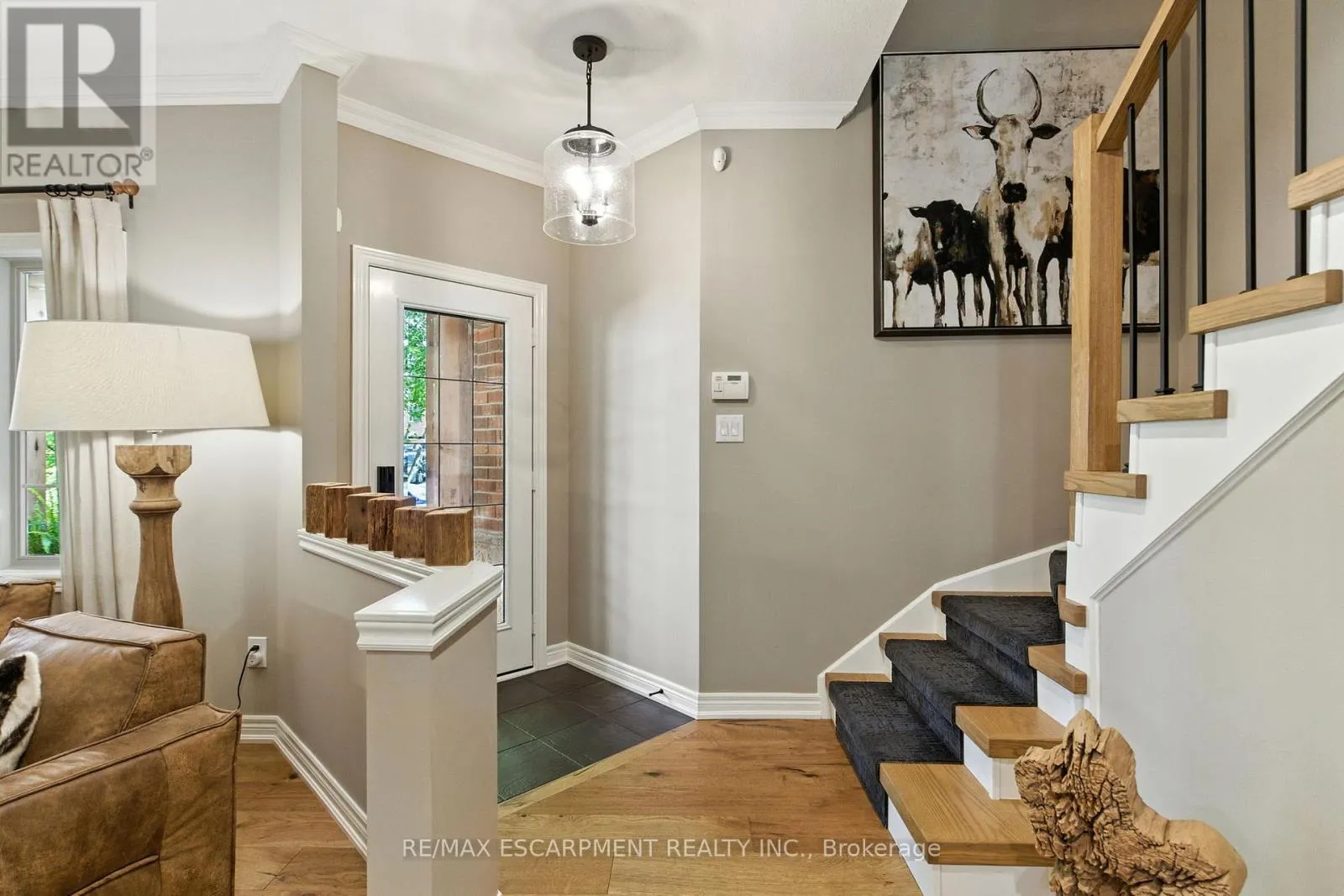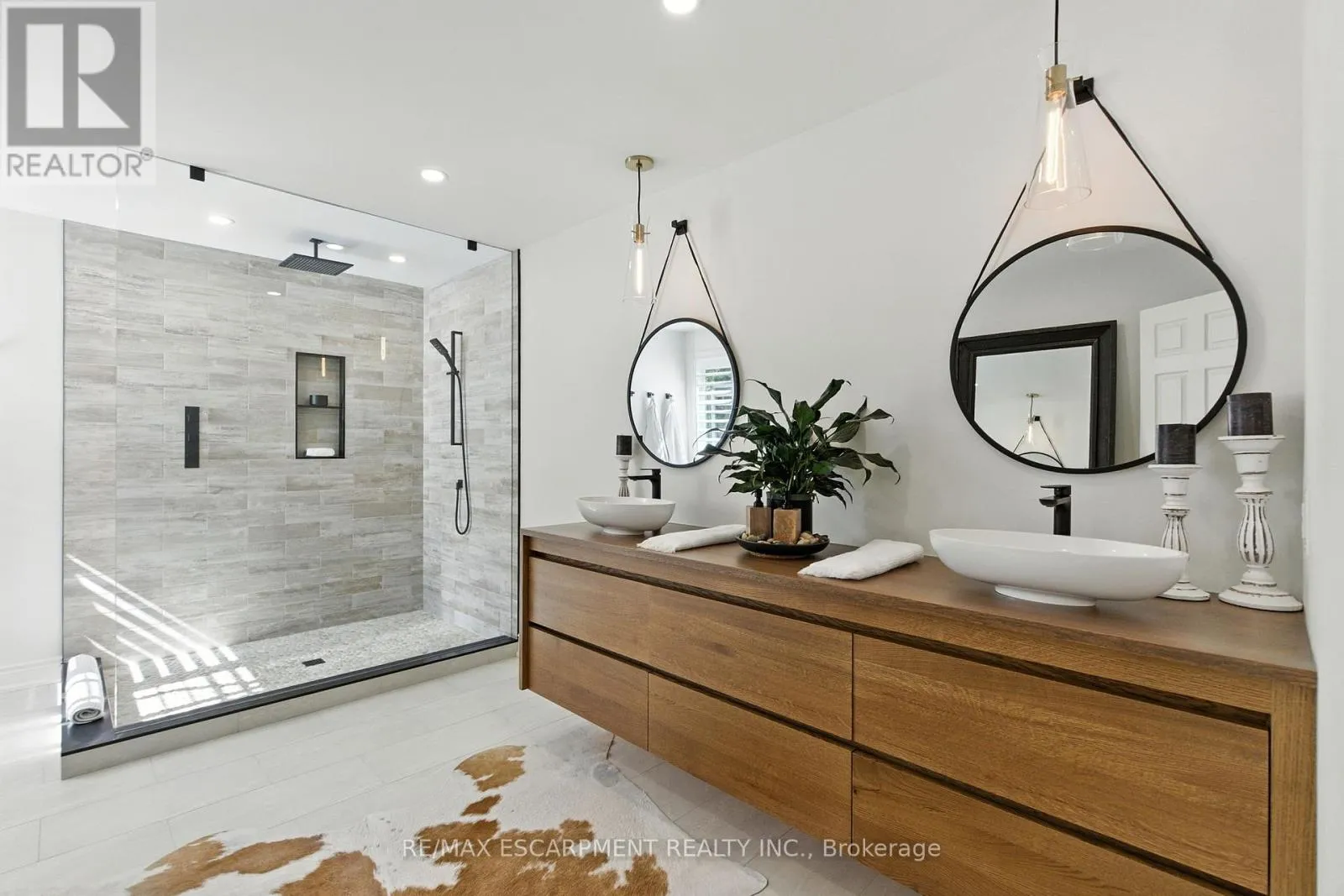 Cross Streets: -. ** Directions: PLAINS RD W TO UNSWORTH AVE TO SANDCHERRY DR. A rarity on Sandcherry! Tucked away in a desirable, tranquil subdivision, 587 Sandcherry Drive leaves a lasting impression from the very first glance. With beautiful gardens and mature trees and a quiet elegance, this home has a presence that feels both welcoming and peaceful. Step inside to find a residence that impresses across the nearly 2,900 square feet of above grade living. Engineered oak floors stretch across the main level, guiding you from one generous space to the next. The formal dining and living area offer grandeur, while the two-storey family room - anchored by a gas fireplace - feels like the perfect perch for gathering. And then there's the kitchen. Here, you'll find a kitchen that anticipates every want, with gorgeous white cabinetry, stainless steel appliances, casual dining area and a walk out to the backyard. Upstairs, the primary suite leans into quiet luxury with a soft brick feature wall, a fireplace for moody evenings, and a walk-in closet that feels more like a boutique than storage. The ensuite, flooded with natural light, offers a shower for two and an extended vanity - equal parts indulgent and practical. Two more bedrooms complete this level, one with direct access to the main bath. An additional 1,000 square feet of living space is found in the fully finished basement, where a quiet space has been designed for an at-home office, plus a family room and a powder room. But the real secret is the backyard. Private, enveloped by greenery and designed for lingering. One side offers a hot tub for restorative nights under the stars, while the other hosts a deck for long summer dinners. And beyond the fence? Direct access to the Royal Botanical Gardens nature, quite literally, in your own backyard. A home that balances elegance and ease. A retreat that feels both grounded and elevated. And yes, a rarity that wont be waiting long. RSA. (id:27476)