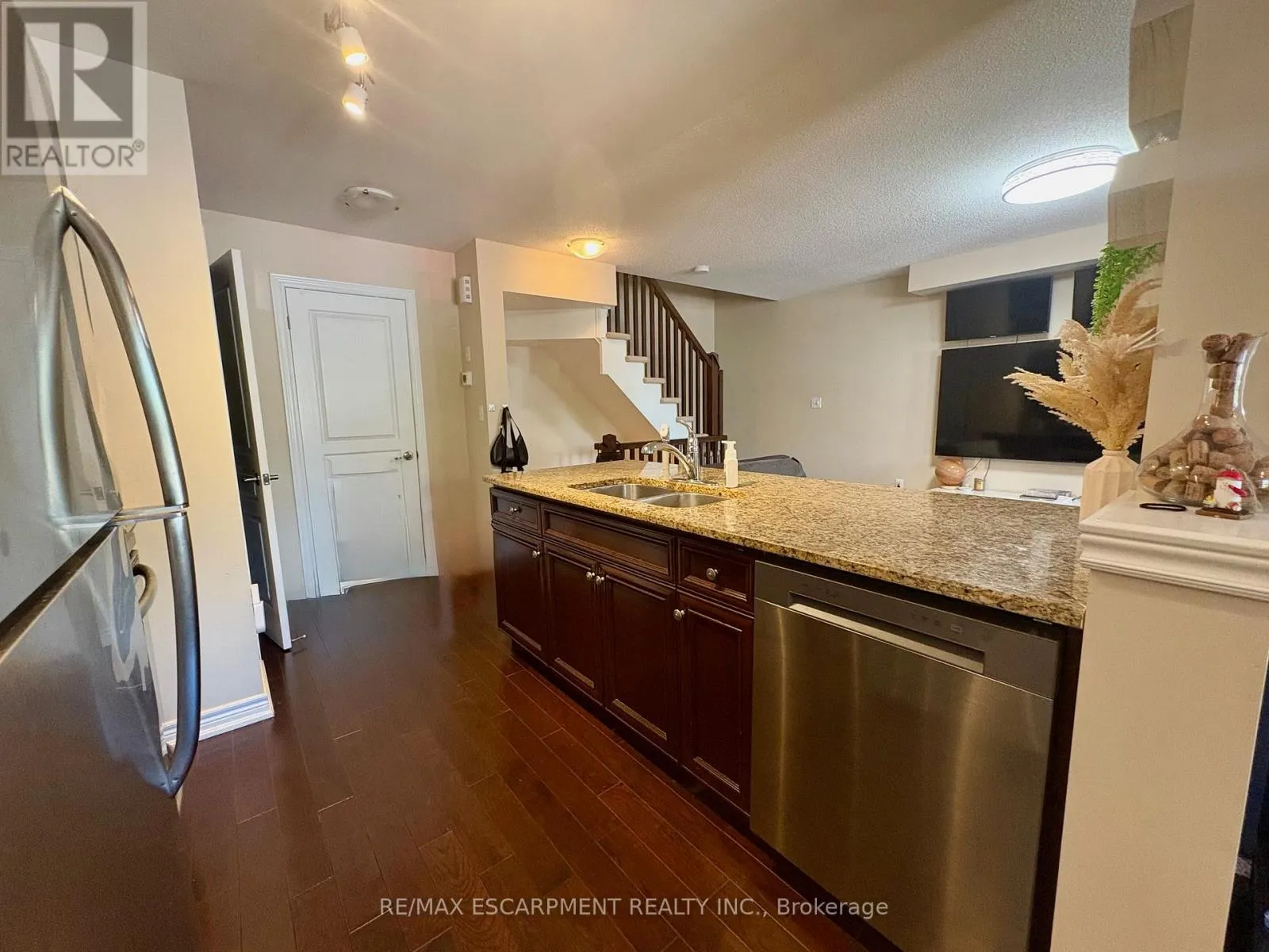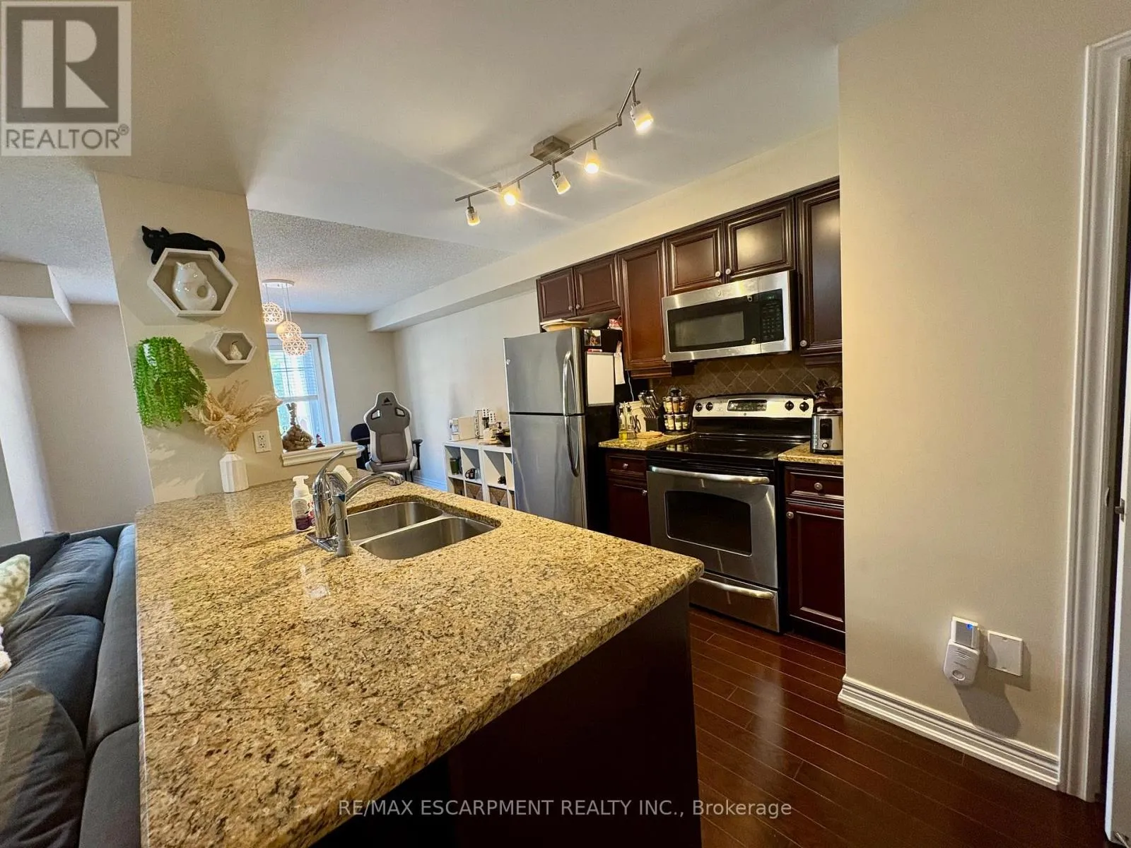 Cross Streets: Plains/Dovercourt. ** Directions: Plains Road East. Open concept 2 bedroom townhouse in desirable Aldershot featuring hardwood floors, Espresso kitchen with granite counters, tumble marble backsplash, breakfast bar and SS appliances. Spacious great room/dining with walkout o balcony. Ideal for barbequing. Bedroom level provides 2 bedrooms and Laundry. Excellent location within minutes to the Go Train, QEW/403, Burlington Golf & Country Club and Short Drive To Downtown Burlington. Minimum 1 year lease. Tenant to pay all utilities, No Pets, Non Smokers. A current Equifax Credit Report with Beacon Score, complete tenant application, current Letter of Employment and references. (id:27476)