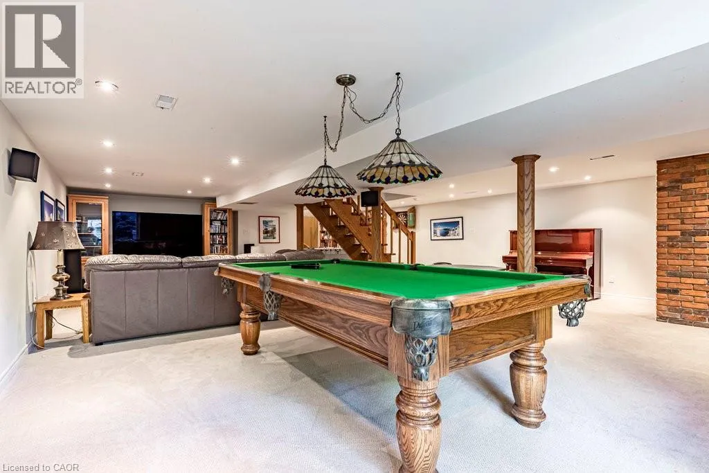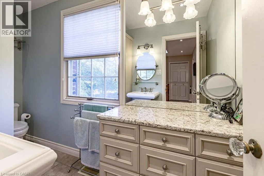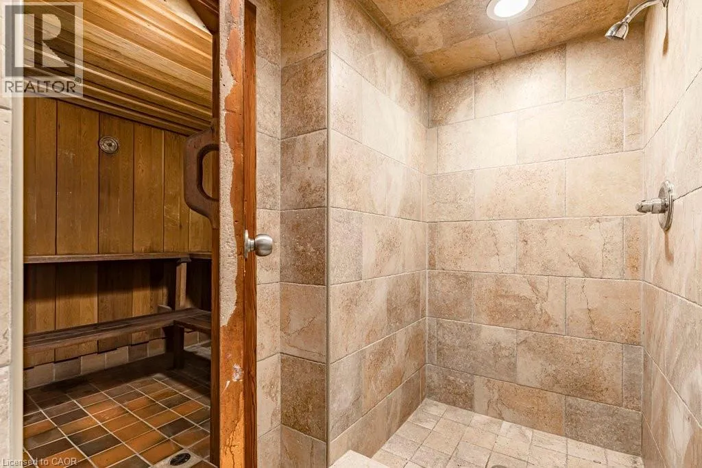 Shoreacres Rd/Lakeshore Rd Sprawling 3,873 sq.ft. family home on a 150' x 200' estate lot on one of Burlington's most sought-after streets! Located in Tuck School district and steps to the lake and Paletta Park! Custom kitchen with granite, stainless steel appliances (including gas cooktop), island, pot lighting and walk-out. Sunroom with vaulted ceiling, gas fireplace, heated floor and walk-out to a stunning professionally landscaped yard with inground salt water pool (heated). The private and tranquil backyard setting also features an oversized patio, hot tub, pool cabana/storage sheds, gas fire pit, two gas hookups and outdoor lighting. Main level family room with gas fireplace, main level office/den, main level mudroom and laundry and a separate dining room. Primary bedroom with walk-in closet and 4-piece ensuite with heated floor. The fully finished lower level has an additional 1,937 sq.ft. of living space and features a walk-out, rec room with gas fireplace, workshop, gym, 2-piece bathroom and sauna with separate shower. Additional luxury features include hardwood floors, crown moulding, wainscoting, skylights, central vac, covered front porch, outdoor wood burning fireplace and generator that powers the entire home! Detached double garage and driveway with parking for 6 cars. 5 bedrooms and 2 + 2 bathrooms. Luxury Certified. (id:27476)