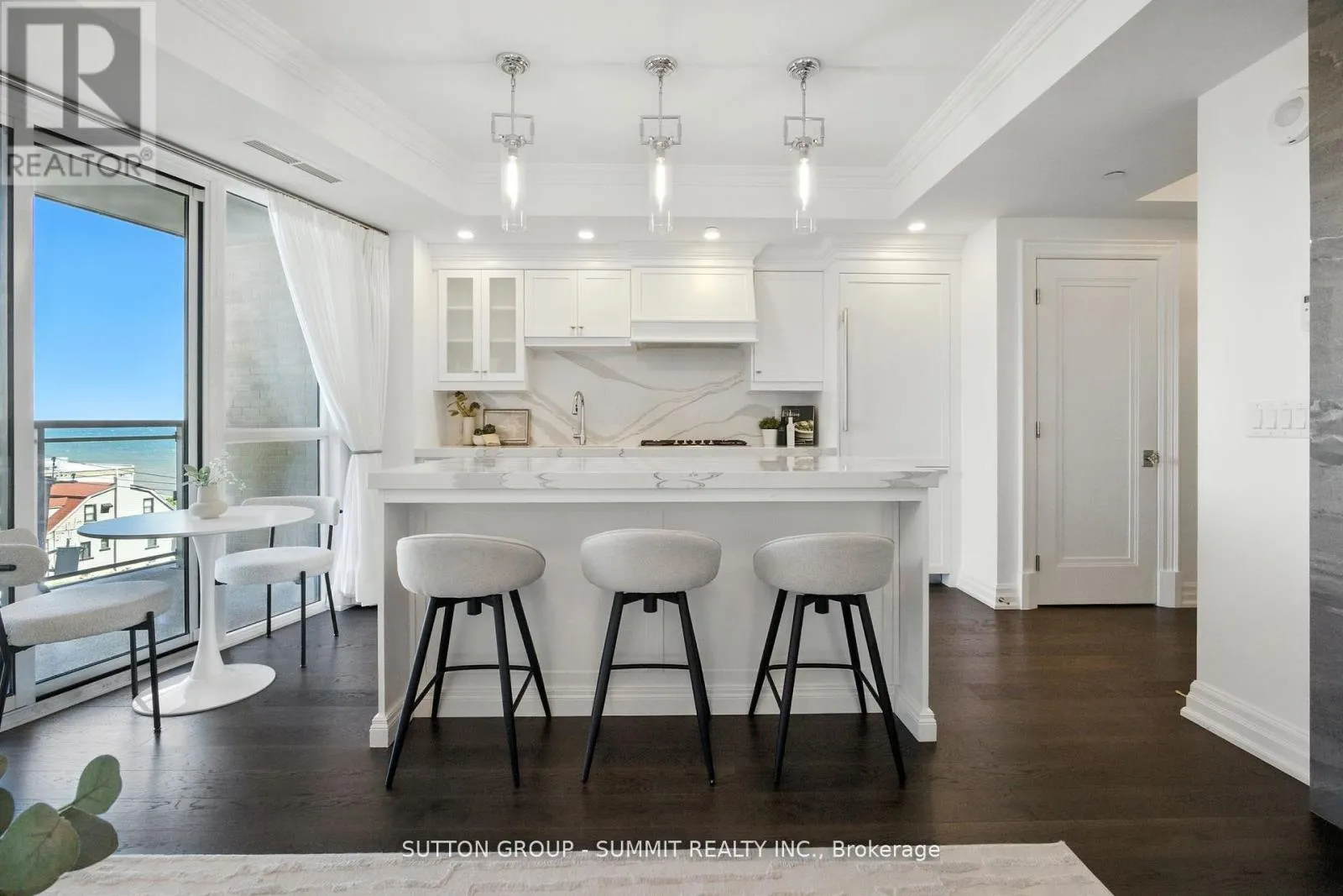 Lakeshore Rd / Brant ST Indulge in the pinnacle of luxury living at Burlingtons prestigious Bridgewater Residences.This exclusive property offers a world-class waterfront lifestyle with resort-inspired amenities, including an 8th-floor rooftop patio, state-of-the-art fitness centre, entertainment lounge, 24-hour concierge, indoor pool, spa, and access to the renowned 5-star restaurant at the neighbouring Pearl Hotel. This spectacular 2-bedroom corner suite is a masterpiece of design, showcasing breathtaking north/east views of Lake Ontario. The chef-inspired kitchen is a show piece, featuring high-end panelled appliances, a custom range hood, stone countertops and backsplash, a gas stove, and elegant pendant lighting. Every detail of this suite has been thoughtfully curated, from the crown moulding and designer lighting to the custom window treatments and a striking statement fireplace. The built-in wardrobes by Closet Envy add both style and functionality. The primary suite is a true retreat, boasting an oversized glass shower and a sophisticated vanity. No expense has been spared in customizing this home, with luxurious touches including crystal chandeliers, crystal door knobs, a custom built-in desk, and built-in shelving in every bedroom. Nestled in the heart of downtown Burlington, this residence offers unparalleled convenience. Step outside to enjoy Spencer Smith Park, an array of top-rated restaurants, charming cafes, and boutique shopping all just moments from your doorstep. Elevate your lifestyle at Bridgewater Residences, where luxury and location converge seamlessly. **EXTRAS** 2 Underground Parking Spaces P4 #30 & 31 Located Right Off The Elevator.1 Locker- Level D #131. (id:27476)