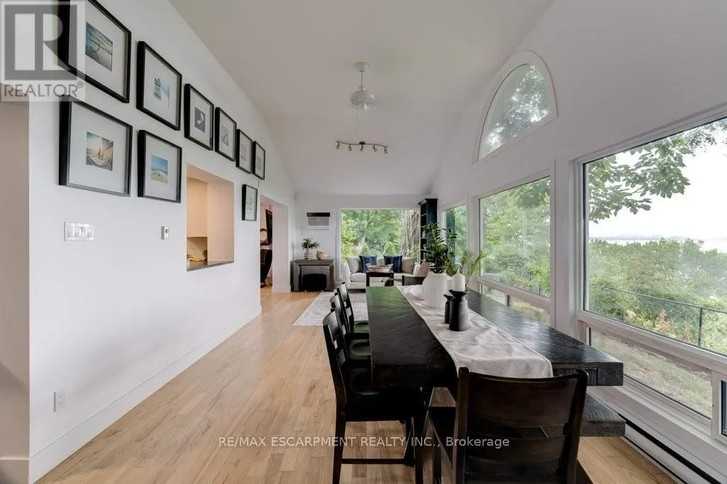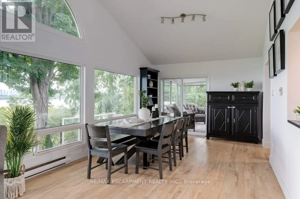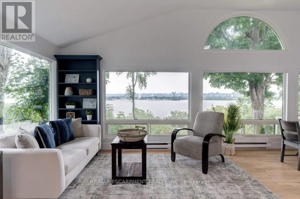 Plains Rd W, south on Bonnieview, to Bay Shore Blvd Welcome to this exceptional South Aldershot home, where modern luxury meets natural beauty. Perfectly positioned with floor-to-ceiling windows showcasing unobstructed, breathtaking views of the harbour, this residence offers a lifestyle like no other. The main floor features two spacious bedrooms and an extensively renovated kitchen designed for the culinary enthusiast, complete with high-end appliances, custom cabinetry and elegant finishes. The open-concept layout seamlessly blends indoor and outdoor living, filling the home with natural light and creating a serene atmosphere. With ample parking for multiple vehicles, this property is as functional as it is beautiful. Nature lovers will appreciate being just steps away from the Royal Botanical Gardens, scenic trails and conservation areas, making it the ideal retreat for hikers and outdoor enthusiasts. This South Aldershot gem offers sophistication, comfort and a connection to nature - all in one unmatched location. RSA. Luxury Certified. (id:27476)