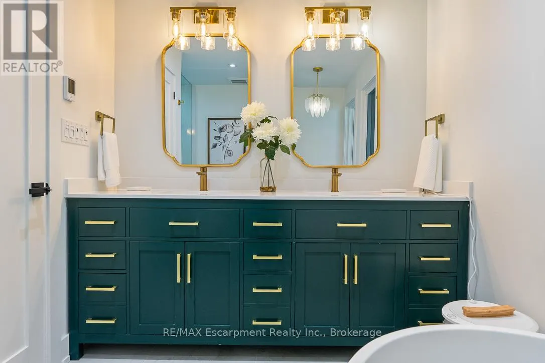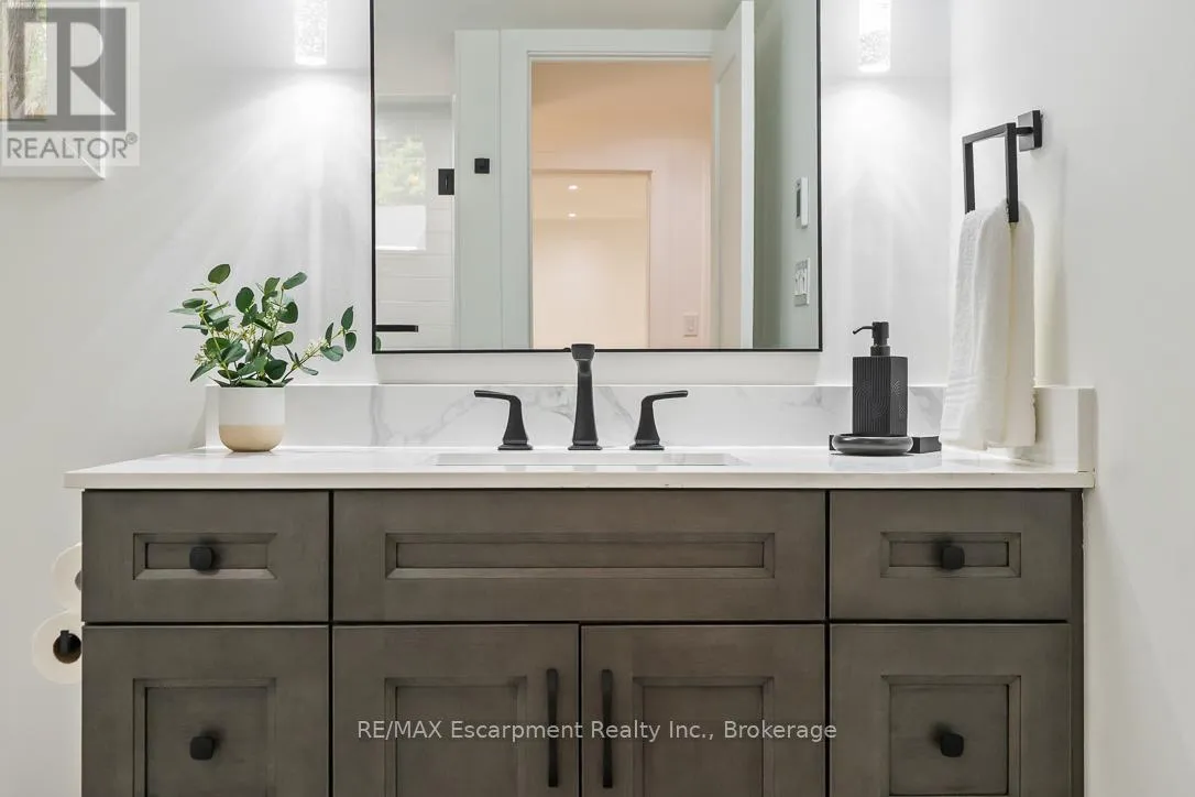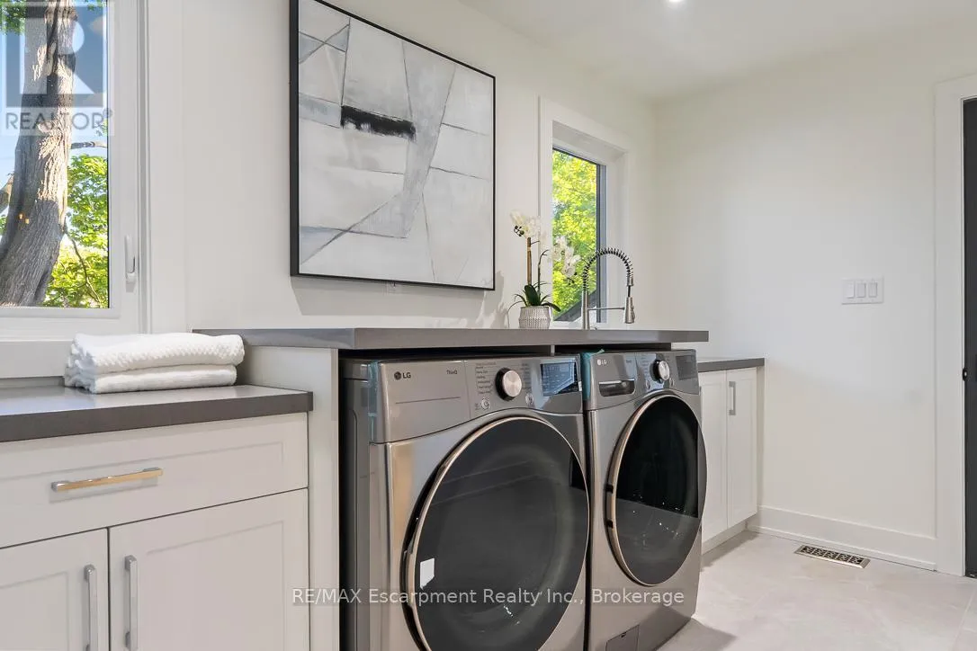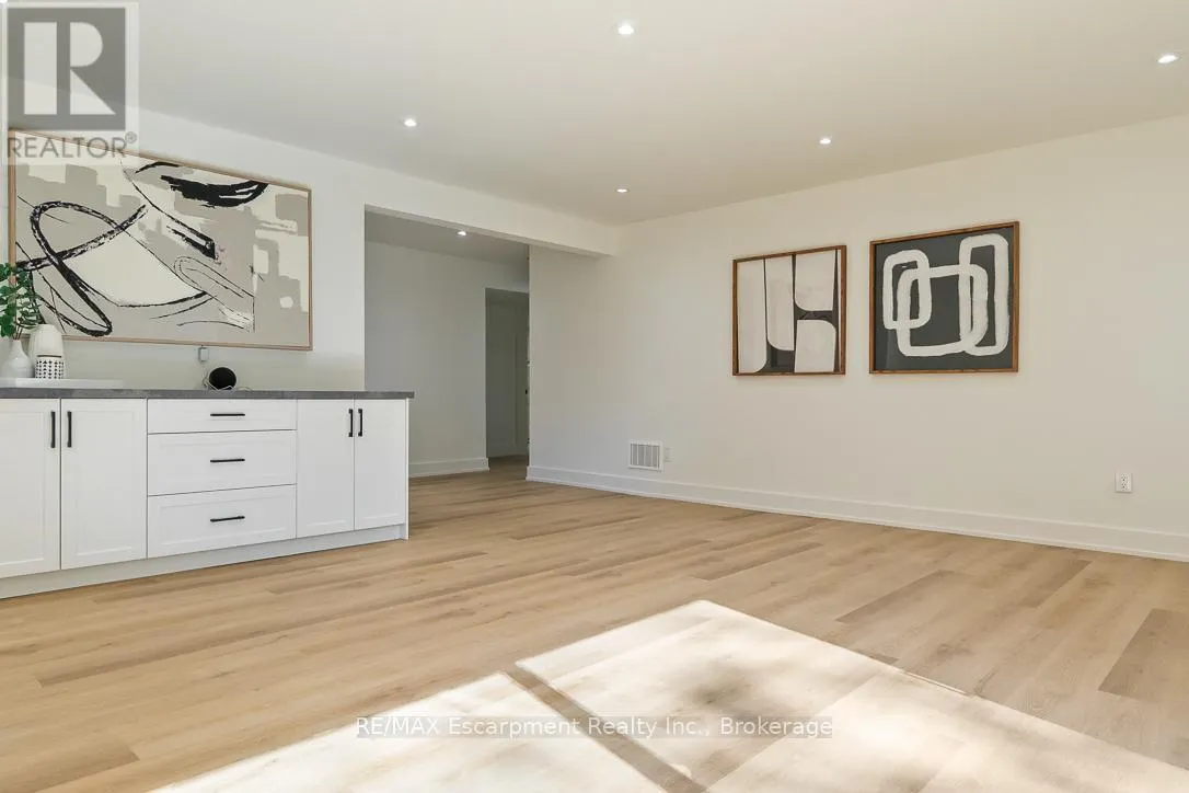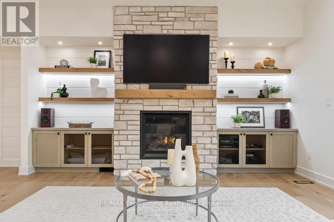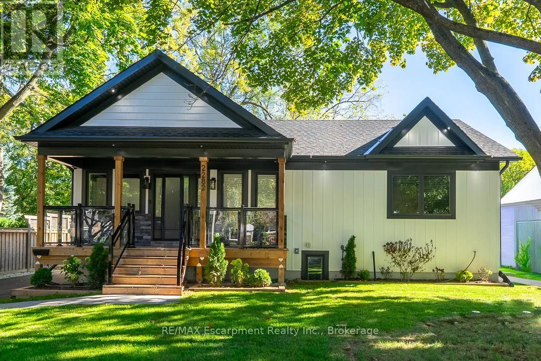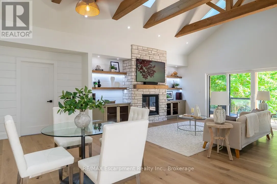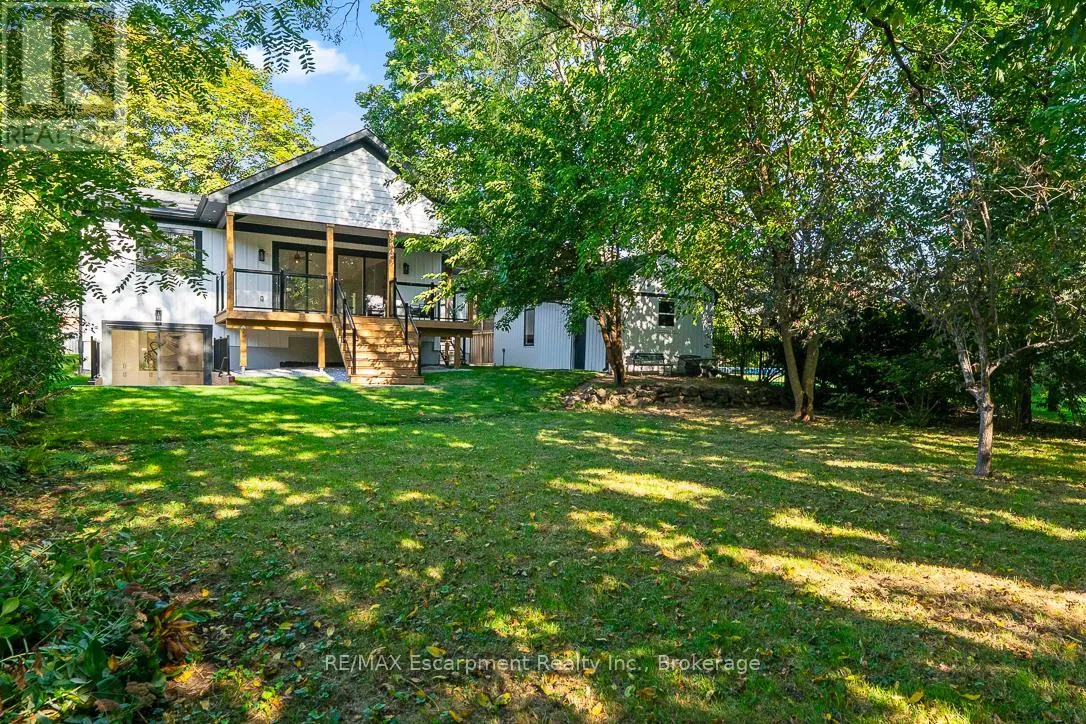 Cross Streets: New St and Guelph Line. ** Directions: New St, south on Stinson, east on Fairleigh. Stunning Brand-New Rebuild in Downtown Burlington. Originally built in 1952,Tucked away on a quiet cul-de-sac, this raised bungalow offers refined living at its best. Perfectly situated backing onto the picturesque Waterfront Trail, its just a short stroll to downtown Burlington, with its charming shops, restaurants, and the sparkling shores of Lake Ontario. Never been lived in, this home is ideal for downsizers or professionals seeking a luxurious, low-maintenance lifestyle where style and comfort abound. Step inside to discover a magnificent open-concept design, featuring engineered hardwood floors, pot lights, and integrated speakers throughout. The great room captivates with its cathedral, beam accented ceiling, skylights, and a stone-framed gas fireplace flanked by illuminated custom shelving and cabinetry. Sliding doors create a seamless transition to the covered porch, wired for sound and complete with glass railings overlooking a private backyard oasis. The professionally designed kitchen is a showpiece featuring Bosch appliances, sleek finishes, and a large island perfect for entertaining. Just off the great room, the main floor laundry is bright and functional, with ample cabinetry, heated floors, and direct access to the garage and backyard. The primary suite offers a serene retreat with a vaulted ceiling, numerous custom built-ins, and a spa-like ensuite boasting a soaker tub and heated floors. The lower level is equally impressive, with a spacious, light-filled family room featuring a walkout to the garden and custom built-ins for extra storage. Three generous bedrooms, each large enough for a king bed, share a beautiful 3-piece bath again with heated floors. Even the mechanical room has been finished with large-format tile for a polished touch. Outside, a detached garage comes EV charger ready, completing this exceptional offering. Every detail has been thoughtfully designed and flawlessly executed. This one-of-a-kind property is truly not to be missed (id:27476)