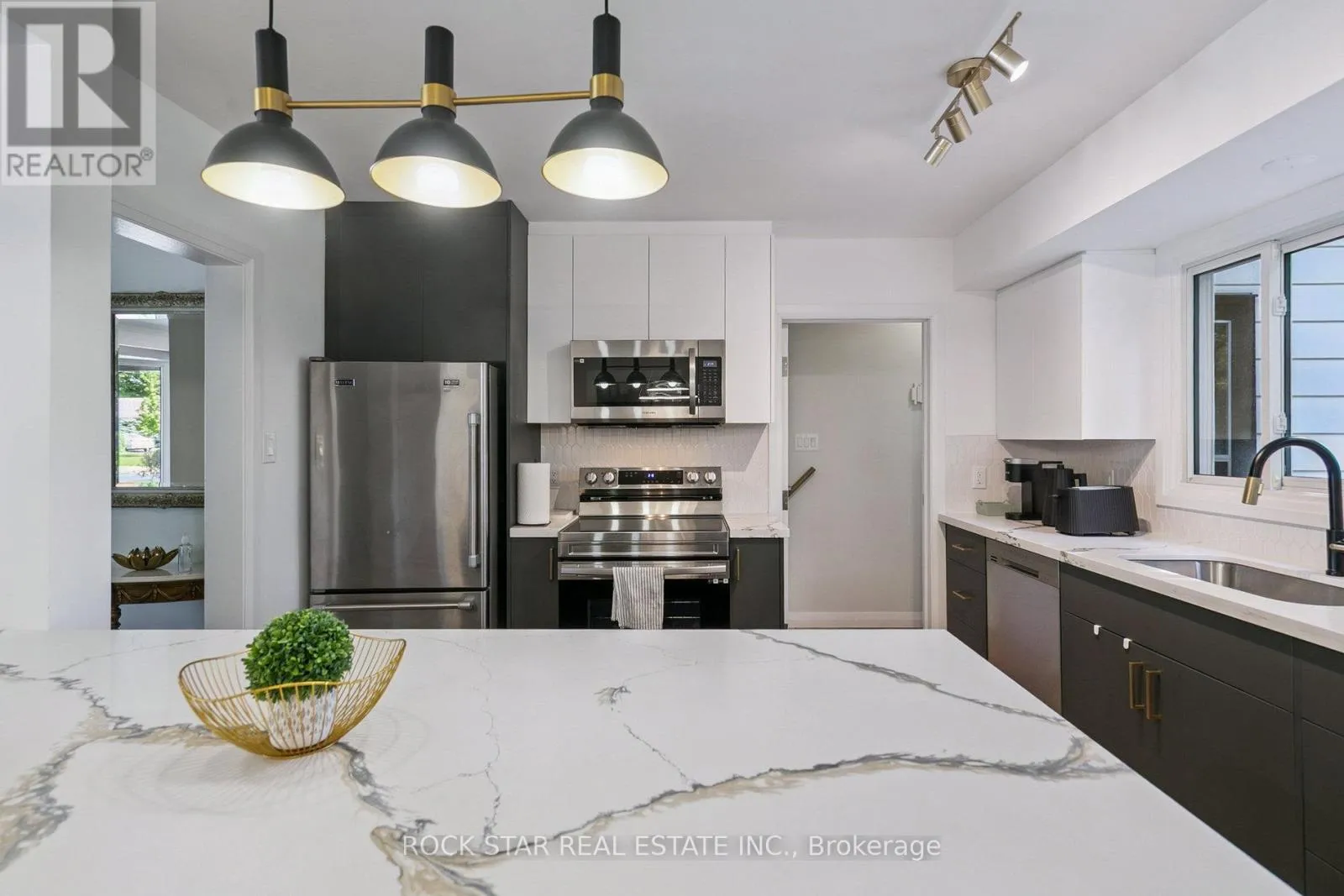 Cross Streets: Appleby Line / New St. ** Directions: North, Pinedale Ave to Bridle Wood. Welcome to this beautifully updated bungalow in Burlington's sought-after Appleby community a home that effortlessly combines modern comfort, versatility, and style. A fully finished in-law suite with a separate entrance, complete with its own kitchen, bathroom, laundry, and living area offering the perfect setup for multi-generational living, guests, or potential rental income! Upstairs, you'll find a bright and functional layout with three spacious bedrooms, an elegant bathroom, and a stunning new kitchen featuring quartz countertops, modern appliances, and luxury finishes. Both levels are thoughtfully designed for comfort and convenience, each with their own brand-new kitchens and laundry facilities. Recent updates include new windows, roof (2018), furnace and A/C (owned, 2019), smart thermostat, digital lock, Bluetooth bath fan with LED light, security cameras, and a solar attic fan. The private backyard offers a peaceful retreat ideal for entertaining or relaxation. Located minutes from Appleby GO Station, schools, parks, Joseph Brant Hospital, waterfront trails, and major shopping and dining, this home delivers the perfect balance of modern upgrades, flexible living, and unbeatable location. A rare opportunity a truly move-in-ready home with a complete in-law suite that redefines the meaning of home. (id:27476)
