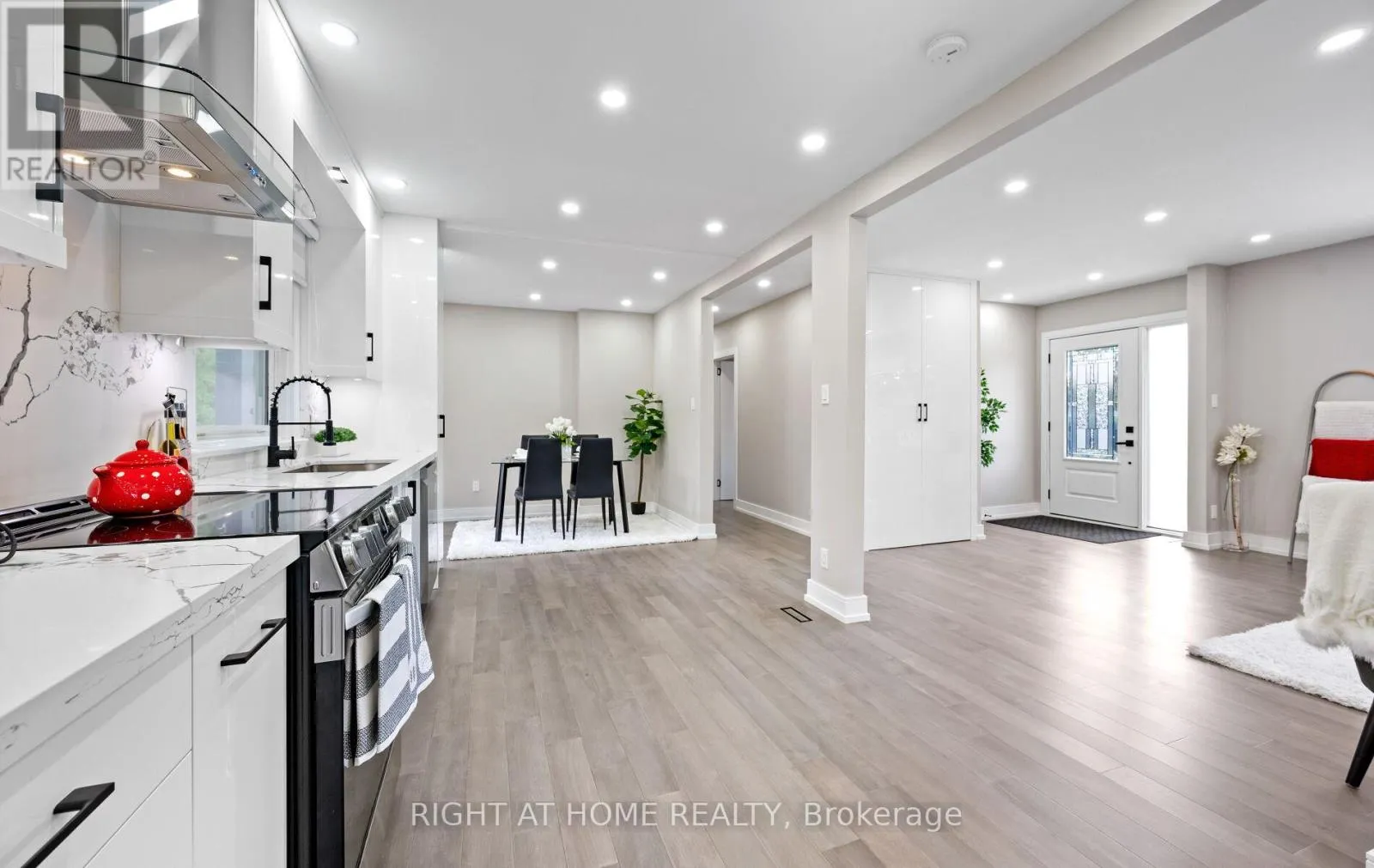 Cross Streets: Brant st & Mt forest dr. ** Directions: Brant & MT forest. Step inside to an inviting open-concept layout featuring rich hardwood floors and a cozy electric fireplace. The modern kitchen boasts quartz countertops, stainless steel appliances, custom cabinetry, and a dining area with walkout to the backyard, ideal for gatherings. Three spacious bedrooms offer custom-built closets, while the 3-piece bathroom includes a stand-up shower and convenient laundry closet.The finished basement offers excellent in-law or income potential, featuring laminate flooring, a bright recreation area, open-concept living, and a spacious bedroom with a custom-built closet. A second kitchen with quartz countertops, custom cabinetry, a 4-piece bathroom, and an additional laundry closet make this lower level completely self-sufficient.Enjoy incredible curb appeal with new stucco all around, a new concrete driveway with space for up to 8 vehicles, and a newly fenced backyard with fresh sod. The concrete patio and two storage sheds provide both comfort and convenience, while the large corner lot ensures privacy and plenty of outdoor space.Located in a highly desirable neighborhood close to top-rated schools, parks, shopping centers, and public transit, this home offers both peace and accessibility. Easy access to major highways makes commuting effortless, while nearby restaurants, community centers, and walking trails add to the vibrant local lifestyle. Whether youre raising a family or seeking a high-demand rental property, this area delivers exceptional value and convenience. (id:27476)