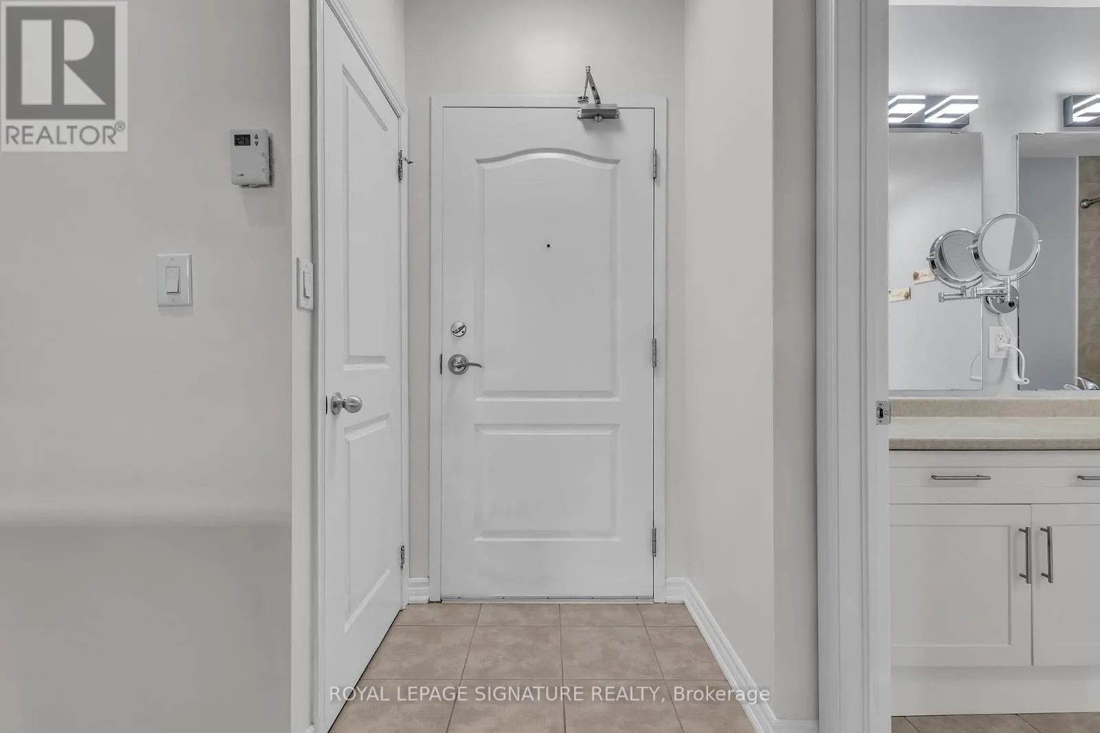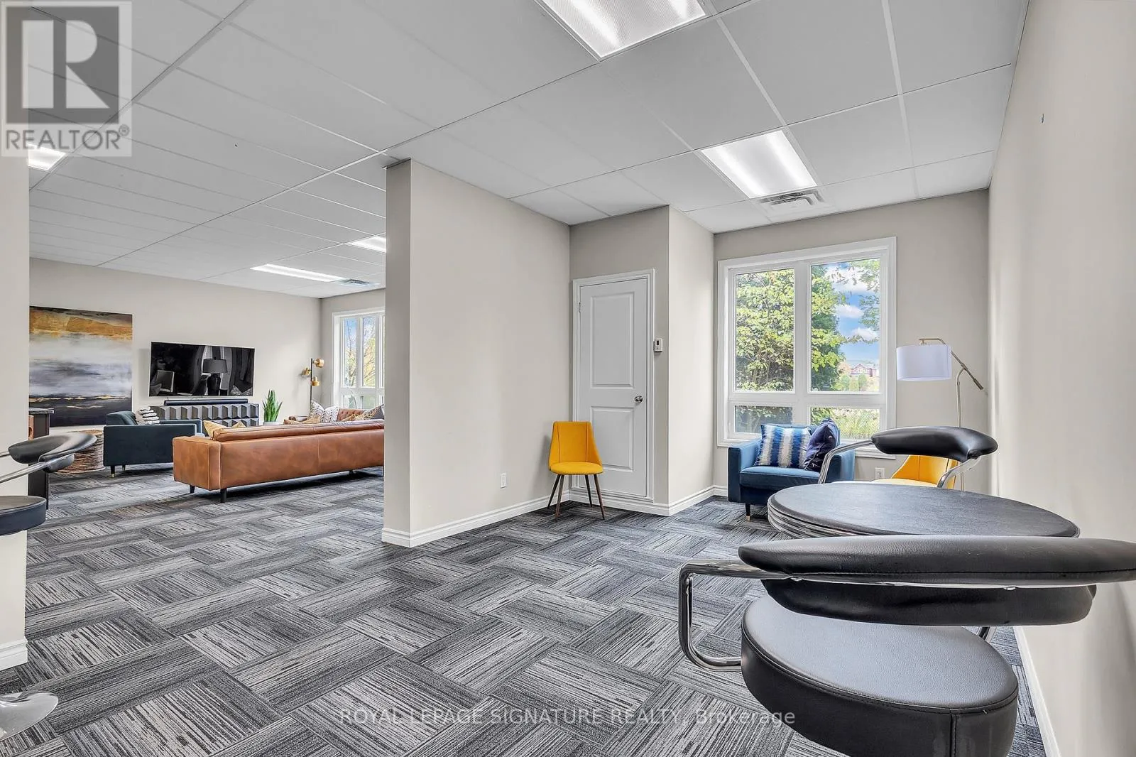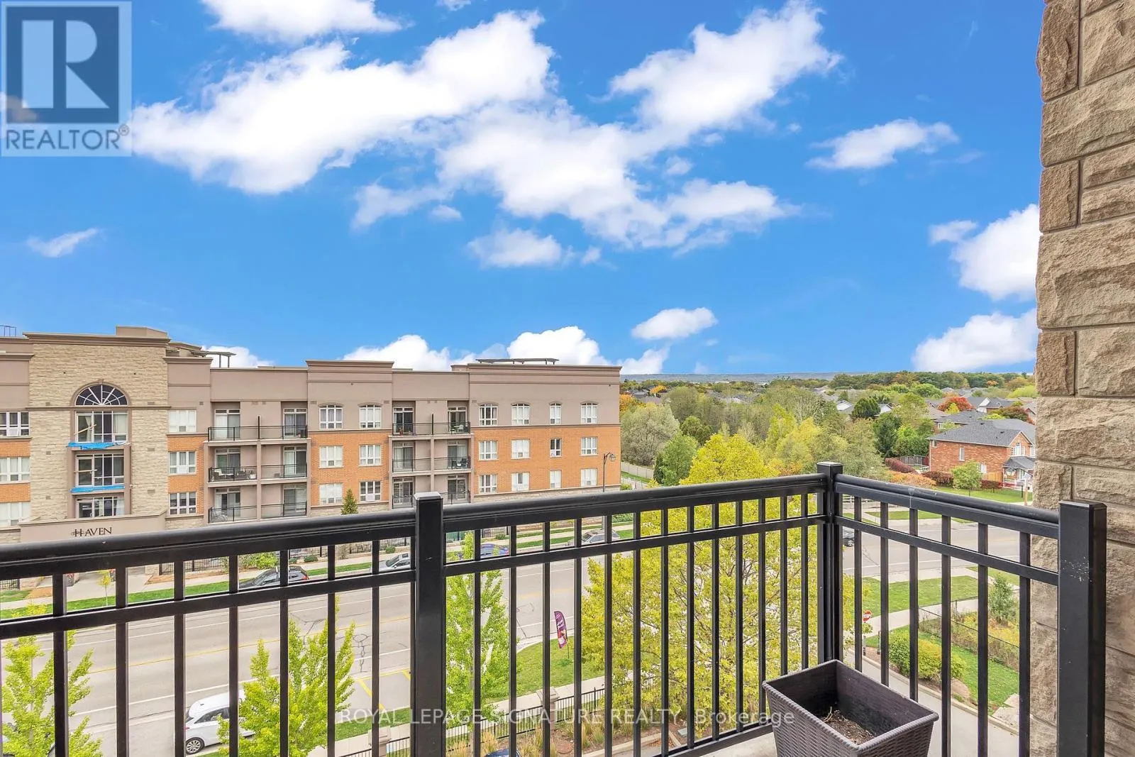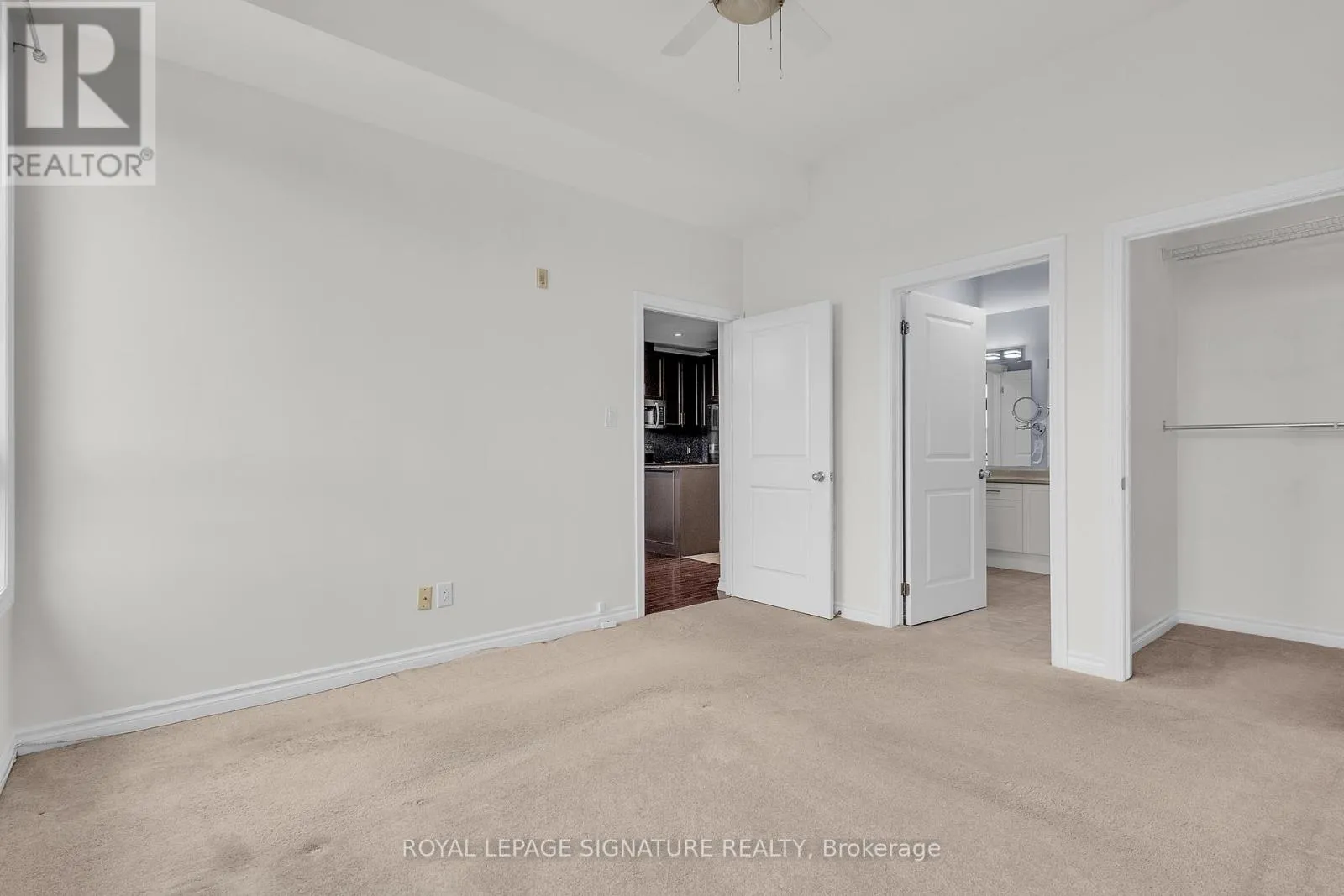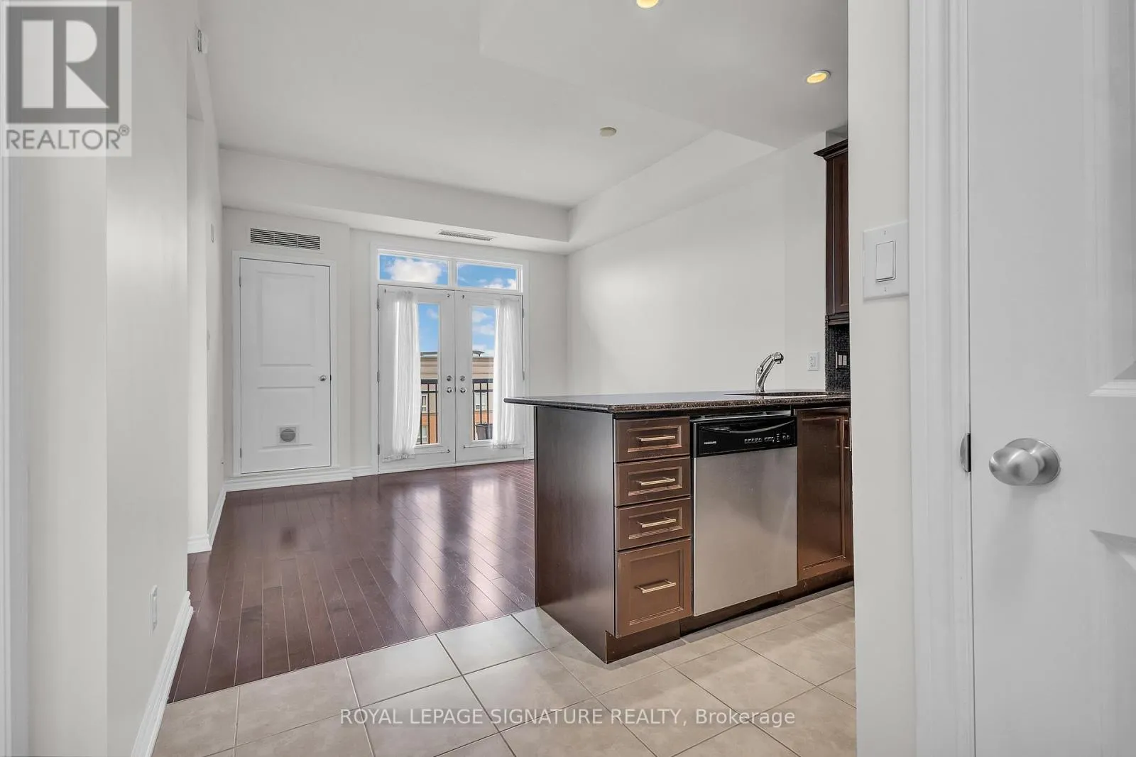 Sutton & Upper Middle Welcome to this stunning top-floor 1-bedroom, 1-bathroom condo in the highly sought-after Orchard community's Times Square Condos, offering 619 square feet of thoughtfully designed living space with soaring 10-foot ceilings. The bright, open-concept main living area features beautiful hardwood flooring and seamless flow between living, kitchen, and dining spaces. Directly off the living room, French doors with upgraded pet-friendly mesh screening lead to your spacious 44-square-foot balcony. The gorgeous kitchen showcases extended-height dark wood cabinetry, sleek granite countertops, ceramic tile flooring, stainless steel appliances, including a new bottom-freezer fridge, potlights, and a double sink with a sprayer feature. The generously sized bedroom features plush carpet, a large walk-in closet with custom shelving, a ceiling fan with light, and direct access to your spacious ensuite bathroom with ceramic tiles, upgraded lighting, a luxurious dual-head shower system, and a convenient full-size front-load washer and dryer. This unit includes prime parking in P1 beside the elevator, plus a large storage locker. Located minutes from the QEW, top-rated schools, shopping, and Bronte Creek Provincial Park. Don't miss this opportunity book your private showing today! (id:27476)