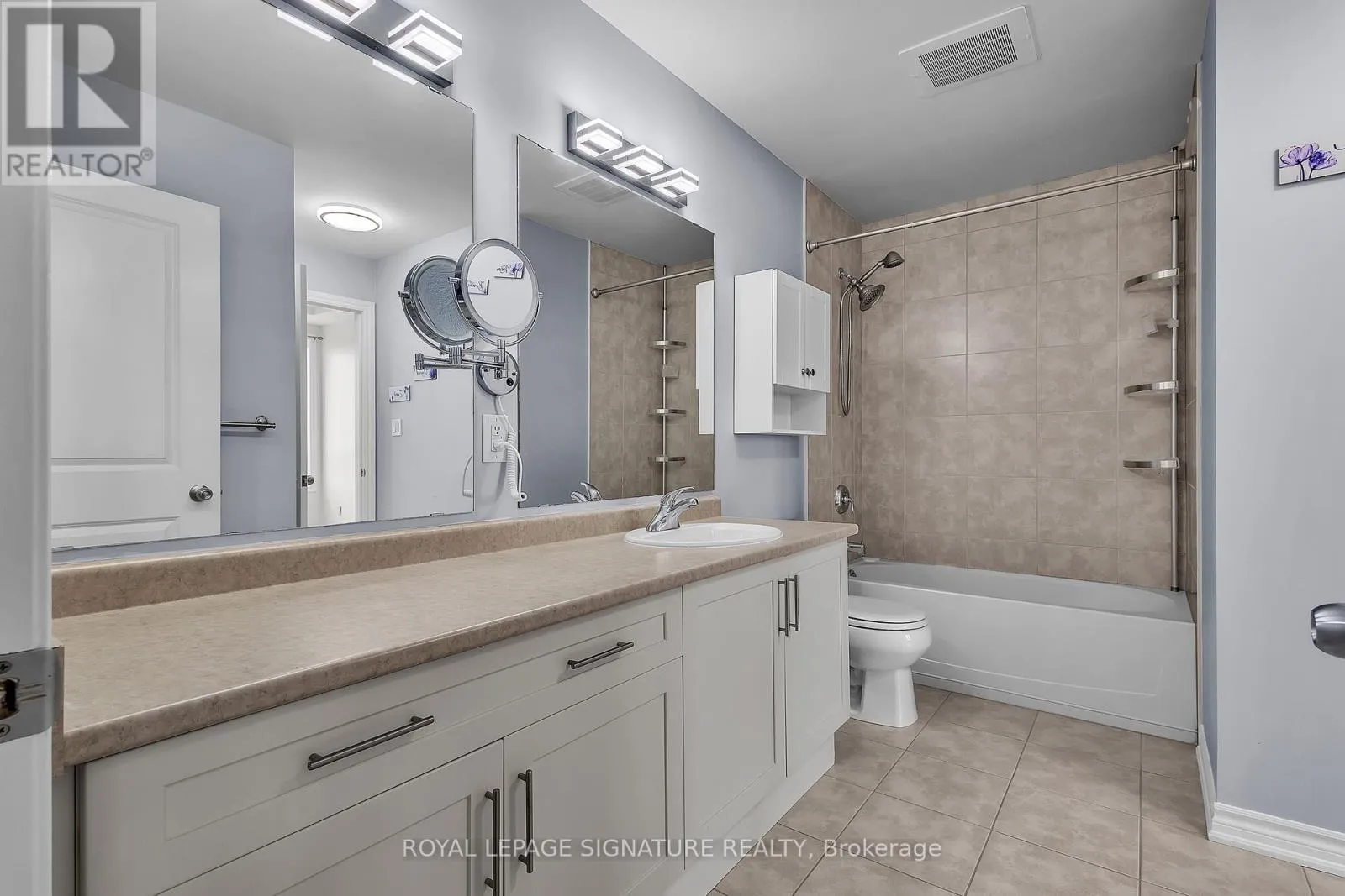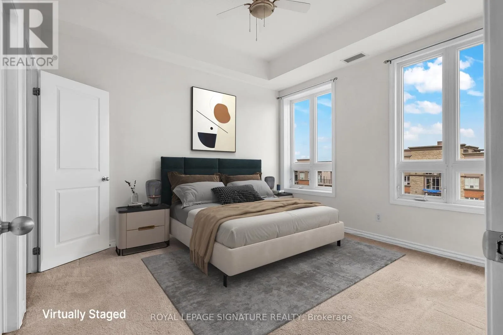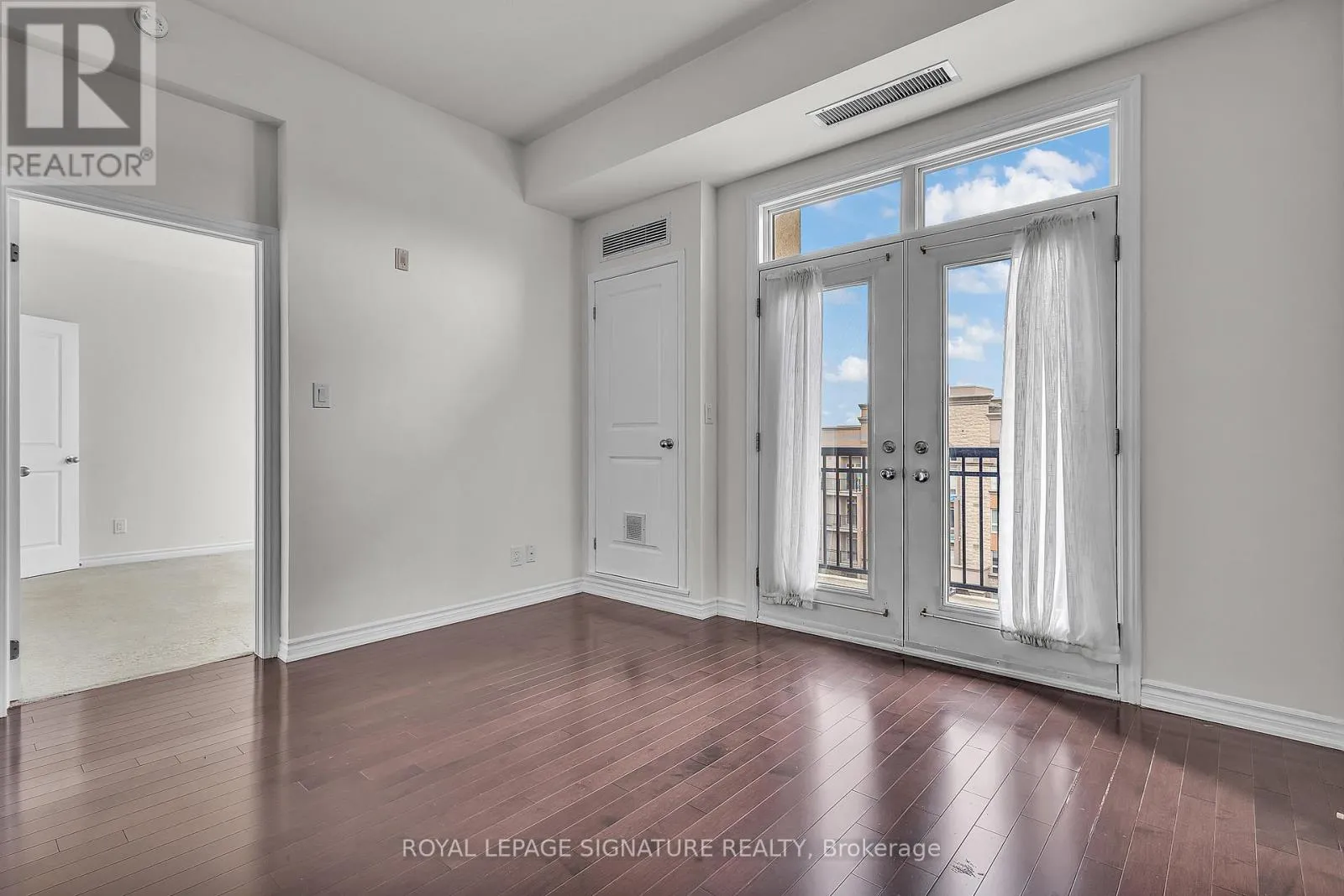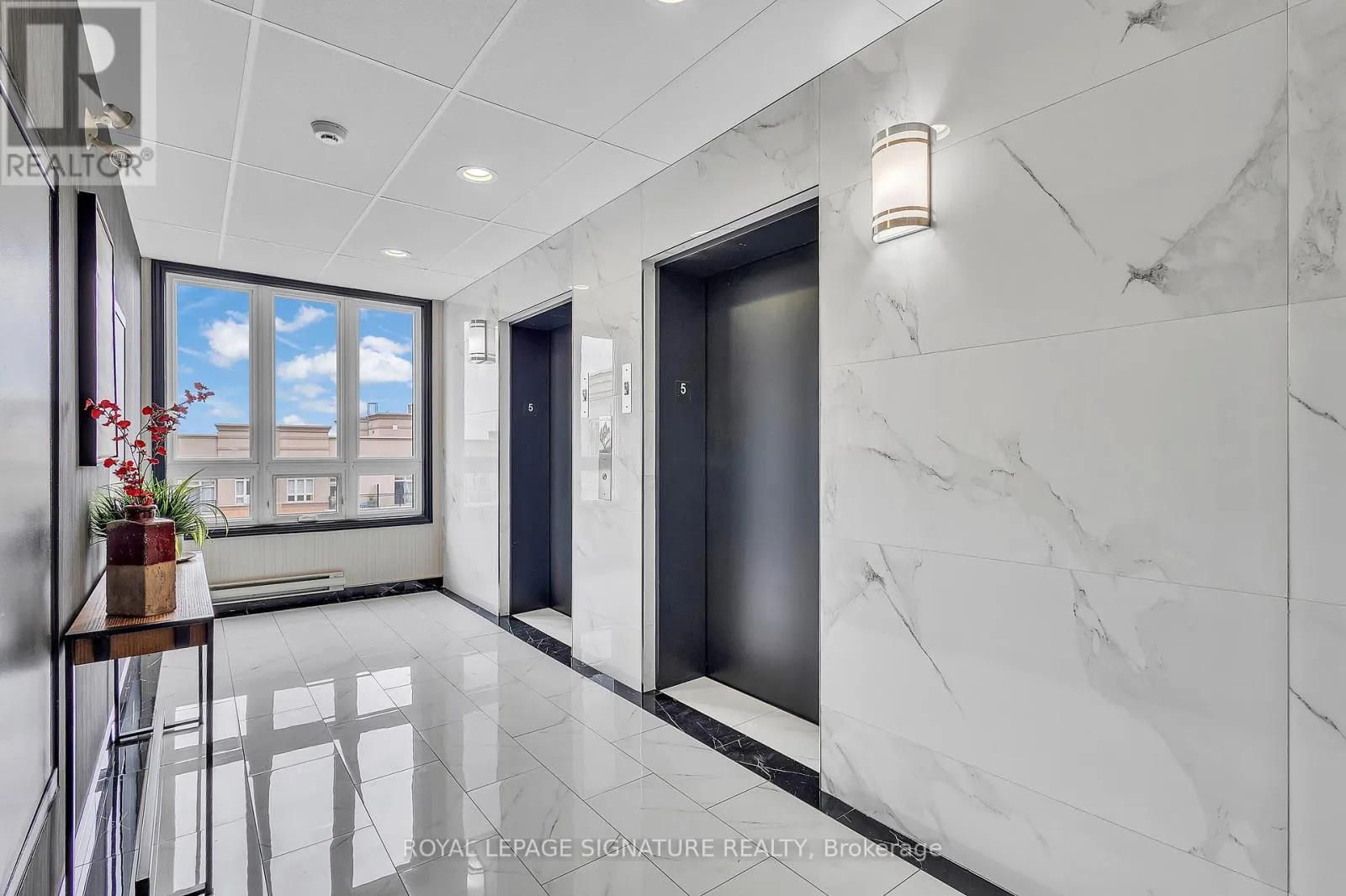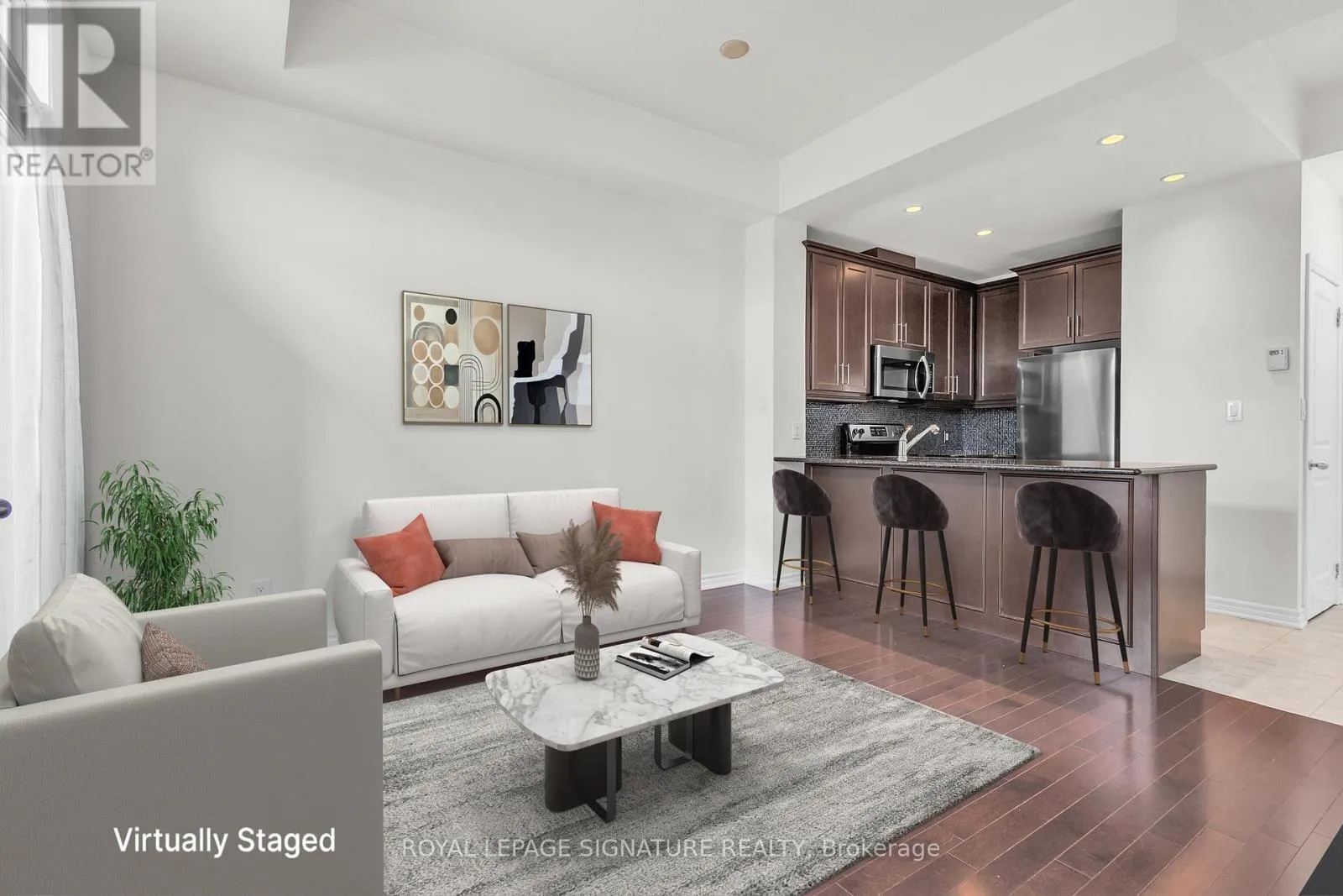 Sutton & Upper Middle Welcome to this stunning top-floor 1-bedroom, 1-bathroom condo in the highly sought-after Orchard community's Times Square Condos, offering 619 square feet of thoughtfully designed living space with soaring 10-foot ceilings. The bright, open-concept main living area features beautiful hardwood flooring and seamless flow between living, kitchen, and dining spaces. Directly off the living room, French doors with upgraded pet-friendly mesh screening lead to your spacious 44-square-foot balcony. The gorgeous kitchen showcases extended-height dark wood cabinetry, sleek granite countertops, ceramic tile flooring, stainless steel appliances, including a new bottom-freezer fridge, potlights, and a double sink with a sprayer feature. The generously sized bedroom features plush carpet, a large walk-in closet with custom shelving, a ceiling fan with light, and direct access to your spacious ensuite bathroom with ceramic tiles, upgraded lighting, a luxurious dual-head shower system, and a convenient full-size front-load washer and dryer. This unit includes prime parking in P1 beside the elevator, plus a large storage locker. Located minutes from the QEW, top-rated schools, shopping, and Bronte Creek Provincial Park. Don't miss this opportunity book your private showing today! (id:27476)