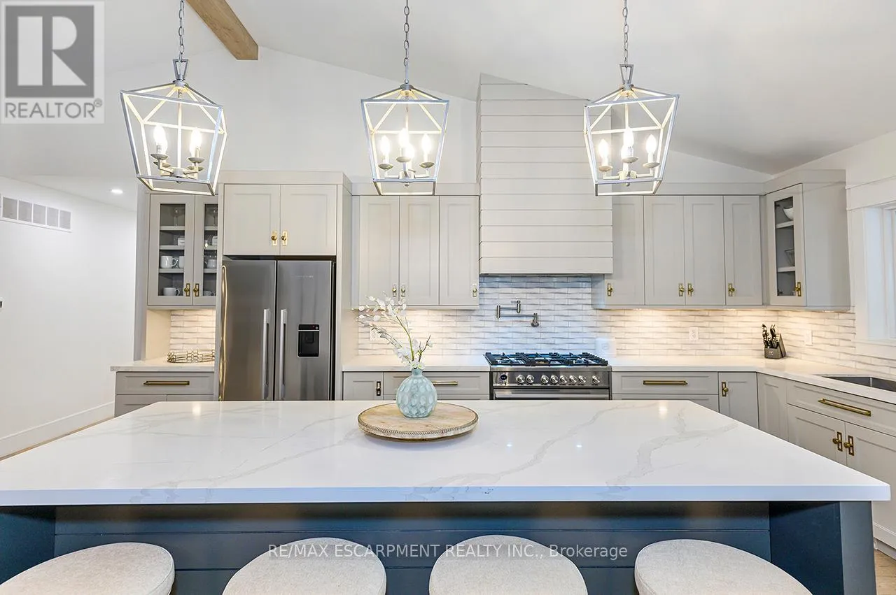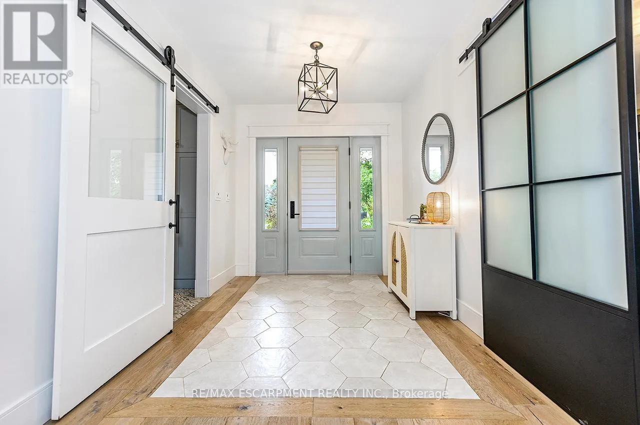Guelph Line Nestled in the tranquility of the countryside, this custom-built Bungalow offers over 5,000 square feet of finished living space, uniting refined luxury with the warmth of country living. With 6 BEDROOMS and 4.5 BATHROOMS, this home has been thoughtfully designed to accommodate both everyday family life and grand-scale entertaining. You are greeted by soaring ceilings, expansive windows, and wide plank white oak flooring that set the tone for timeless elegance. At the heart of the home lies a CHEFS KITCHEN, complete with high-end appliances, custom cabinetry, and a generous island. Open-concept living and dining areas flow seamlessly, filling the home with light and offering effortless connection to the outdoors. The primary suite is a private retreat, with a spa-inspired ensuite and 2 large walk-in closets. Additional bedrooms provide comfort and flexibility for family and guests alike. The fully finished lower level offers endless possibilities for recreation, fitness, or a media lounge. A tandem garage featuring a drive-through to the backyard makes for easy access and extended vehicle storage. Plus, a large detached garage provides ample space for a workshop, additional vehicles, or storage. Outdoors, the property continues to impress with expansive grounds designed for relaxation and entertaining. Whether its quiet mornings on the covered porch, or evenings gathered under the stars, this property delivers a lifestyle as remarkable as the home itself. Ideally located, just minutes from local amenities, major highways, golf courses, trails and charming farms with fresh local produce. This estate is more than a home - its an experience of luxury, space, and serenity in the heart of the country. Luxury Certified. (id:27476)