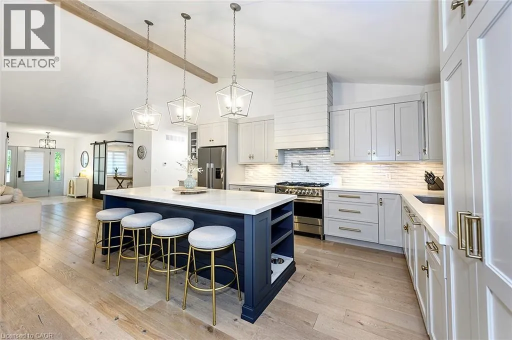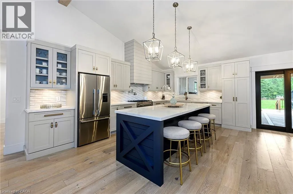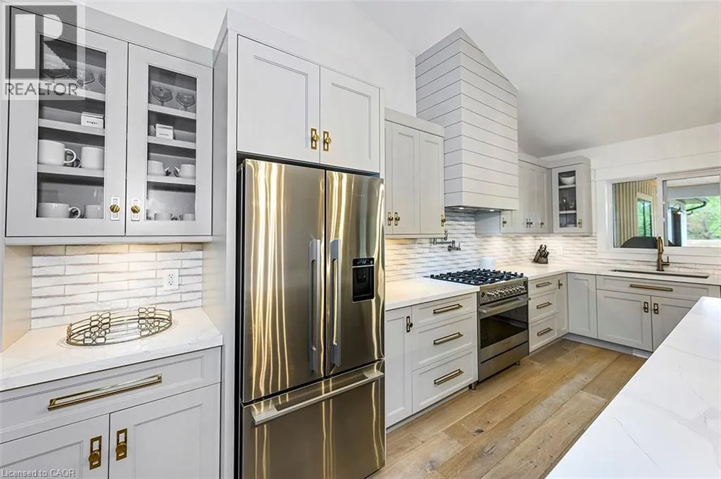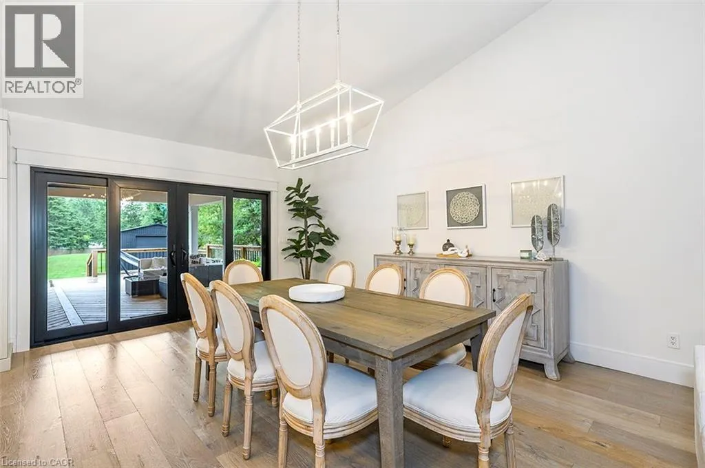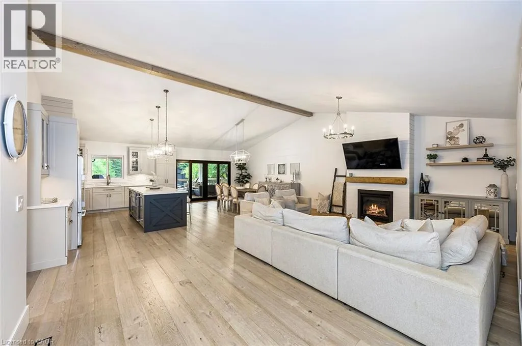 Guelph Line to 2 Sideroad Nestled in the tranquility of the countryside, this custom-built Bungalow offers over 5,000 square feet of finished living space, uniting refined luxury with the warmth of country living. With 6 BEDROOMS and 4.5 BATHROOMS, this home has been thoughtfully designed to accommodate both everyday family life and grand-scale entertaining. You are greeted by soaring ceilings, expansive windows, and wide plank white oak flooring that set the tone for timeless elegance. At the heart of the home lies a CHEFâS KITCHEN, complete with high-end appliances, custom cabinetry, and a generous island. Open-concept living and dining areas flow seamlessly, filling the home with light and offering effortless connection to the outdoors. The primary suite is a private retreat, with a spa-inspired ensuite and 2 large walk-in closets. Additional bedrooms provide comfort and flexibility for family and guests alike. The fully finished lower level offers endless possibilities for recreation, fitness, or a media lounge. A tandem garage featuring a drive-through to the backyard makes for easy access and extended vehicle storage. Plus, a large detached garage provides ample space for a workshop, additional vehicles, or storage. Outdoors, the property continues to impress with expansive grounds designed for relaxation and entertaining. Whether itâs quiet mornings on the covered porch, or evenings gathered under the stars, this property delivers a lifestyle as remarkable as the home itself. Ideally located, just minutes from local amenities, major highways, golf courses, trails and charming farms with fresh local produce. This estate is more than a homeâitâs an experience of luxury, space, and serenity in the heart of the country. Luxury Certified. (id:27476)