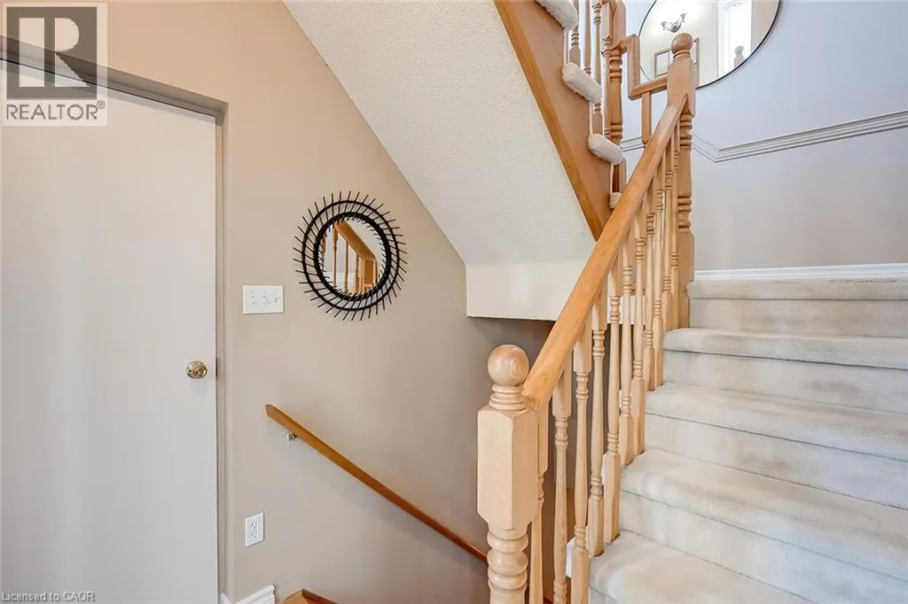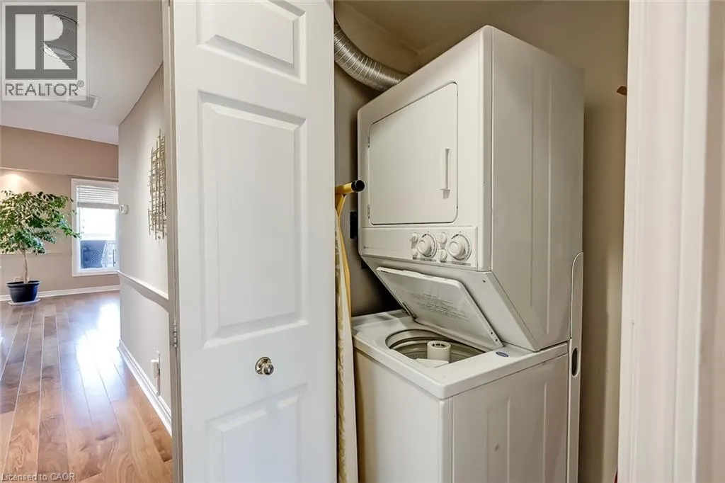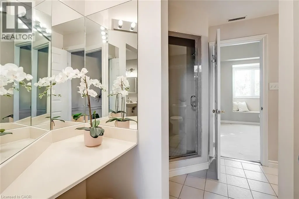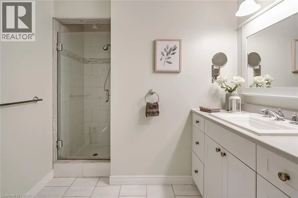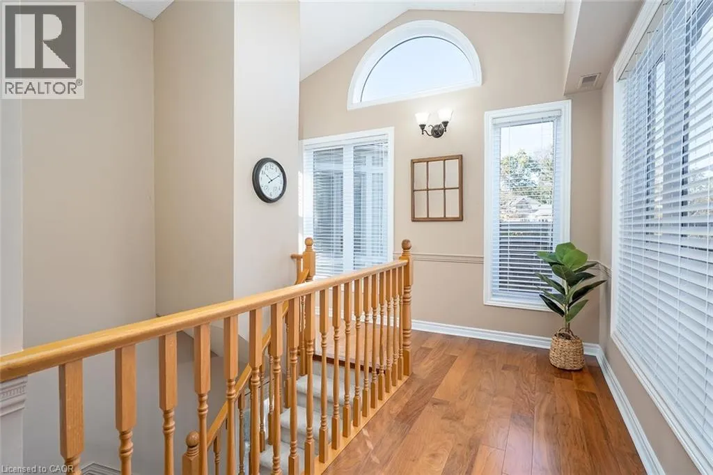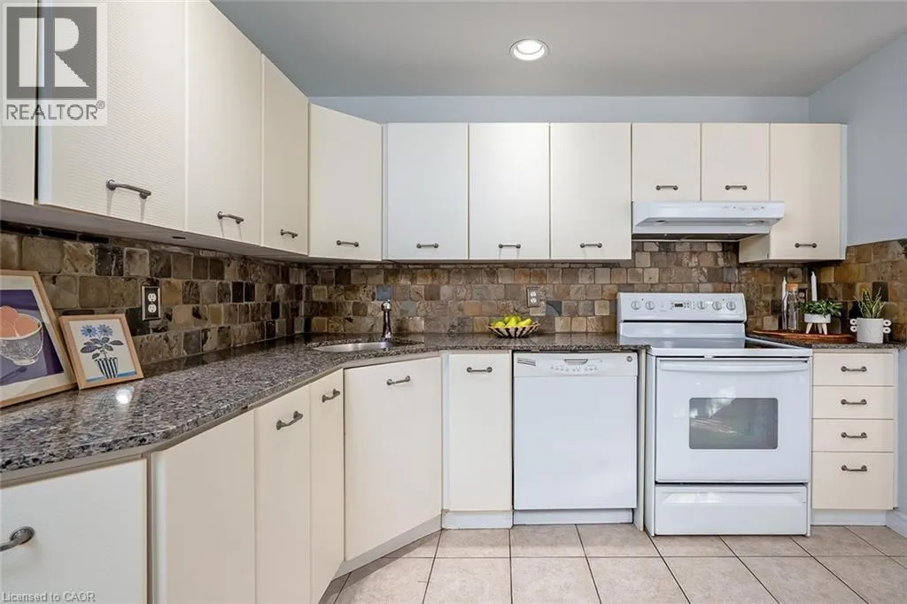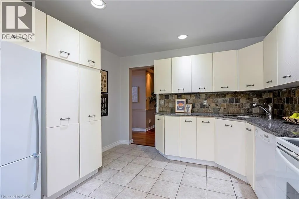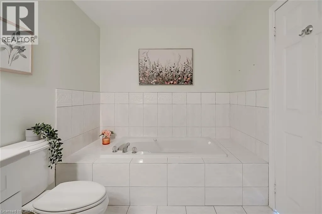 Lakeshore Road to Pine Cove Road to New Street Welcome to The Terraces, an exclusive enclave in South Burlingtonâs desirable Roseland neighbourhood. This rarely available, light-filled end-unit townhome offers 1,656 sq. ft. above grade with 2 bedrooms, 2 bathrooms, and a thoughtfully designed open-concept layout that combines comfort and sophistication. The expansive living and dining area showcases vaulted ceilings, gleaming walnut floors, and a gas fireplace, creating a warm and inviting atmosphere. French doors open to a private terrace with an awning, perfect for morning coffee or evening relaxation. The bright kitchen provides generous counter and storage space, while the main floor primary suite features a 4-piece ensuite and his-and-hers closets. A second bedroom with a walk-in closet offers ensuite privileges to the 3-piece main bath. Convenient main floor laundry adds to the ease of one-level living. The fully finished basement extends your space with a recreation room, den, and rough-in for an additional bathroom. Enjoy inside entry from the attached garage plus ample visitor parking. Maintenance is effortless â snow removal for the driveway and steps, landscaping, and all exterior upkeep are fully managed, allowing you to enjoy a carefree, lock-and-leave lifestyle. Ideal for snowbirds or those seeking a low-maintenance home without compromise. Perfectly situated near downtown Burlington, the waterfront, parks and trails, shopping, and highway access, this immaculate home offers the best in comfort, convenience, and community. (id:27476)
