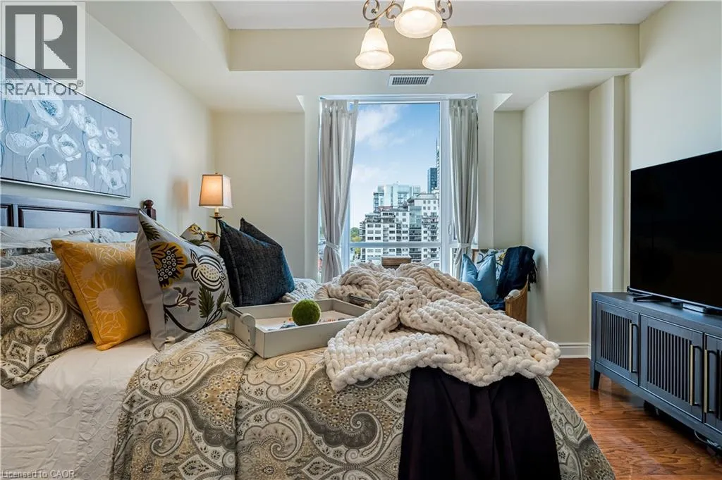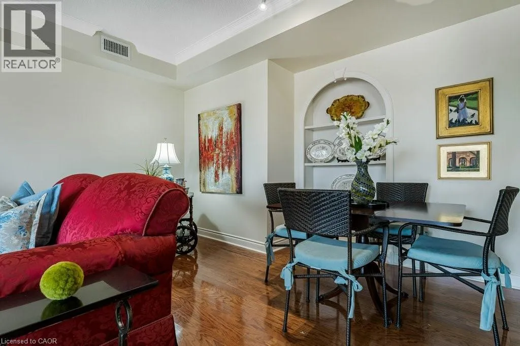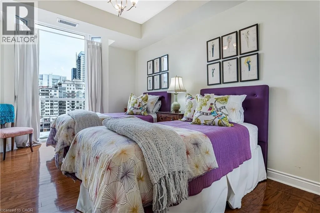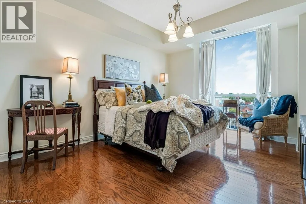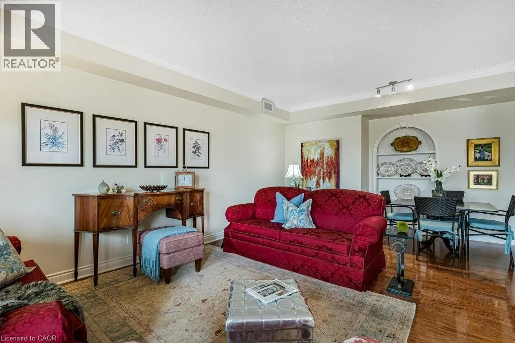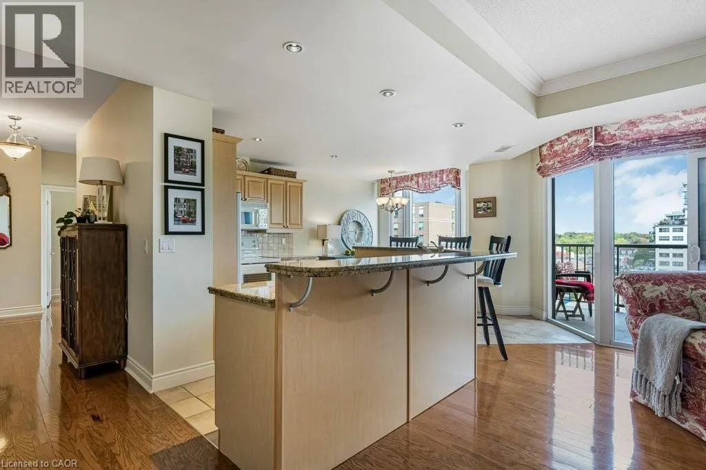 North-west corner of Brant St & Lakeshore Rd. Entrance is off Brant Street. Downtown energy. Lakeside calm. Pure Burlington living. Welcome to Buntonâs Wharf, where open-plan design meets refined elegance in this 2-bedroom, 2-bath condo perfectly balancing luxury, light, and location. A welcoming foyer leads to a bright, airy living space with floor-to-ceiling windows, 9 ft ceilings, and hardwood floors. The kitchen combines function and style with granite countertops, ample cabinetry, a large breakfast bar, and a breakfast nook with partial water viewsâthe perfect morning retreat. The living and dining area opens to a private balcony with sweeping lake and city views. The primary suite features floor-to-ceiling windows, a walk-in closet, and a 4-piece ensuite. The second bedroom is bright and versatileâideal for guests, a home office, or studio. A second full bathroom, laundry room, and ample storage complete the layout. Includes two underground parking spaces and a locker conveniently located across the hall. Amenities: Rooftop heated pool with panoramic lake views, rooftop patio, party room, two fitness centres (one with a golf simulator), steam room, and concierge service. Steps to Spencer Smith Park, waterfront trails, fine dining, boutique shopping, and the Performing Arts Centre, with quick access to the QEW, 407, and GO Transit. Luxury. Light. Location. Experience Burlington living at its best. (id:27476)