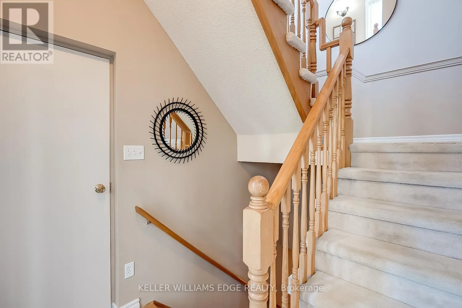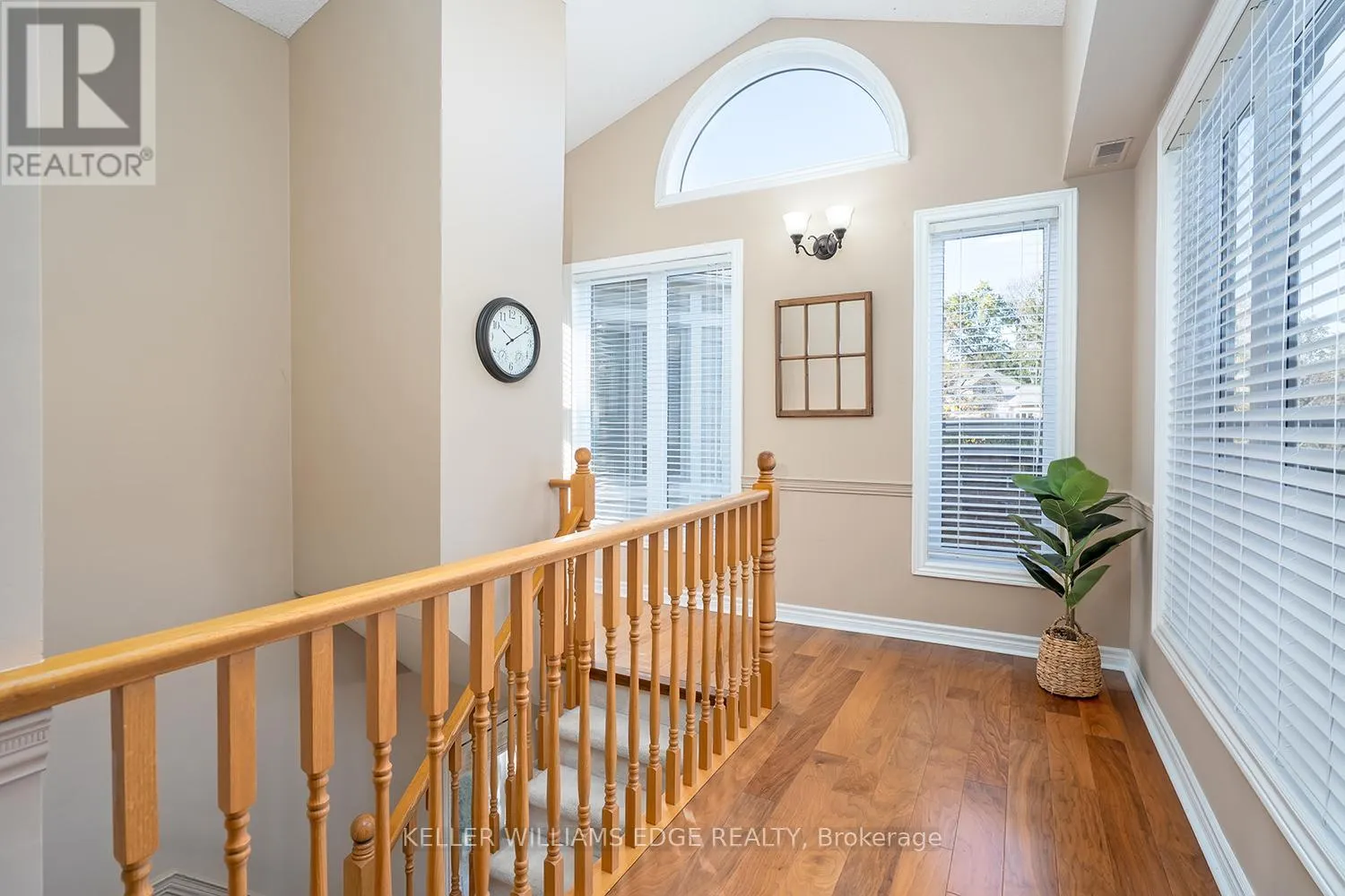 Cross Streets: Pine Cove Road. ** Directions: Lakeshore Road to Pine Cove Road to New Streett. Welcome to The Terraces, an exclusive enclave in South Burlingtons desirable Roseland neighbourhood. This rarely available, light-filled end-unit townhome offers 1,656 sq. ft. above grade with 2 bedrooms, 2 bathrooms, and a thoughtfully designed open-concept layout that combines comfort and sophistication.The expansive living and dining area showcases vaulted ceilings, gleaming walnut floors, and a gas fireplace, creating a warm and inviting atmosphere. French doors open to a private terrace with an awning, perfect for morning coffee or evening relaxation.The bright kitchen provides generous counter and storage space, while the main floor primary suite features a 4-piece ensuite and his-and-hers closets. A second bedroom with a walk-in closet offers ensuite privileges to the 3-piece main bath. Convenient main floor laundry adds to the ease of one-level living.The fully finished basement extends your space with a recreation room, den, and rough-in for an additional bathroom. Enjoy inside entry from the attached garage plus ample visitor parking.Maintenance is effortless snow removal for the driveway and steps, landscaping, and all exterior upkeep are fully managed, allowing you to enjoy a carefree, lock-and-leave lifestyle. Ideal for snowbirds or those seeking a low-maintenance home without compromise.Perfectly situated near downtown Burlington, the waterfront, parks and trails, shopping, and highway access, this immaculate home offers the best in comfort, convenience, and community. (id:27476)