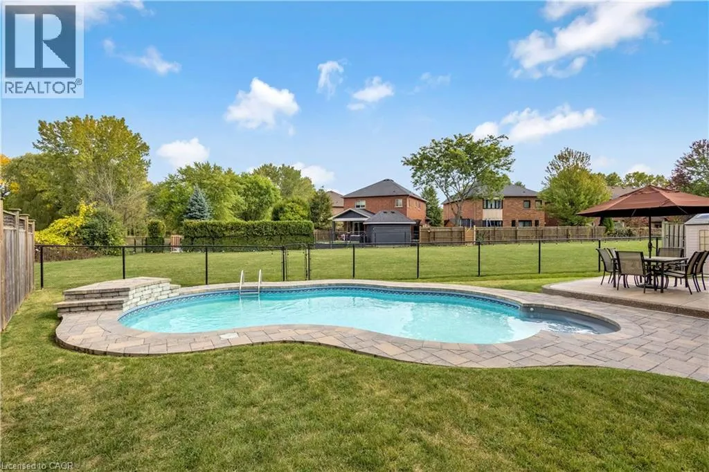 Dundas or Upper Middle to Sutton to Whitehorn Welcome to 2403 Whitehorn Drive â a beautifully maintained Sundial-built home nestled on one of Orchardâs most quiet, family-friendly streets. Situated on an impressive 5,500 sq.ft. pie-shaped lot backing onto peaceful greenspace, this residence offers nearly 2,700 sq.ft. of finished living space. The home features a thoughtful layout with 4 bedrooms and 3.5 bathrooms. Every bedroom is generously sized, with professionally designed closet organizers for maximum storage. Custom drapes and California shutters add a touch of elegance throughout. An extensive interior renovation showcases modern hardwood flooring, updated trim, a refreshed laundry room, and a renovated main floor powder room. Popcorn ceilings were removed for a clean, contemporary look. The professionally finished basement offers a large recreation area, a bedroom, a convenient walk-up to the backyard, and a stylish bathroom. Enjoy outdoor living in your private backyard retreat featuring a stunning inground pool with well-maintained and updated equipment and the tranquillity of a greenspace setting. The newly completed driveway and walkway (2025) add to the homeâs curb appeal, while the roof was replaced in 2024 for peace of mind. Additional highlights include two charming gas fireplaces with brick backdrops â perfect for families seeking comfort, space, and privacy in the heart of the Orchard community. Enjoy outdoor living in your private backyard retreat featuring a stunning underground pool with well maintained and updated equipment. The newly completed driveway and walkway (2025) add to the homeâs curb appeal, while the roof was replaced in 2024 for peace of mind. Additional highlights include two charming gas fireplaces with brick backdrops and the tranquility of a greenspace setting â perfect for families seeking comfort, space, and privacy in the heart of the Orchard community. (id:27476)