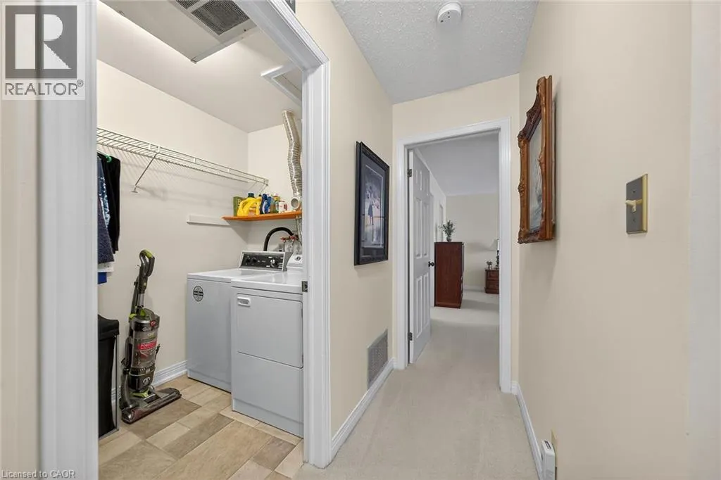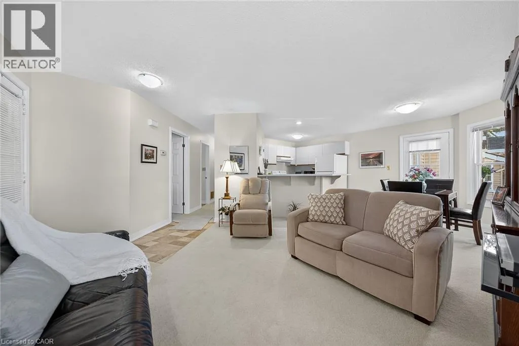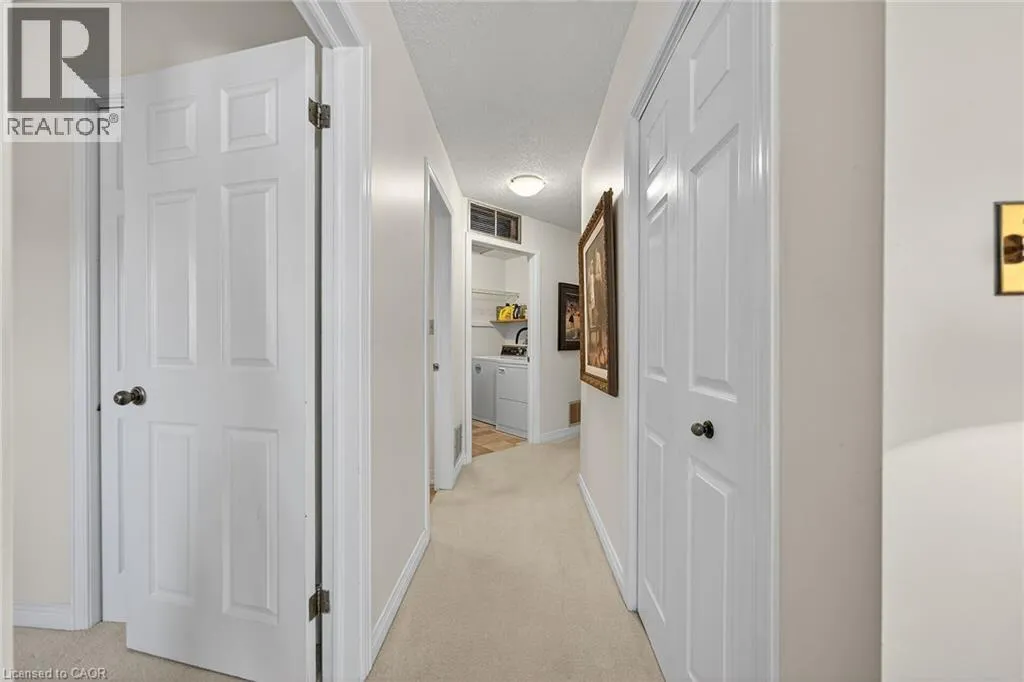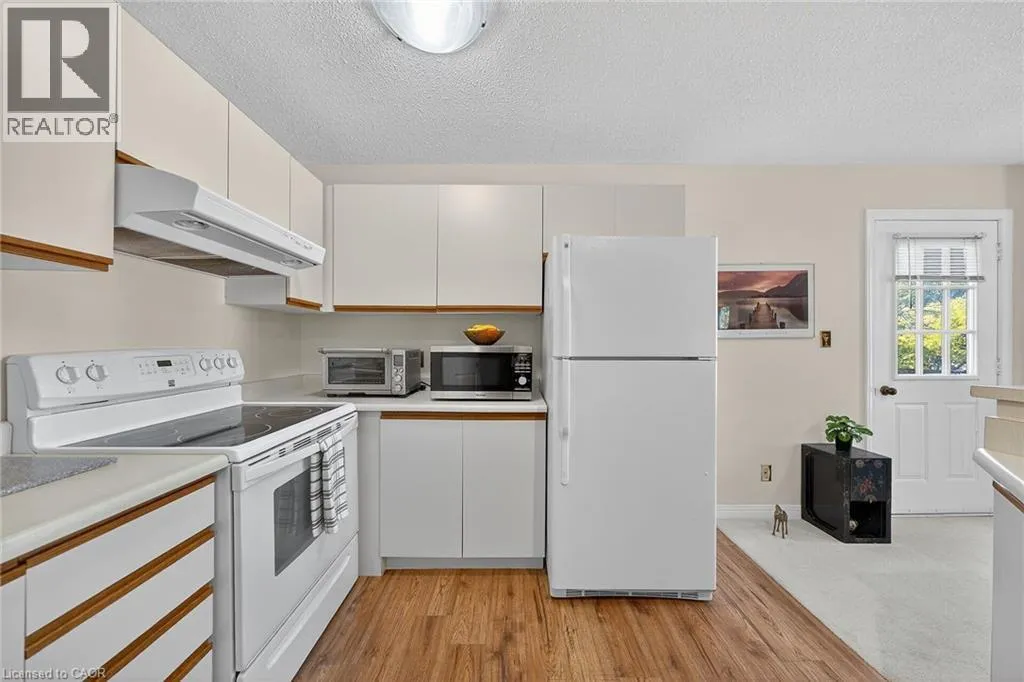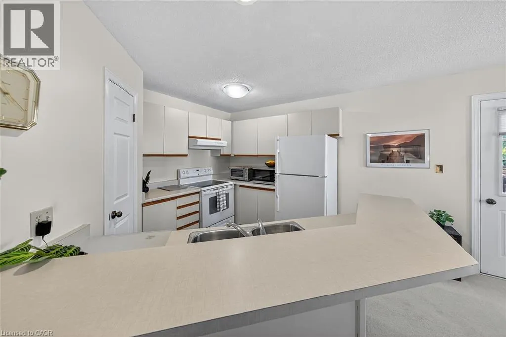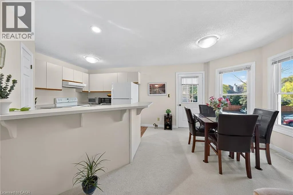 Fairview St- Maple Ave- Thorpe Rd Welcome to this beautifully maintained second-storey, one-level living, town home featuring 2 spacious bedrooms plus 2 full bathrooms. Primary bedroom with walk-in closet and a 4 piece ensuite (tub/shower combo). Second bedroom w/3 piece ensuite (walk-in shower). Numerous windows throughout flood this open concept living area in a cheerful, natural, warm atmosphere. Spacious living room/dining room. Lovely kitchen offers a breakfast bar, pantry, as well as generous extra storage! South facing private balcony (gardenerâs delight) is conveniently accessible from dining room plus primary bedroom - extending your living space! Also, enjoy your own personal in suite laundry/utility room! Exclusive-use garage, with an additional parking space and private storage room. Near all amenities! Walk to: waterfront, parks, hospital, Mapleview mall, public transit, schools etc. Easy access to the QEW (Toronto & Niagara bound), 403 and 407. Proudly owned home, meticulously maintained by the same PET FREE & SMOKE FREE owner for over 27 years. This is a special home ready for you! Possession date flexible. (id:27476)