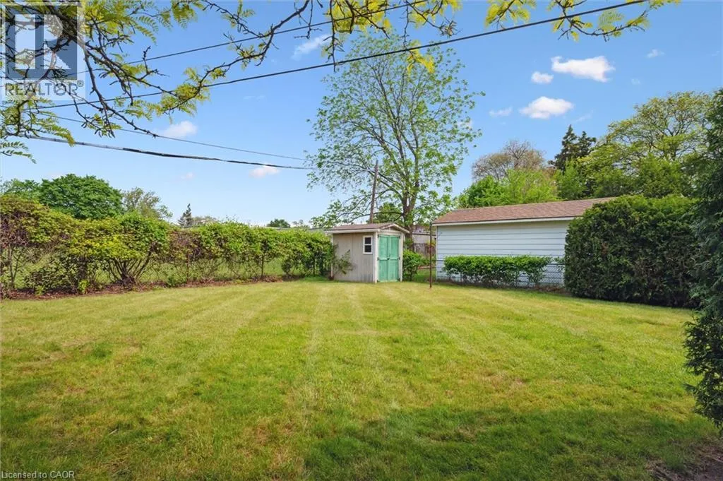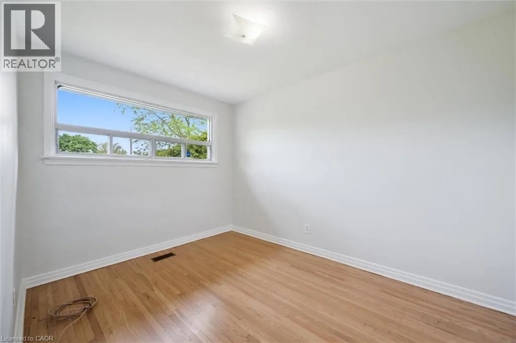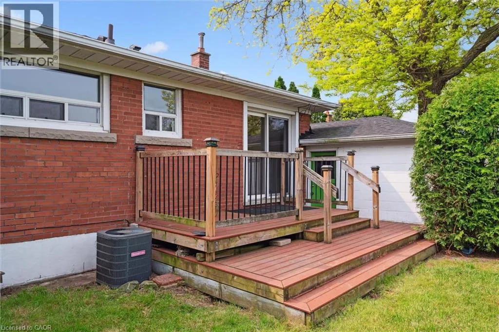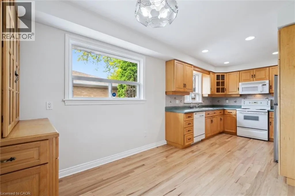 Prospect to Joyce Welcome to 2237 Joyce Street located in a family friendly quiet neighbourhood. Tremendous value in this bungalow with central core location close to schools, downtown, the Go Station and major highways. The front entrance welcomes you with freshly painted walls throughout and beautifully refinished hardwood floors. The spacious Living Room is flooded with light from oversized windows. The adjoining Kitchen features a separate Dining area perfect for family gatherings. Maple cabinetry and a custom built-in hutch offer a multitude of storage space. Three spacious Bedrooms are located on the main floor, with one bedroom featuring patio doors overlooking the backyard. The main floor 4 piece bathroom has been recently updated. The separate side entrance takes you down to the lower level which has been updated with vinyl plank flooring and pot-lights. The family room includes a kitchen area with gas line for a stove and a fan hookup connection. The spacious bedroom includes double closets with a 4 piece bathroom just down the hall. This layout offers the potential for an in-law suite, teen hangout, or look at financing incentives offered by the City of Burlington to create an Additional Dwelling Unit. The private yard backs onto a field and offers a quiet private space for children to play or adults to relax. The spacious lot includes an oversized driveway with plenty of parking options and single garage. Quick closing is available to make this your new home, it's ready to move in! (id:27476)