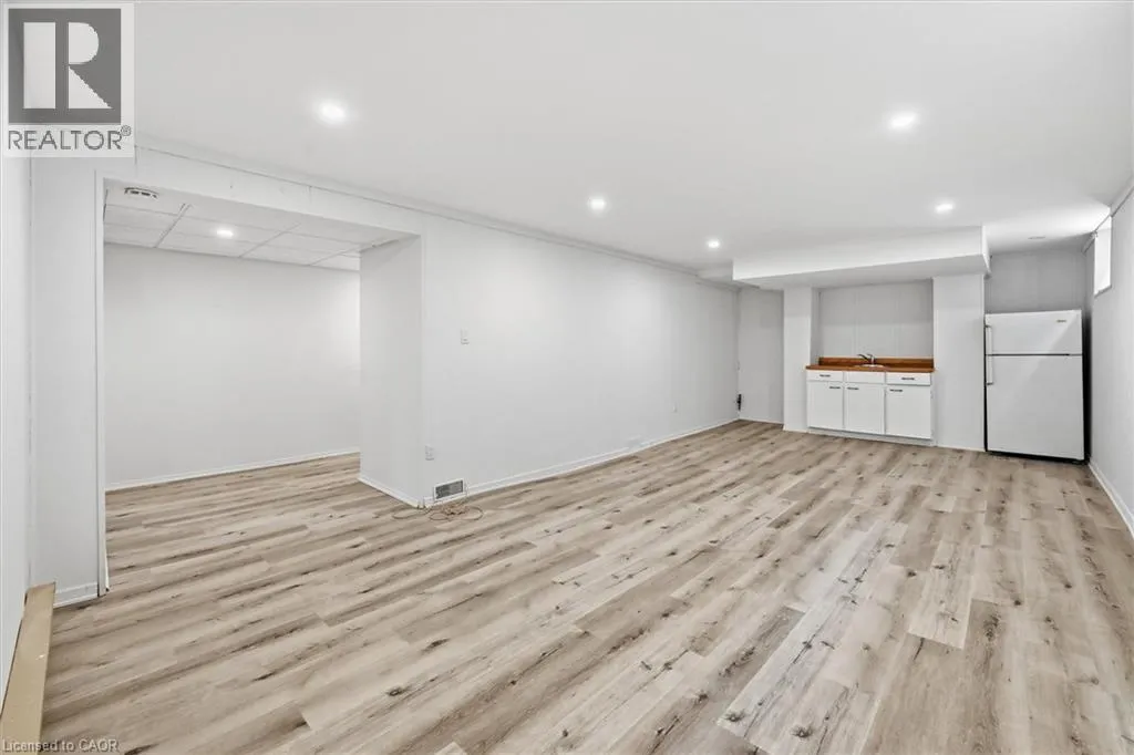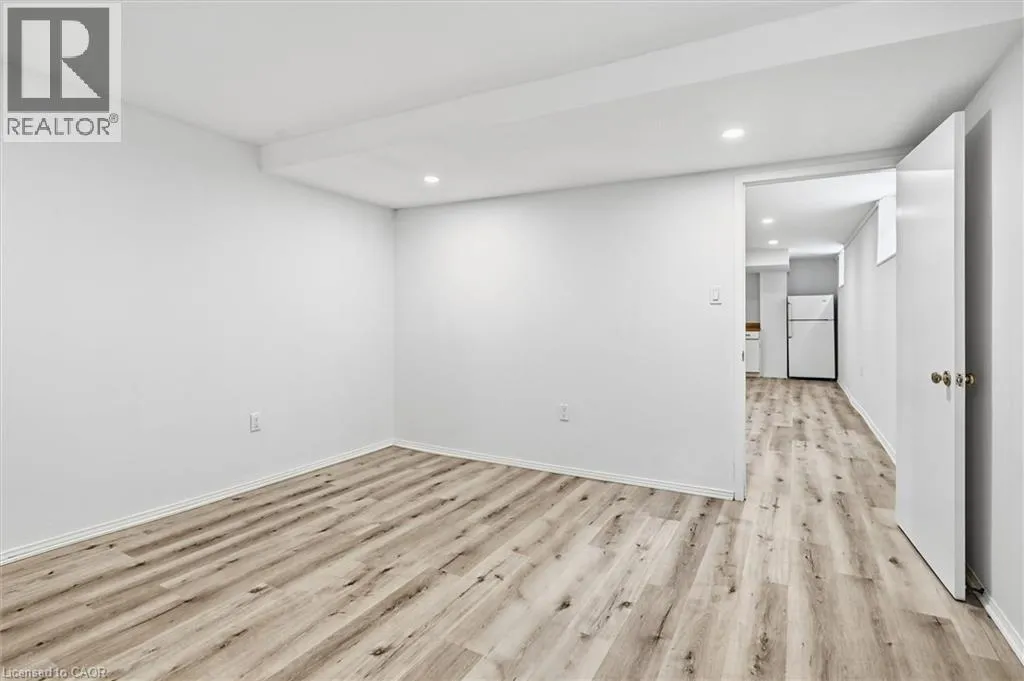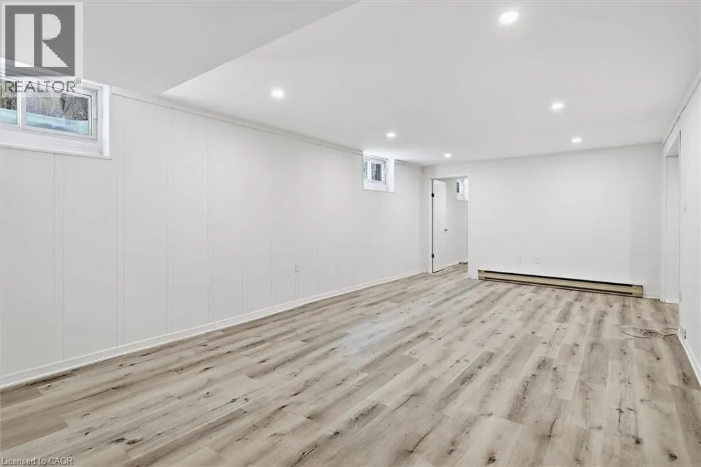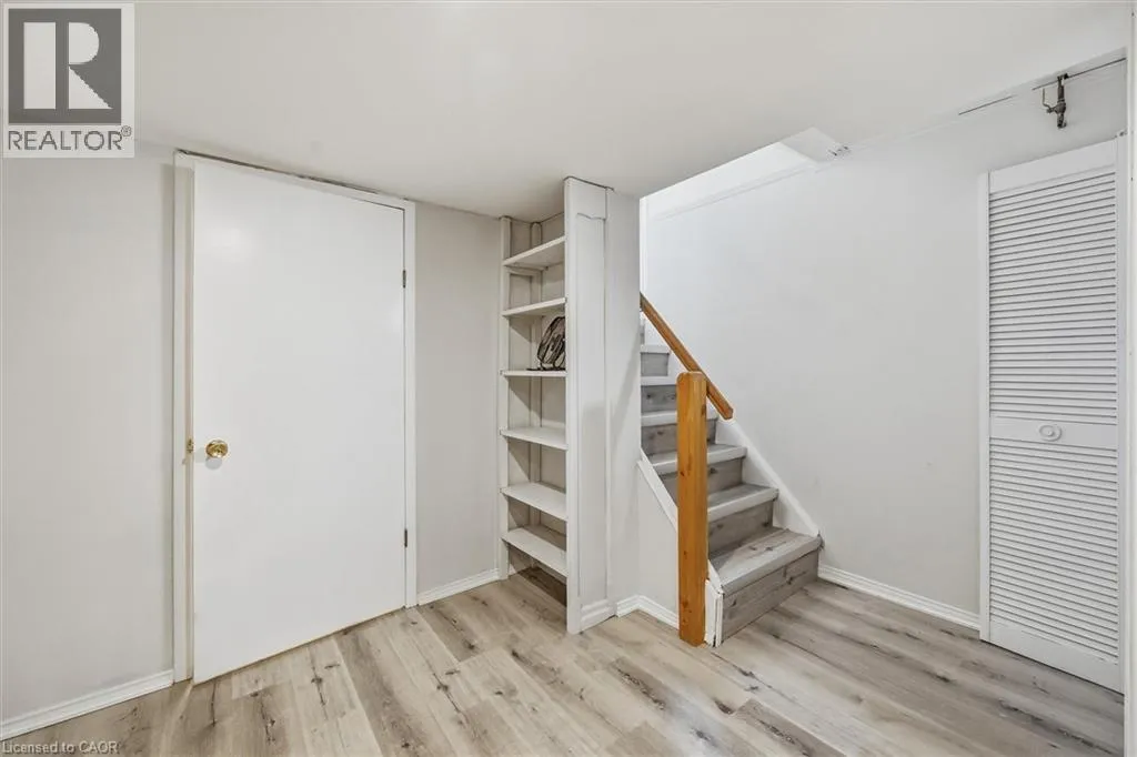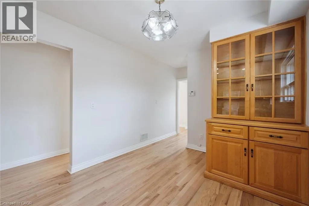 Prospect to Joyce Welcome to 2237 Joyce Street located in a family friendly quiet neighbourhood. Tremendous value in this bungalow with central core location close to schools, downtown, the Go Station and major highways. The front entrance welcomes you with freshly painted walls throughout and beautifully refinished hardwood floors. The spacious Living Room is flooded with light from oversized windows. The adjoining Kitchen features a separate Dining area perfect for family gatherings. Maple cabinetry and a custom built-in hutch offer a multitude of storage space. Three spacious Bedrooms are located on the main floor, with one bedroom featuring patio doors overlooking the backyard. The main floor 4 piece bathroom has been recently updated. The separate side entrance takes you down to the lower level which has been updated with vinyl plank flooring and pot-lights. The family room includes a kitchen area with gas line for a stove and a fan hookup connection. The spacious bedroom includes double closets with a 4 piece bathroom just down the hall. This layout offers the potential for an in-law suite, teen hangout, or look at financing incentives offered by the City of Burlington to create an Additional Dwelling Unit. The private yard backs onto a field and offers a quiet private space for children to play or adults to relax. The spacious lot includes an oversized driveway with plenty of parking options and single garage. Quick closing is available to make this your new home, it's ready to move in! (id:27476)