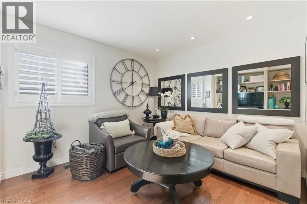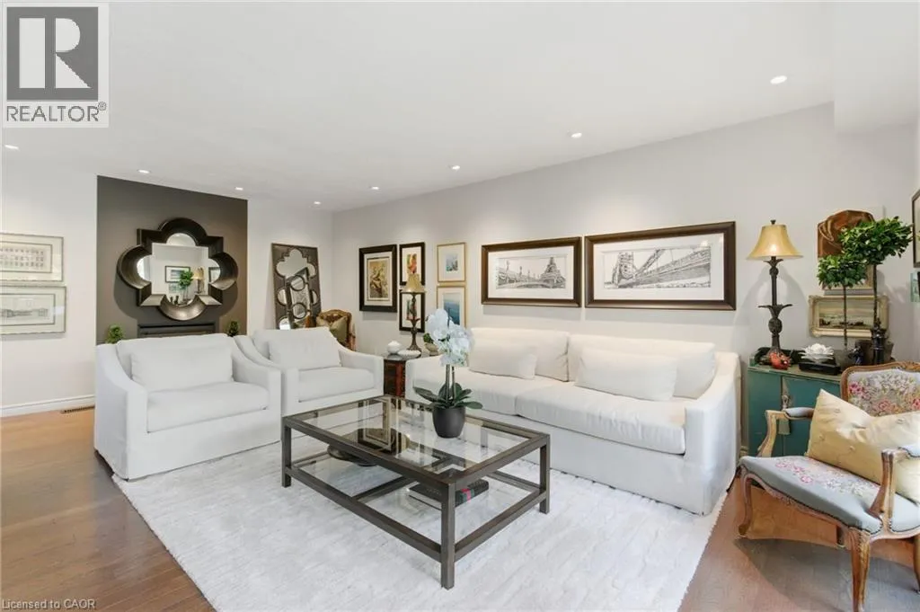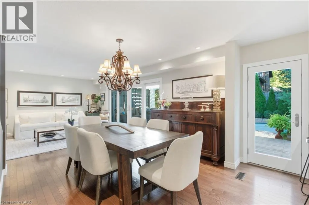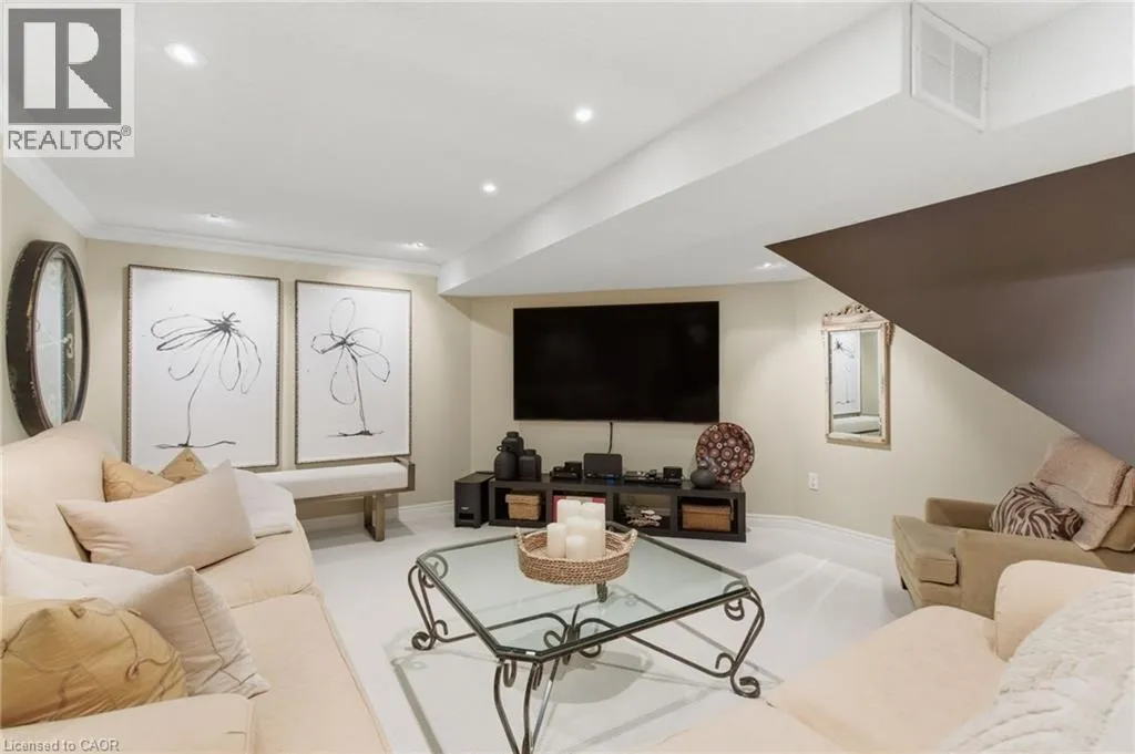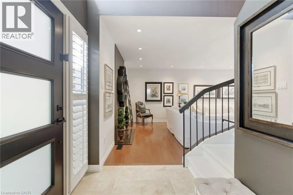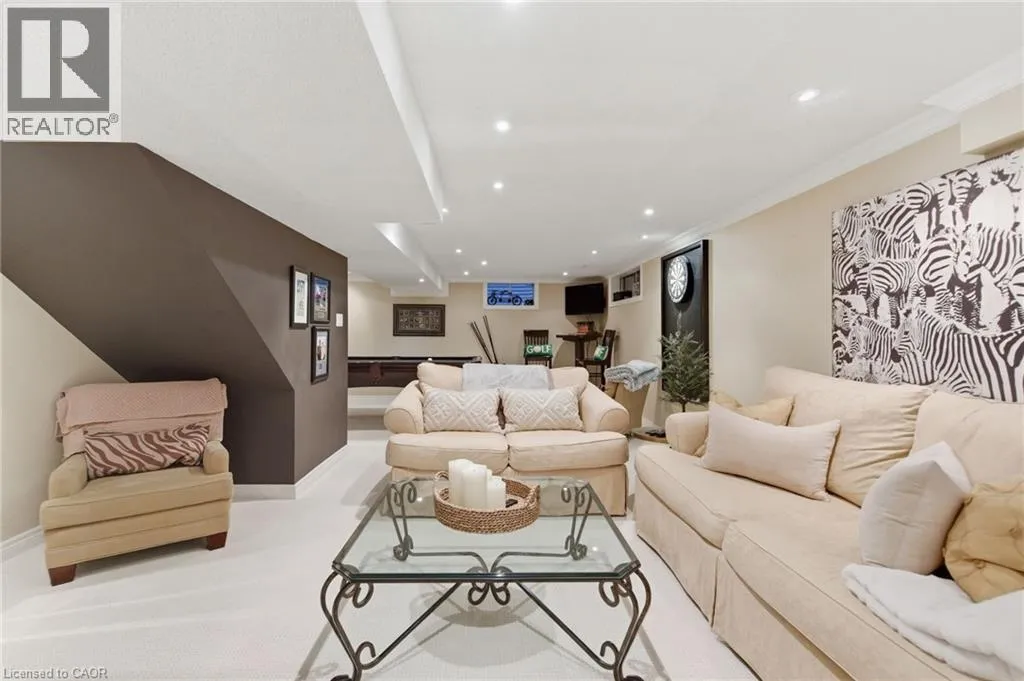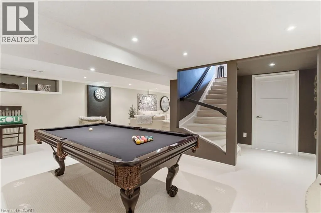 Upper Middle Rd to Cavendish Dr, by Ingersoll Dr Welcome to this beautifully renovated home in one of Burlingtonâs most established and family-friendly neighbourhoods! Ideally located near parks, shopping, and quick highway access, this stunning 2-storey residence has been thoughtfully redesigned with quality finishes and attention to detail. The open-concept main floor showcases a modern kitchen with gas cooktop, double wall oven, large windows, and island seating that flows seamlessly into the dining and living rooms, perfect for everyday living and entertaining. A versatile bonus room on the main level, currently a TV lounge, could serve as a home office, playroom, or even a main-floor bedroom. Upstairs, brand-new carpeting leads to four spacious bedrooms. The primary retreat offers two closets (one walk-in) and a beautifully updated 4-piece ensuite, while the updated main bath features a large glass shower. The fully finished lower level includes new carpeting, a games area with pool table, and a cozy rec room for movie or sports nights. Step outside to your private backyard paradise! The heated inground pool is surrounded by mature trees, lush gardens, and professional landscaping for complete privacy. An expansive deck offers multiple seating areas, a covered lounge with gas fire feature, gas BBQ hookup, and ambient lighting, perfect for day or night enjoyment. This exceptional property combines comfort, style, and outdoor luxury in the heart of Brant Hills. (id:27476)