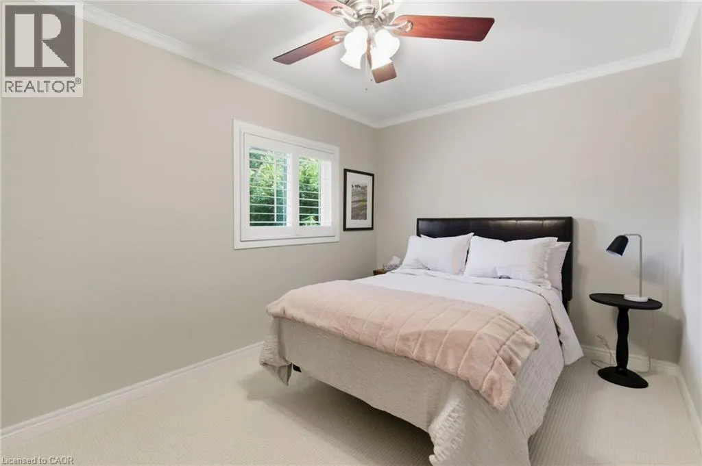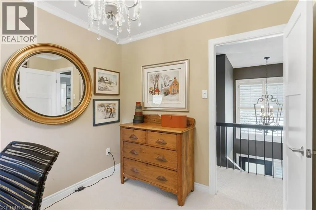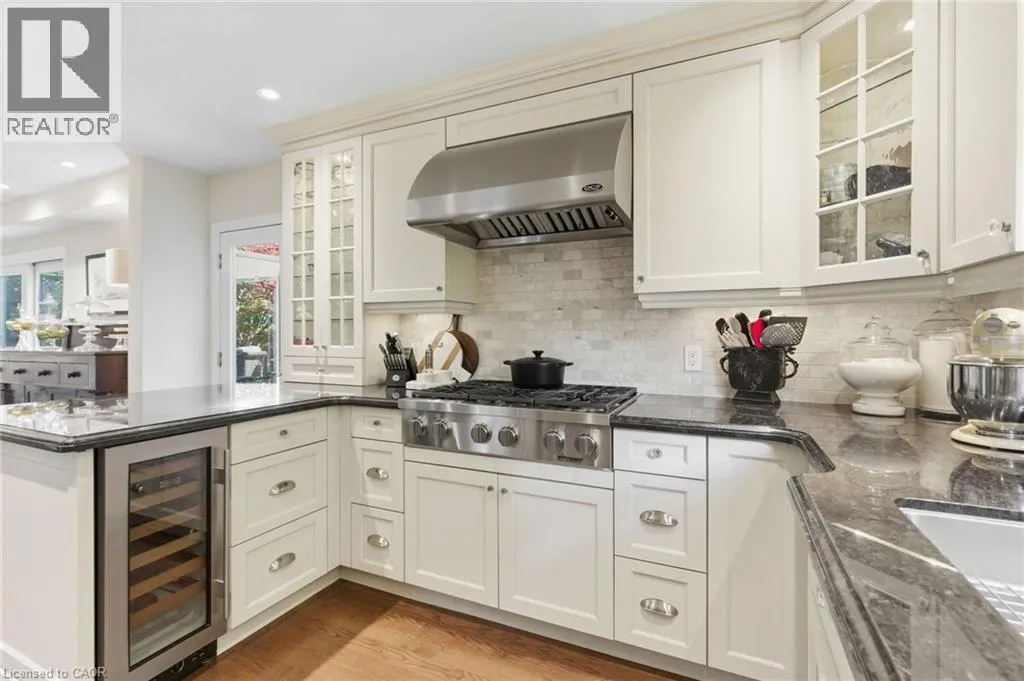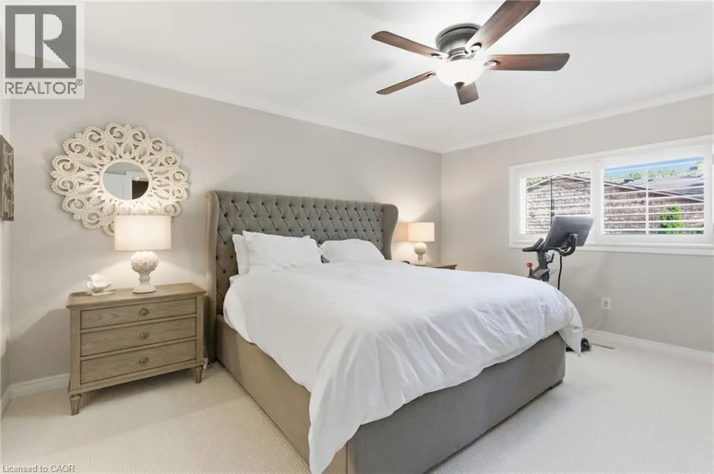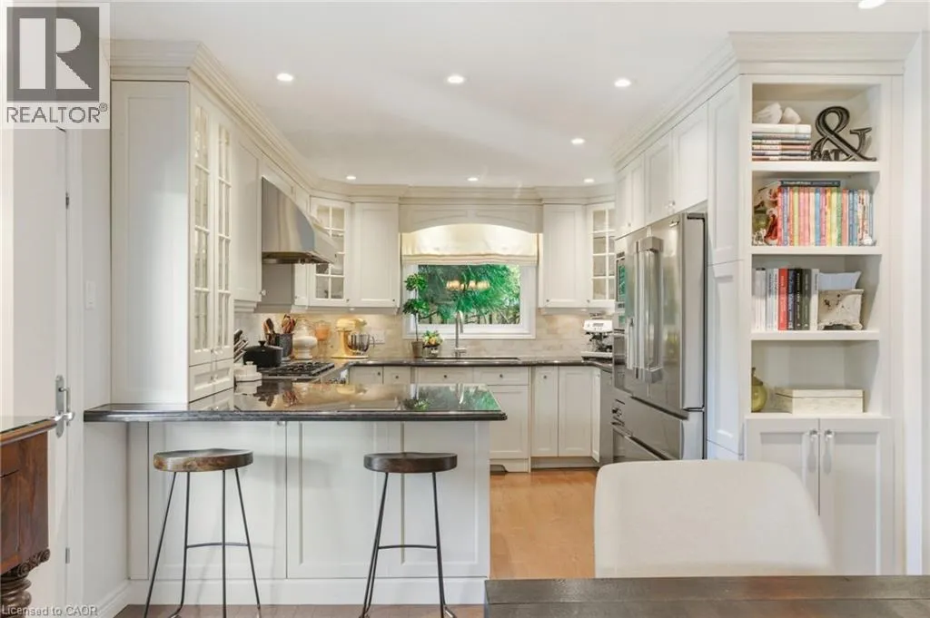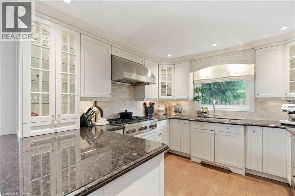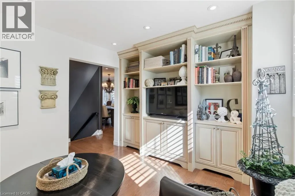 Upper Middle Rd to Cavendish Dr, by Ingersoll Dr Welcome to this beautifully renovated home in one of Burlingtonâs most established and family-friendly neighbourhoods! Ideally located near parks, shopping, and quick highway access, this stunning 2-storey residence has been thoughtfully redesigned with quality finishes and attention to detail. The open-concept main floor showcases a modern kitchen with gas cooktop, double wall oven, large windows, and island seating that flows seamlessly into the dining and living rooms, perfect for everyday living and entertaining. A versatile bonus room on the main level, currently a TV lounge, could serve as a home office, playroom, or even a main-floor bedroom. Upstairs, brand-new carpeting leads to four spacious bedrooms. The primary retreat offers two closets (one walk-in) and a beautifully updated 4-piece ensuite, while the updated main bath features a large glass shower. The fully finished lower level includes new carpeting, a games area with pool table, and a cozy rec room for movie or sports nights. Step outside to your private backyard paradise! The heated inground pool is surrounded by mature trees, lush gardens, and professional landscaping for complete privacy. An expansive deck offers multiple seating areas, a covered lounge with gas fire feature, gas BBQ hookup, and ambient lighting, perfect for day or night enjoyment. This exceptional property combines comfort, style, and outdoor luxury in the heart of Brant Hills. (id:27476)
