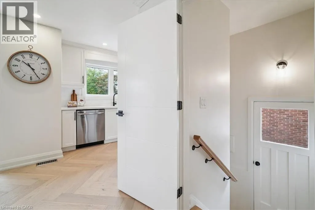 Upper Middle/Augustine/Fisher/Parkway/Mountain Grove Welcome to this fully renovated 3-bedroom bungalow, ideally situated on a deep 150-ft lot in one of Burlingtonâs most sought-after neighbourhoods. Meticulously updated from top to bottomâincluding brand-new windows throughoutâthis home perfectly blends modern sophistication with everyday comfort, offering a truly move-in-ready opportunity. Step inside to a bright, open-concept main floor filled with natural light. The spacious living and dining area features an extended picture window, rich new hardwood flooring, a custom accent wall with lighted shelving, and a sleek electric fireplaceâcreating a warm and stylish space for both relaxing and entertaining. The newly designed kitchen is a standout, boasting quartz countertops, a chic backsplash, stainless steel appliances, and ample cabinetryâcombining beauty and functionality with ease. The fully finished basement with separate entrance adds exceptional versatility, offering a generous recreation area, a flexible bonus room ideal for a home office or games room, and a modern 3-piece bathroomâperfect for growing families or multi-generational living. Outside, the expansive backyard provides endless possibilities, whether you're hosting summer gatherings, gardening, or simply enjoying outdoor time with family. Located just minutes from schools, parks, shopping, dining, and all the amenities Burlington has to offer, this home delivers both convenience and lifestyle. (id:27476)