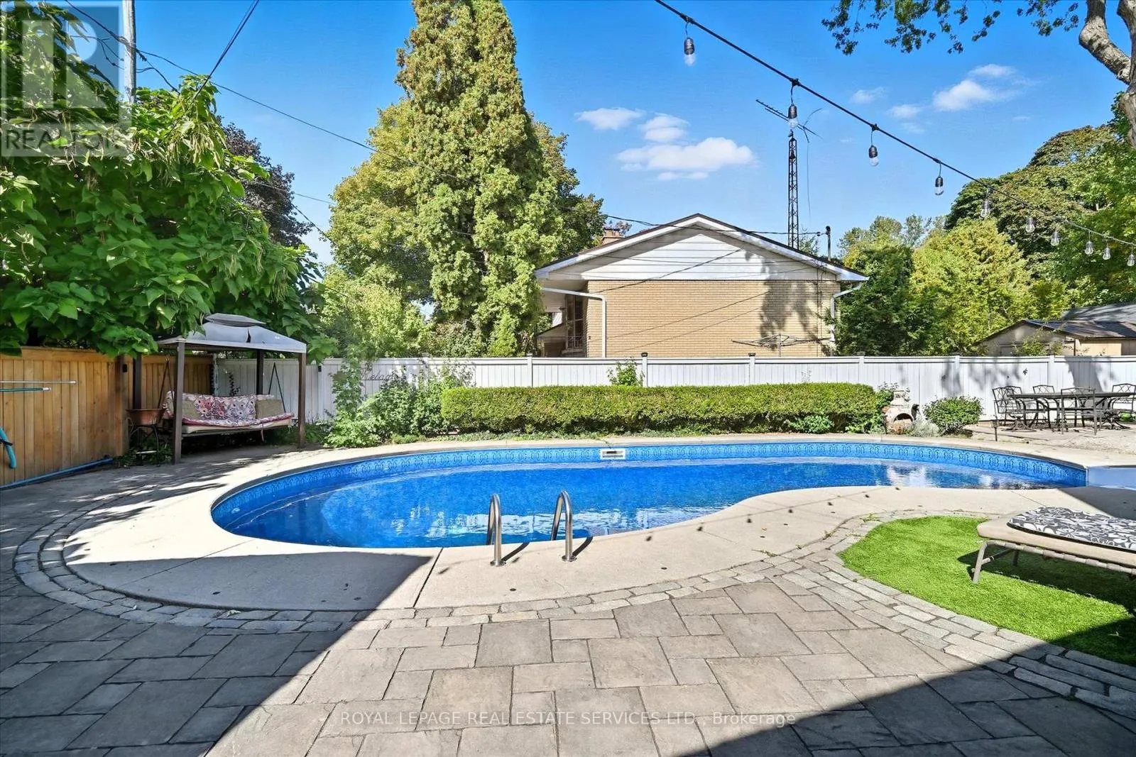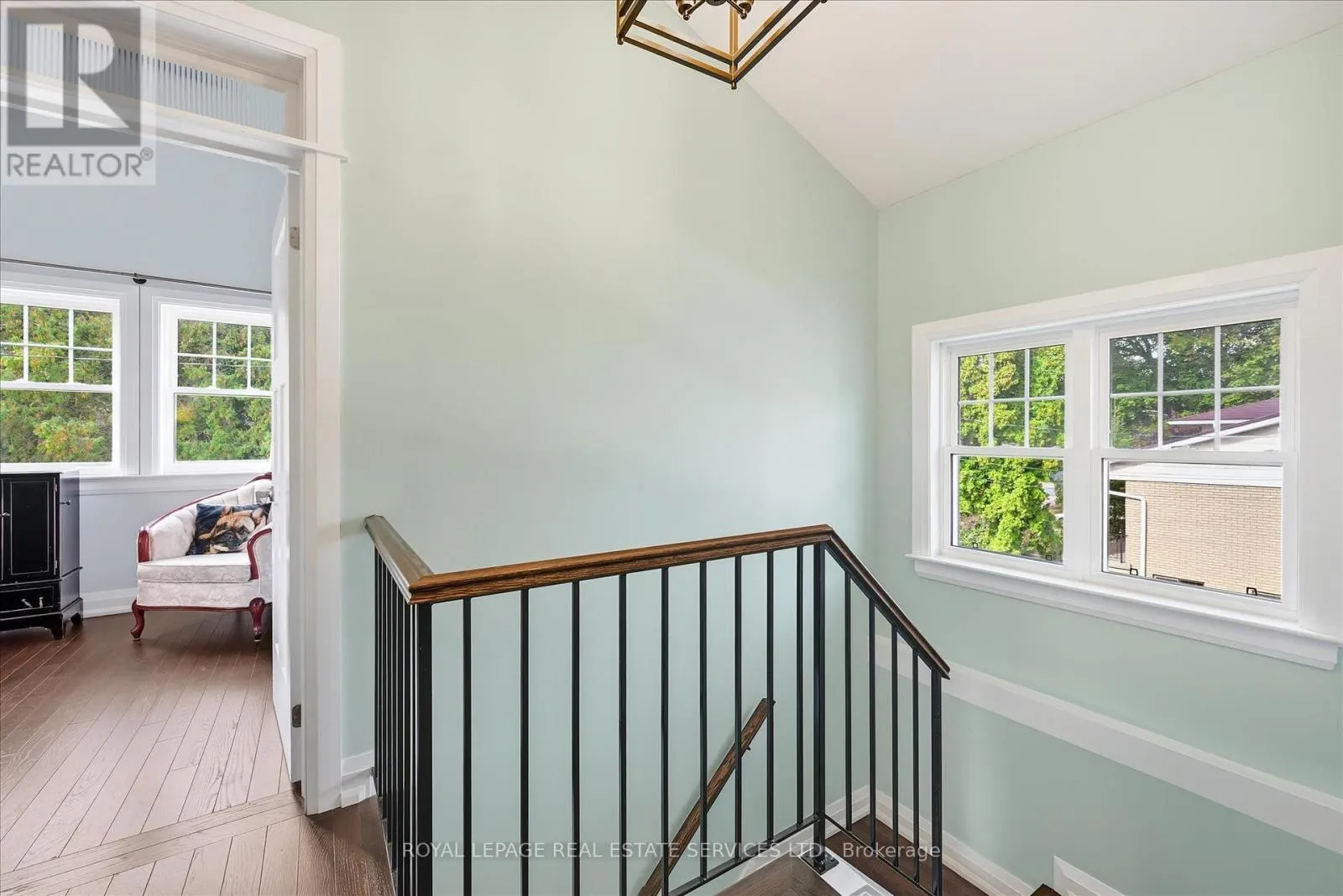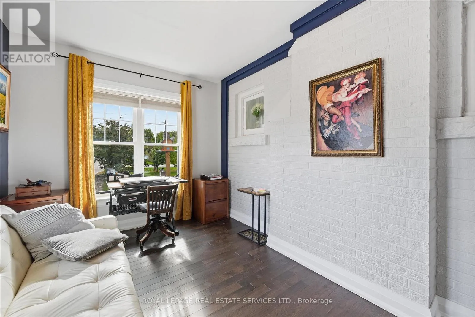 Cross Streets: North Shore Boulevard East and King Road. ** Directions: North Shore Boulevard East / King Road / Greenwood Drive. Rebuilt in 2016, this Craftsman-inspired residence blends timeless character with modern sophistication on an extra-wide 75' x 140' lot (0.229 acres) surrounded by mature trees. The exterior features Hardie Board concrete siding with stone accents, while the interior showcases arched entryways, transom windows, and rich hardwood flooring that create a light-filled, seamless flow. The open concept main level is ideal for family living and entertaining. The living room with an electric fireplace and warm finishes leads to the dining area, which opens to a covered portico with pot lights, ceiling fan, and tongue-and-groove wood ceiling. The family room is bright and inviting, highlighted by a large picture window overlooking the backyard oasis. The kitchen impresses with granite countertops, gas cooktop, KitchenAid wall oven and microwave, and stainless steel appliances. A main floor office/bedroom with a painted brick accent wall provides the perfect work-from-home retreat, while the modern heritage two-piece bath adds vintage charm. Upstairs, vaulted ceilings and transom windows enhance the sense of space and light. The primary bedroom boasts a dramatic lofted ceiling, walk-in closet with built-ins, and hardwood floor. The loft-style bedroom features a ladder, exposed beam, and desk area, while the junior primary offers a metallic accent wall, chandelier, walk-in closet, and three-piece ensuite with body-jet shower and heated floor. The main bath includes a freestanding tub, quartz vanity, and heated floor. The finished lower level adds a three-piece bath and laundry room with LG washer and Kenmore Elite dryer. Outside, enjoy a fully fenced yard with stone patio, turf putting green, rose garden, and kidney-shaped pool (new liner 2024). The standalone garage, reimagined as a British-style pub, provides a one-of-a-kind entertaining space. A warm, timeless, and inviting home - where craftsmanship meets everyday comfort in one of Burlington's most coveted neighbourhoods. (id:27476)