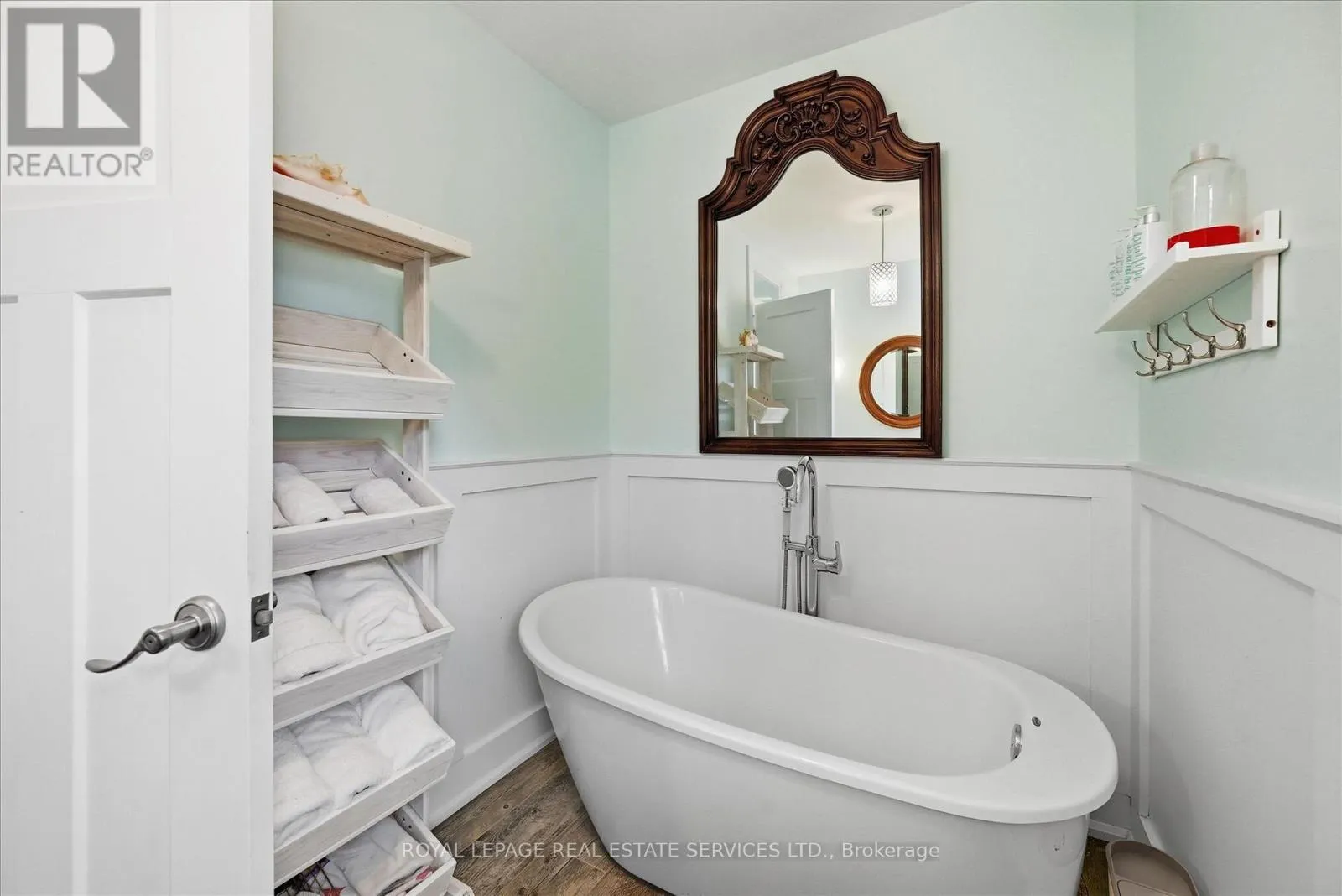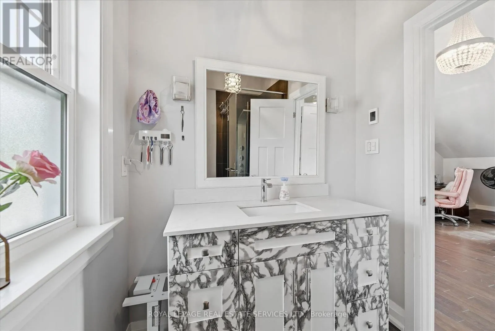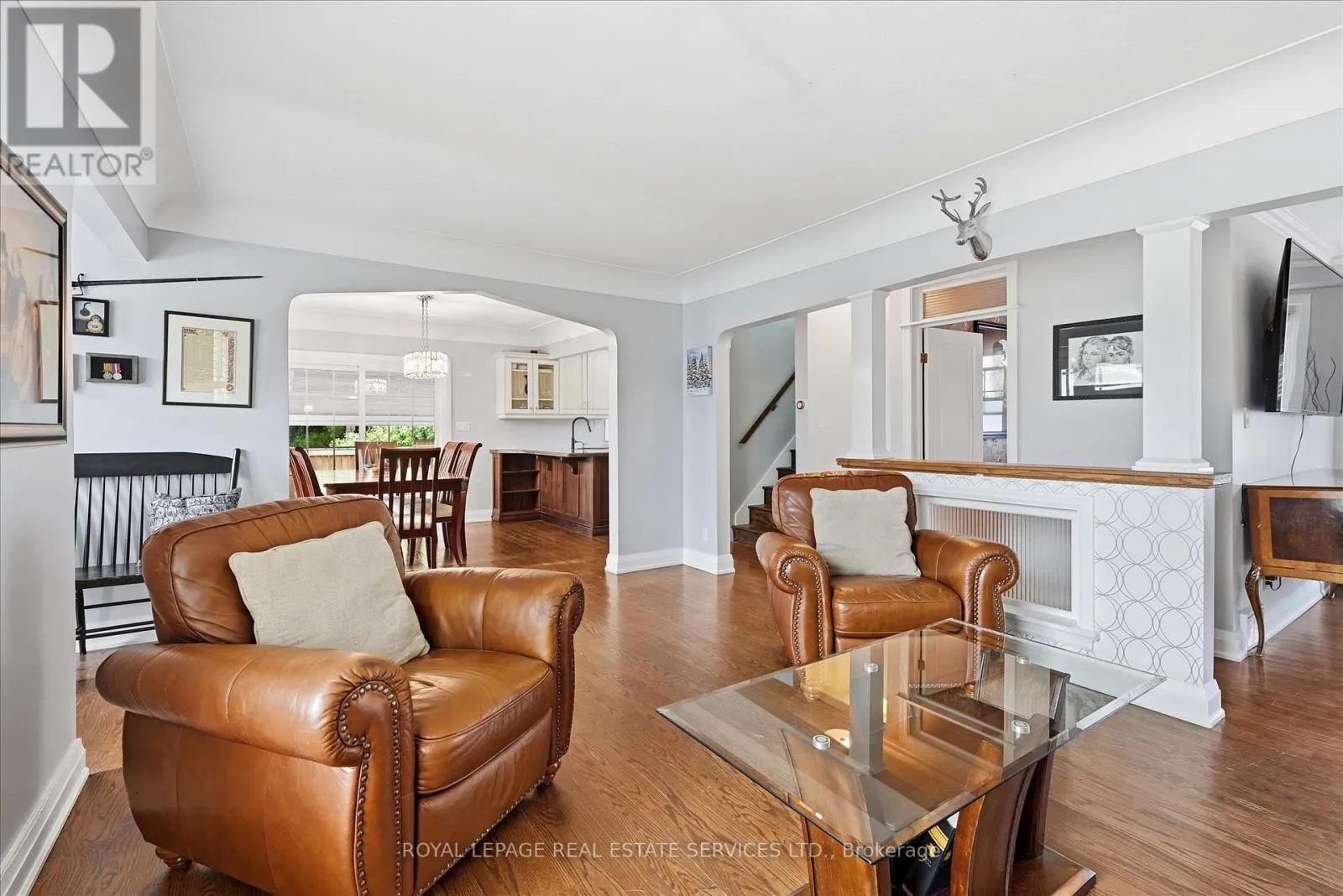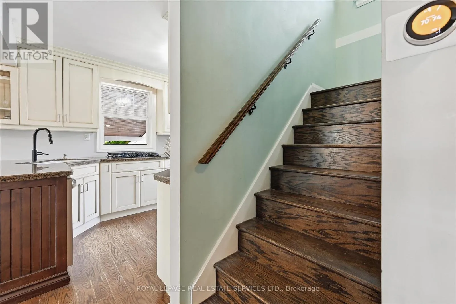 Cross Streets: North Shore Boulevard East and King Road. ** Directions: North Shore Boulevard East / King Road / Greenwood Drive. Rebuilt in 2016, this Craftsman-inspired residence blends timeless character with modern sophistication on an extra-wide 75' x 140' lot (0.229 acres) surrounded by mature trees. The exterior features Hardie Board concrete siding with stone accents, while the interior showcases arched entryways, transom windows, and rich hardwood flooring that create a light-filled, seamless flow. The open concept main level is ideal for family living and entertaining. The living room with an electric fireplace and warm finishes leads to the dining area, which opens to a covered portico with pot lights, ceiling fan, and tongue-and-groove wood ceiling. The family room is bright and inviting, highlighted by a large picture window overlooking the backyard oasis. The kitchen impresses with granite countertops, gas cooktop, KitchenAid wall oven and microwave, and stainless steel appliances. A main floor office/bedroom with a painted brick accent wall provides the perfect work-from-home retreat, while the modern heritage two-piece bath adds vintage charm. Upstairs, vaulted ceilings and transom windows enhance the sense of space and light. The primary bedroom boasts a dramatic lofted ceiling, walk-in closet with built-ins, and hardwood floor. The loft-style bedroom features a ladder, exposed beam, and desk area, while the junior primary offers a metallic accent wall, chandelier, walk-in closet, and three-piece ensuite with body-jet shower and heated floor. The main bath includes a freestanding tub, quartz vanity, and heated floor. The finished lower level adds a three-piece bath and laundry room with LG washer and Kenmore Elite dryer. Outside, enjoy a fully fenced yard with stone patio, turf putting green, rose garden, and kidney-shaped pool (new liner 2024). The standalone garage, reimagined as a British-style pub, provides a one-of-a-kind entertaining space. A warm, timeless, and inviting home - where craftsmanship meets everyday comfort in one of Burlington's most coveted neighbourhoods. (id:27476)
