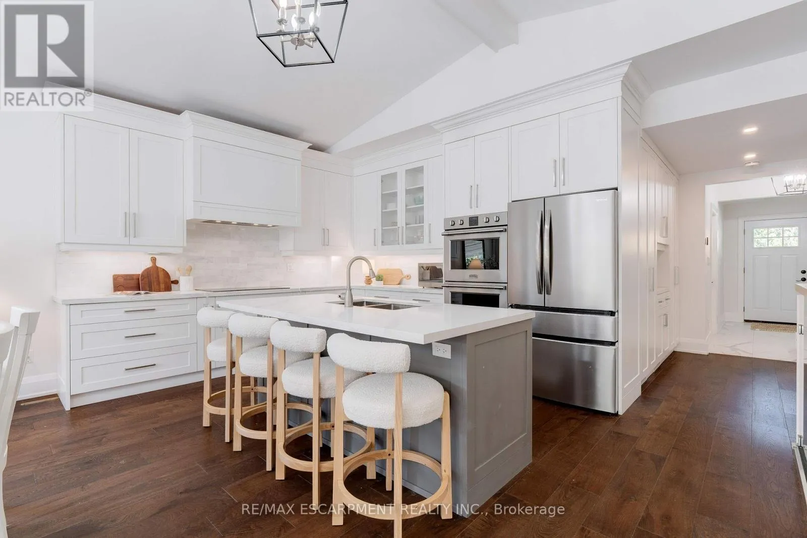 Cross Streets: Spruce Ave. ** Directions: South of New St, east of Appleby Line, off Burloak Dr via Spruce Avenue. The most unique opportunity on the market. Over 2,900 sqft of thoughtfully designed multi-generational living. What began as a traditional home has been completely transformed into something truly rare: two full, side-by-side living spaces, each with its own kitchen, living room, bedrooms, and finished basement. The main living areas on both sides are fully above grade, featuring large windows and beautiful finishes throughout. Rear addition adding 30 ft deep and 40 ft wide, along with the excavation and finishing of both lower levels, created a layout that feels like two separate homes under one roof a truly intentional design for multi-generational living. Side One offers 4 bedrooms, 2+1 bathrooms, dramatic vaulted ceilings, and expansive principal rooms. Side Two features a bright and open 1+2 bedroom suite with its own kitchen, 4-piece bathroom on main & 3 pce in lower level, spacious living area, and private side entrance. Step outside and enjoy the large backyard with mature trees, an in-ground heated pool, and professional stonework landscaping, the perfect space for kids to play, grandparents to relax, and family gatherings to unfold year-round. Whether you're caring for aging parents, welcoming in-laws to lend a hand with little ones, or looking for the perfect shared setup with siblings or adult children, this home was built for togetherness, without compromise. Located on a quiet crescent in a mature, family-friendly neighbourhood, this property blends flexibility, function, and connection in a way few homes ever could (id:27476)