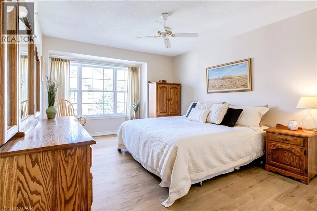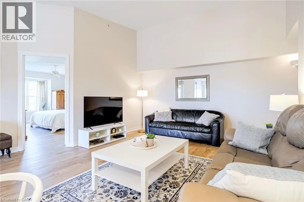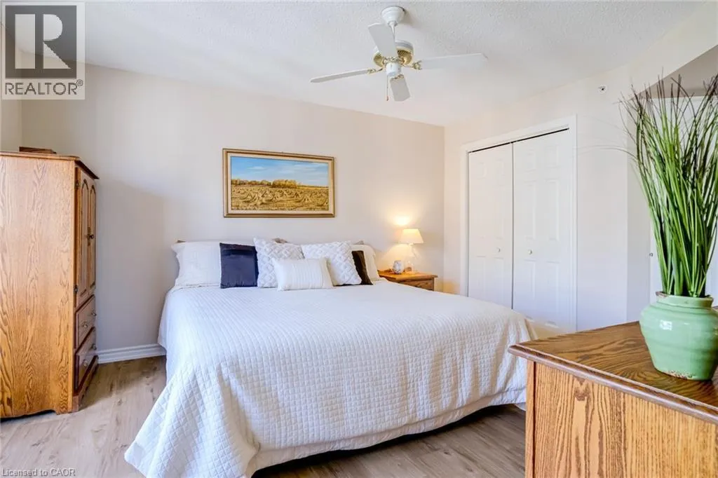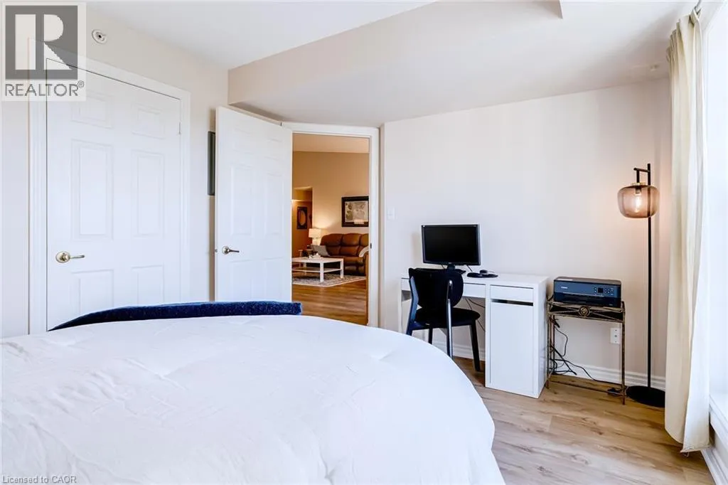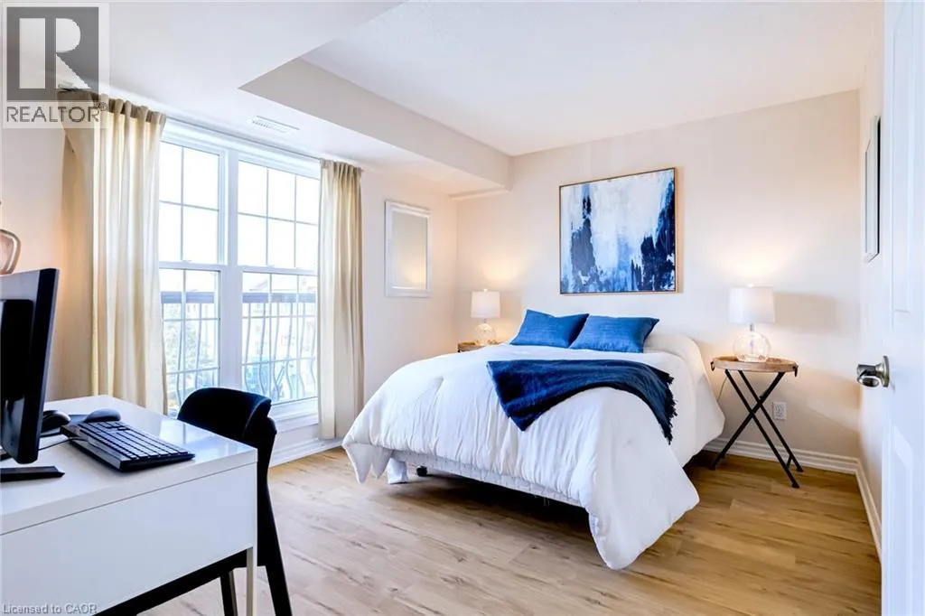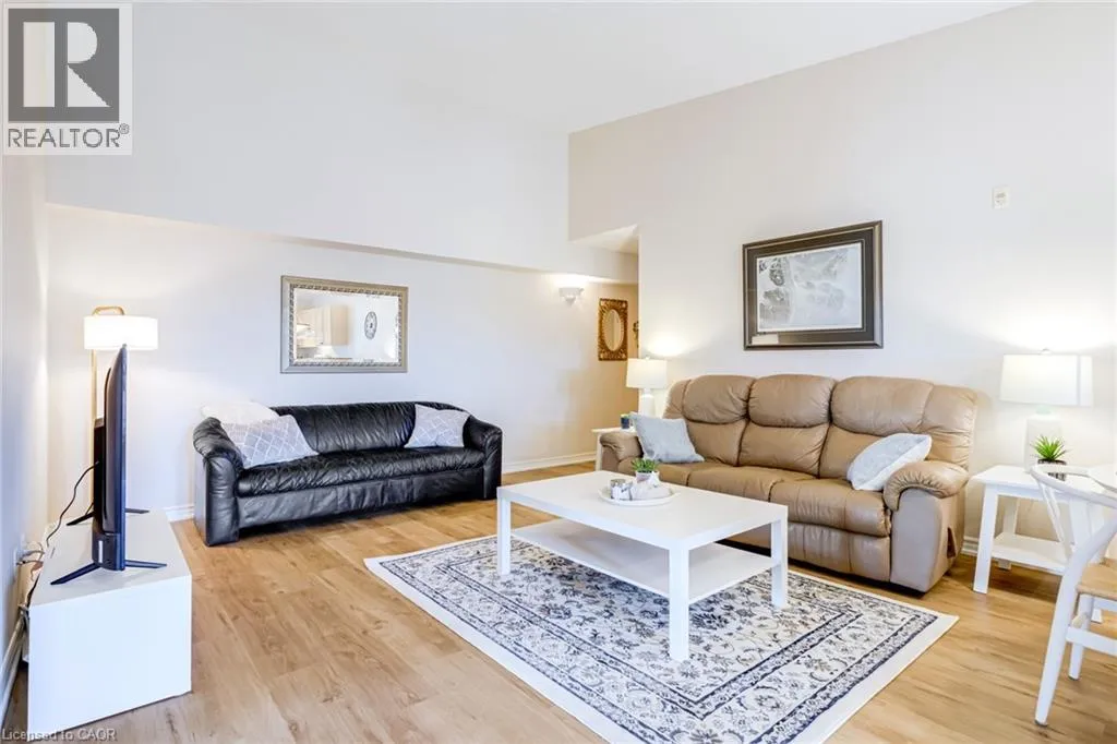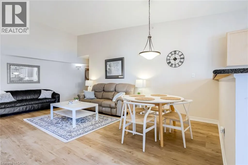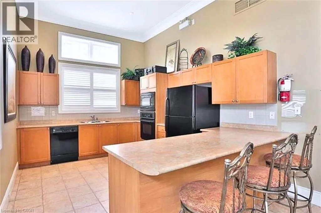 Appleby Line to Heron Way Welcome to penthouse living in this bright, southeast corner unit condo. Offering nearly 1,100 sqft of stylish, sunlit space in a quiet pocket of the complex. This carpet-free 2-bedroom, 2-bath suite features soaring vaulted ceilings, and windows all around with it being a corner unit that fill the home with natural light. Recently updated with sleek new flooring, the open-concept layout includes a full dining area, spacious living room, and a contemporary kitchen with ample counter space, breakfast bar, and direct access to a private balconyâperfect for morning coffee or evening sunsets. The generous primary suite offers a peaceful retreat with a large bedroom, 4-piece ensuite, and closet, while the second bedroom is well-sized with 2nd full bathroom nearbyâideal for guests or a home office setup. Additional highlights include in-suite laundry, underground parking, a storage locker, and updated plumbing (Kitec fully removed). Residents also enjoy access to on-site amenities like a fitness centre, sauna, and stylish party room. All this, just steps from groceries, cafés, restaurants, parks, trails, and transit. With easy access to Appleby GO, the QEW, and Hwy 407, this turnkey penthouse is a rare find in one of Burlingtonâs most walkable neighbourhoods. (id:27476)