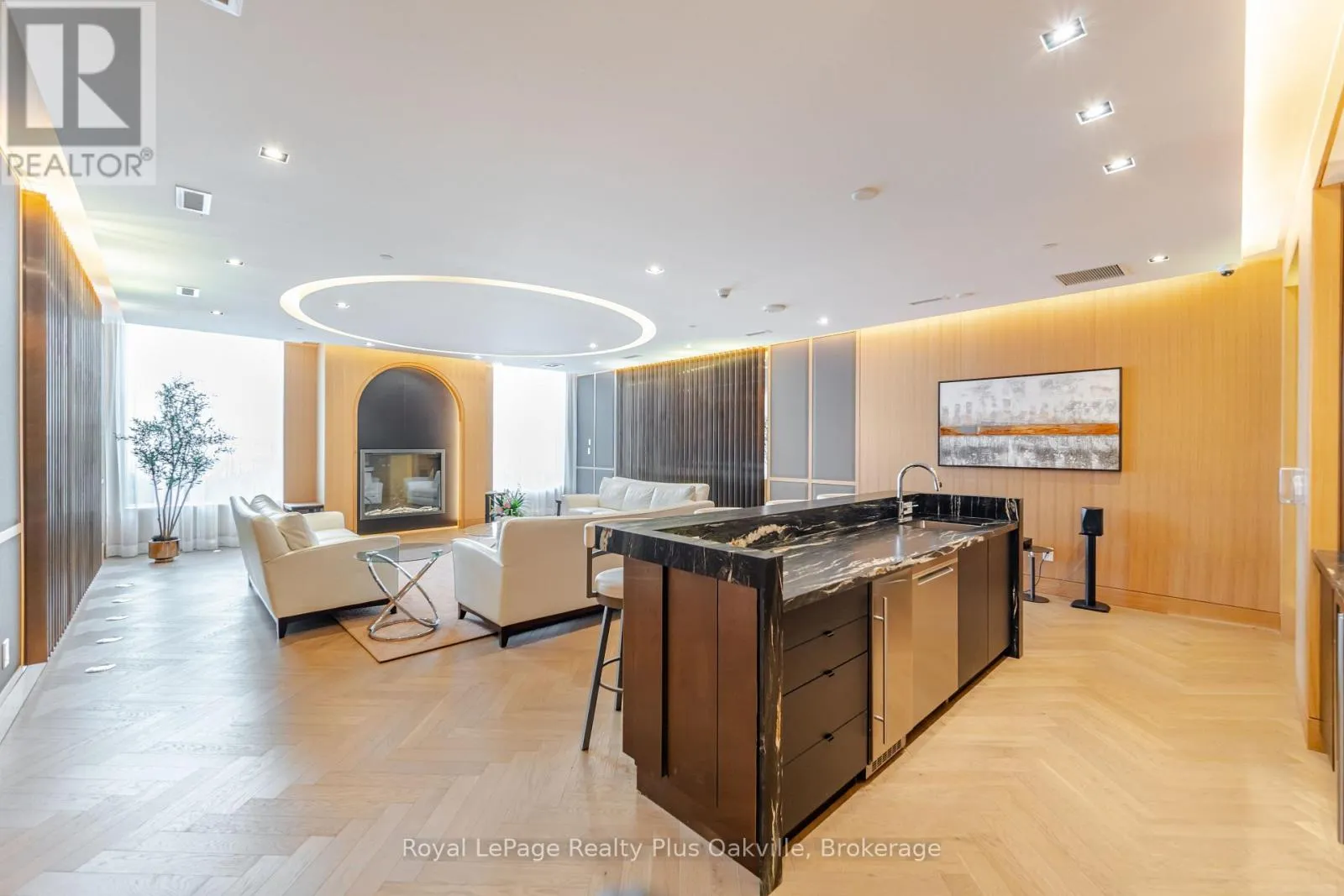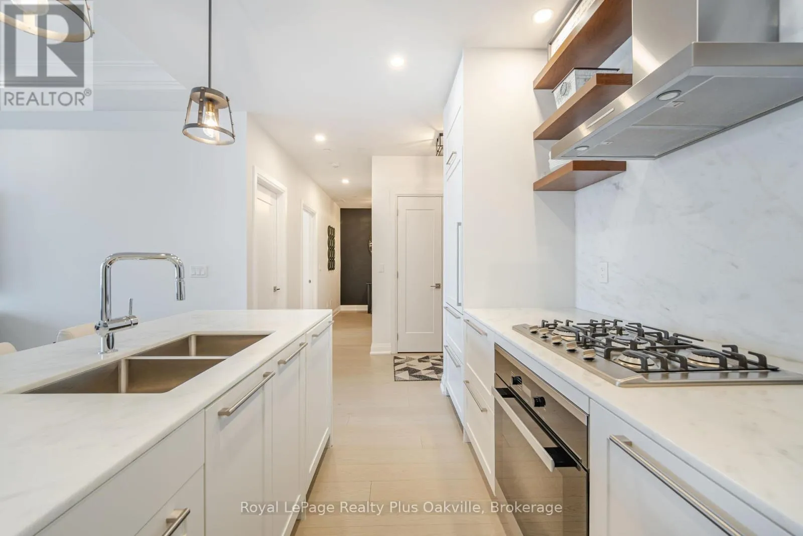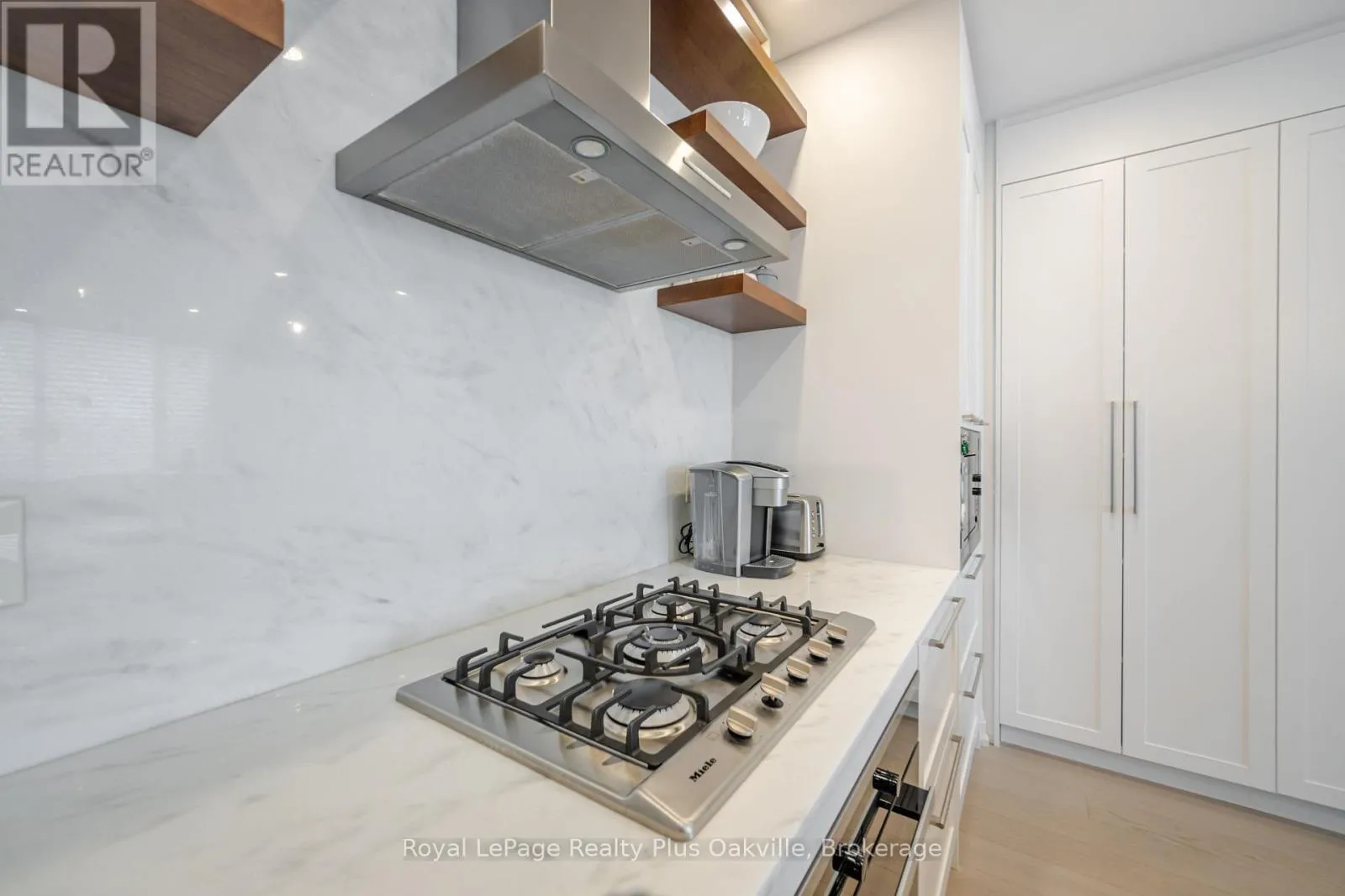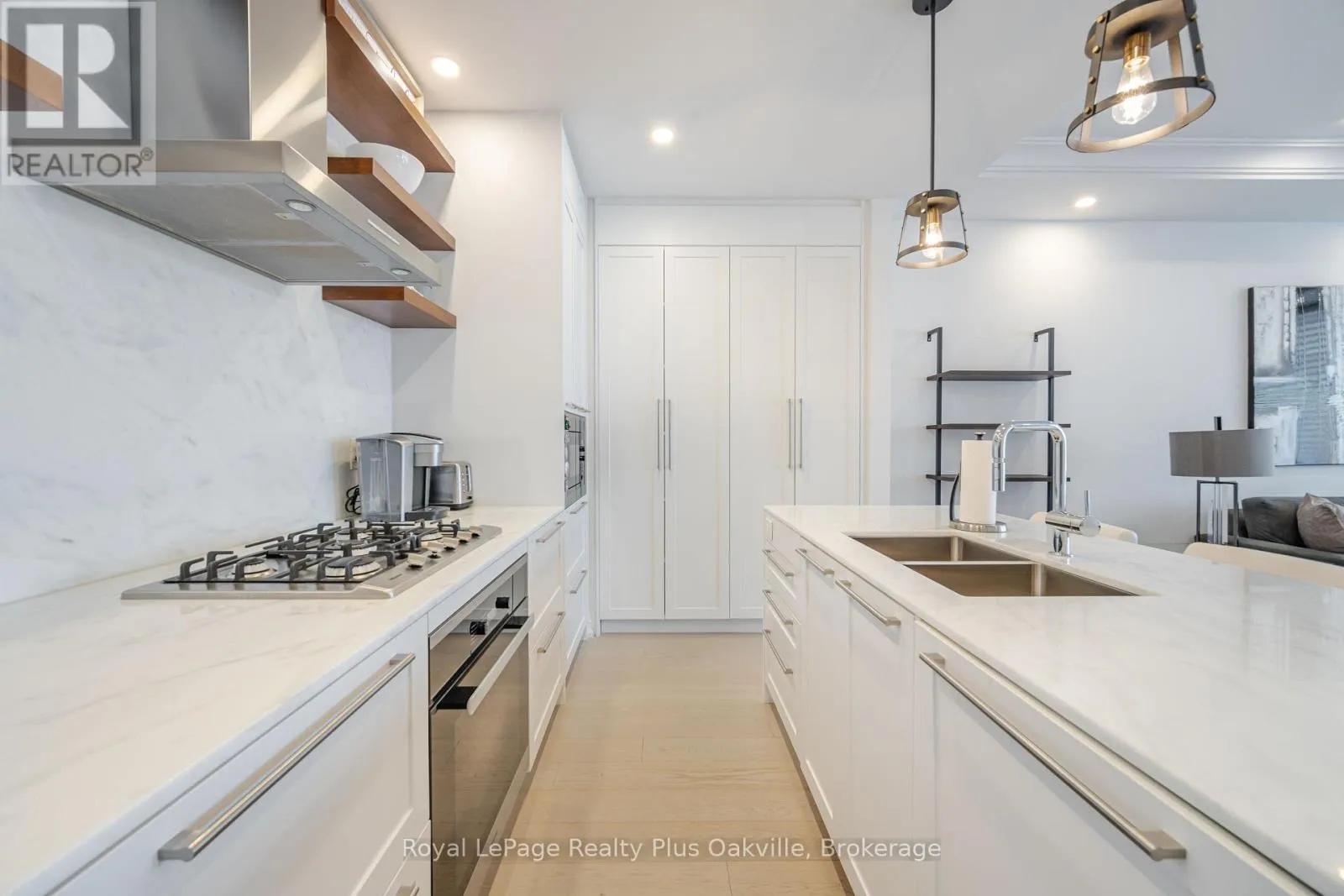 Cross Streets: Locust/Elgin. ** Directions: From Lakeshore, North on Locust to Elgin. RARE LEASING OPPORTUNITY! Spectacular and highly sought after beautiful unit in one of Burlington's most exclusive residences, The SAXONY! Located one block from the shores of Lake Ontario, only minutes from Spencer's Smith Park and across the street from The Performing Arts Centre. Walking distance to downtown Burlington's shopping, restaurants, salons, banking and much more. This stunning unit has over 900 square feet of luxurious upgraded living space with 10 ft ceilings, wide plank hardwood, crown moulding and pot lights throughout. There is 1 bedroom, a den/home office space, 1.5 baths, and in-suite full size laundry. The master bedroom includes an incredible spa-like 4-piece ensuite and a walk-in closet. The kitchen equipped with top end Miele appliances and marble stone waterfall island. The 110 sq ft balcony has both electrical and natural gas hookup. Comes with one underground parking spot, one locker (Included) and luxury amenities including a concierge, gym, media room, party room and roof top patio with lake views! This boutique building is highly sought after and consists of only 61 units! (id:27476)