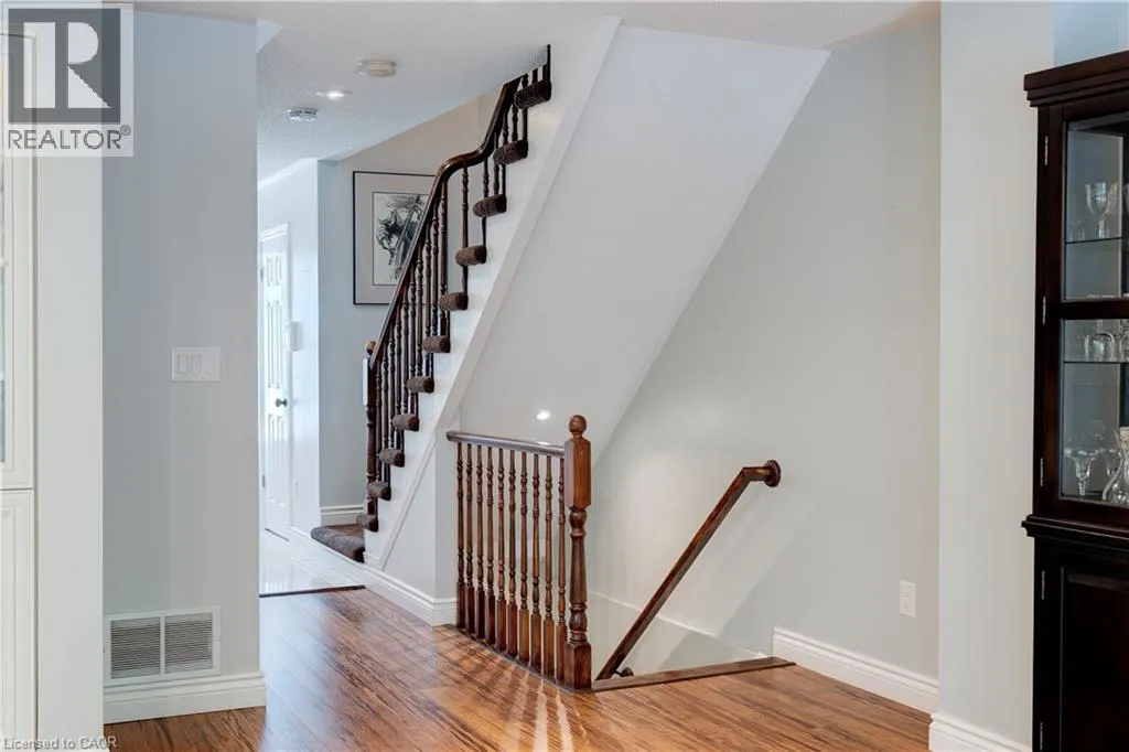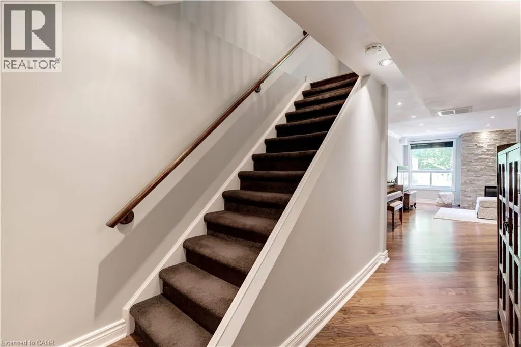 QEW to North on Walkers Welcome to this stunning 3-bedroom, 3-bathroom townhouse located in the desirable Millcroft neighbourhood of Burlington. This home offers a spacious and modern layout perfect for families or those who love to entertain. The bright kitchen features a walk-out to a charming balcony, ideal for enjoying your morning coffee or casual dining. The fully finished basement boasts a cozy gas fireplace and a walk-out to a private patio backing onto a serene ravine, providing a peaceful retreat surrounded by nature. Nestled in a prime location, close to shopping, restaurants, parks & the hwy. you'll enjoy the perfect balance of urban convenience and tranquil living. Don't miss this incredible opportunity to call this property your home! (id:27476)