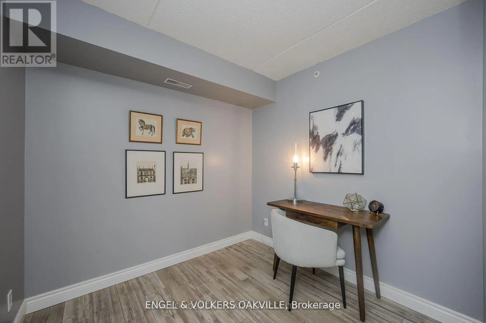 Cross Streets: Walkers Line & Upper Middle. ** Directions: Upper Middle- Walkers. Spacious 1 Bed + Den Unit in Desirable Palmer Community in Burlington . Freshly painted and updated with Laminate flooring throughout. Spacious Kitchen equipped with Stainless Steel Appliances and Breakfast Bar. Generous sized Primary Bedroom with Large window and closet. Large Bathroom with new Vanity and updated Tiles . En suite Laundry, One above ground parking Space as well as Locker included. (id:27476)