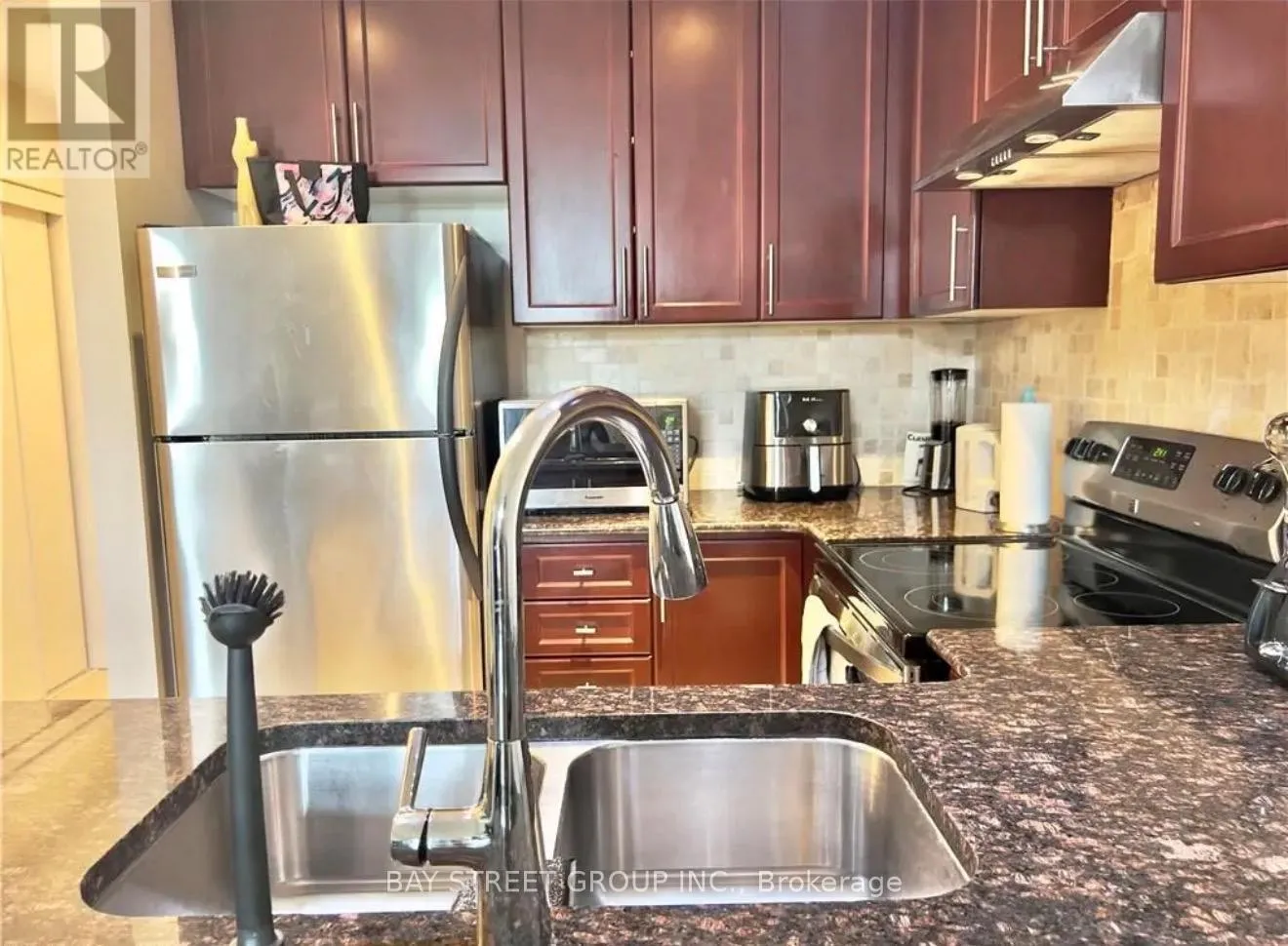 Cross Streets: Sutton & Upper Middle Road. ** Directions: UPPER MIDDLE RD/SUTTON DR. Rarely Offered! Beautiful and serene 1 Bedroom + Den condo featuring unobstructed views of lush green space. Enjoy your morning coffee on the private balcony overlooking a tranquil wooded pond. Perfectly situated in The Orchard community-steps to top-rated schools, scenic walking trails, parks, and minutes to major highways (QEW, 403, 407), Bronte Provincial Park, and great shopping.This suite offers premium finishes throughout, including 9'6" ceilings, granite countertops, engineered hardwood flooring, and a custom tile backsplash. An ideal blend of comfort, style, and nature-don't miss this opportunity! (id:27476)